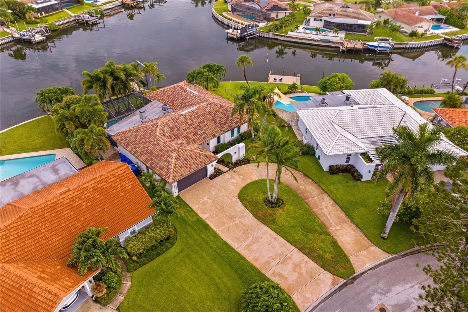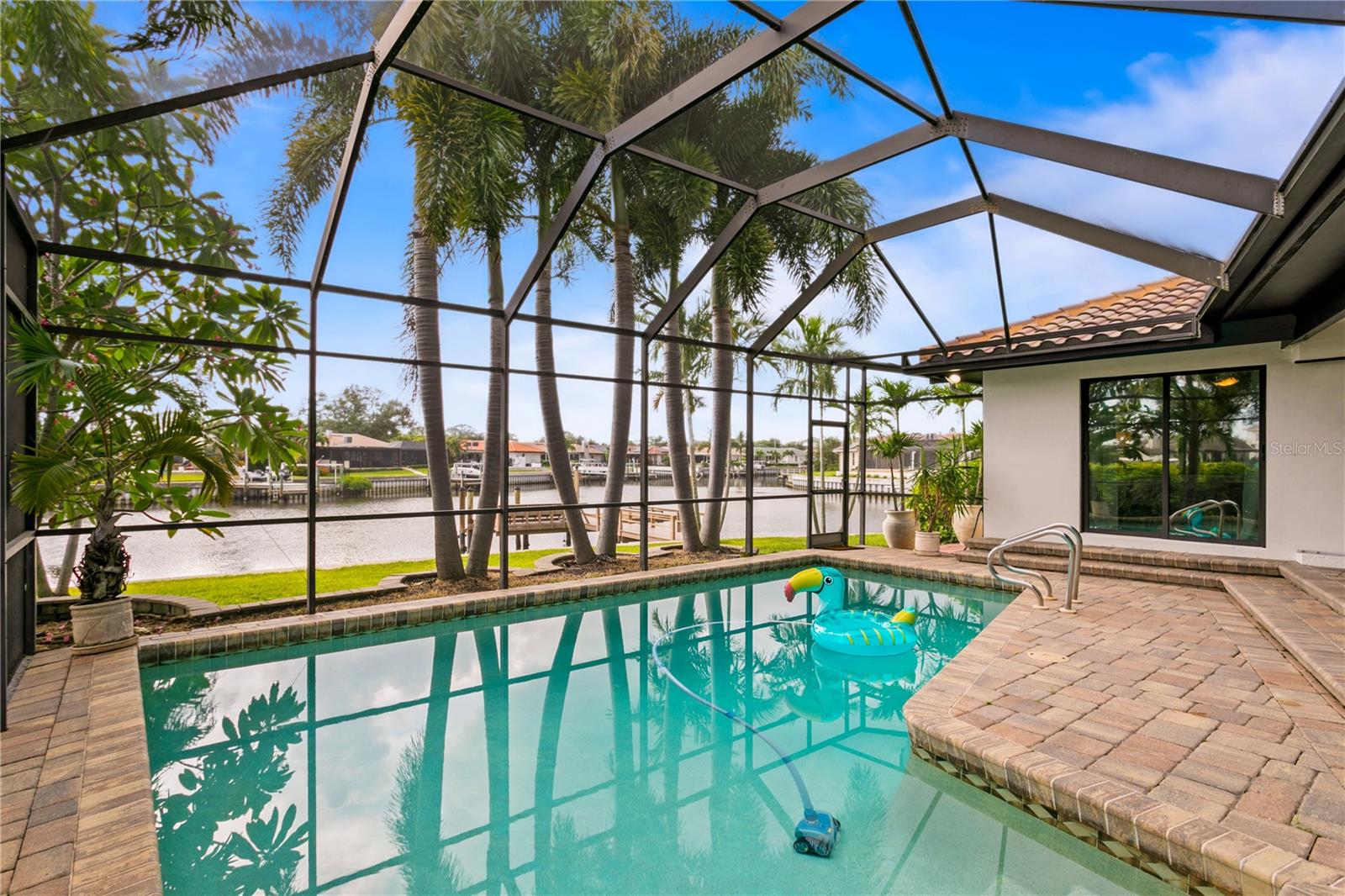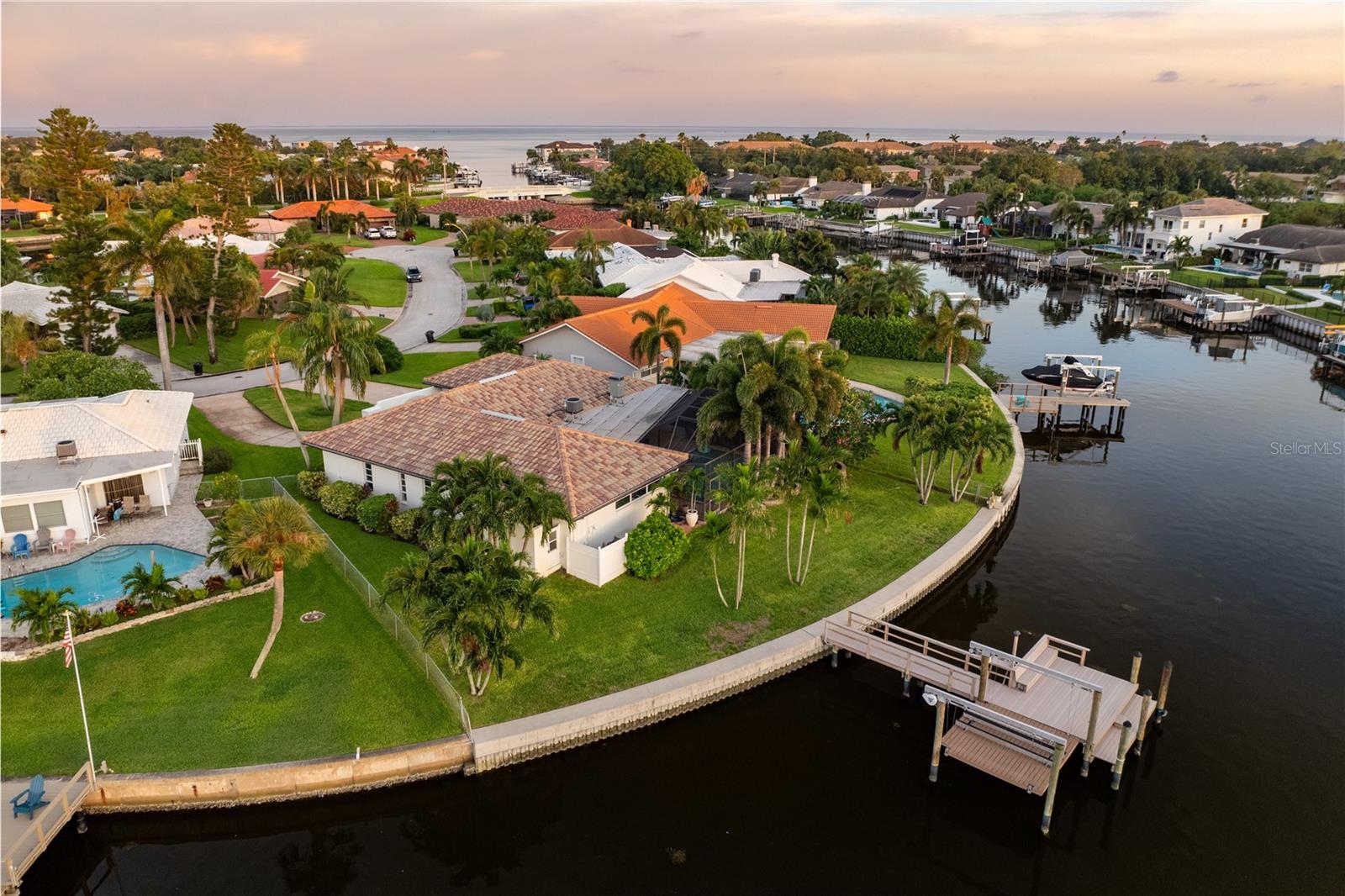 **Prime investment in a waterfront community! This property remained high and dry and undamaged from BOTH hurricanes.** Discover your dream waterfront lifestyle in Venetian Isles! This beautiful four-bedroom, three-bath home embodies luxurious coastal living in an idyllic neighborhood close to vibrant downtown St. Petersburg. With 107 feet of direct access to protected canal water leading to Tampa Bay, you're greeted with an enhanced water view and a tranquil atmosphere from the moment you arrive. With over ¼ of an acre, it is one of the larger lots in the neighborhood with a more expansive water view. Inside, the home features a serene primary suite boasting waterfront views and a beautifully renovated bath, with an additional in-law suite that provides ultimate comfort and privacy. Two other guest bedrooms and another full bath round out the space. The chef's kitchen is designed to delight culinary enthusiasts, featuring a large center island with a Bosch induction stovetop, Bosch double ovens, breakfast and coffee bar, and a bar fridge for effortless entertaining. The spacious dining room, which opens to the pool area through sliders, and the cozy family room with similar access ensure seamless indoor-outdoor living. Brazilian cherry wood floors throughout the home add a touch of warmth and sophistication. The outdoor space is a true oasis, with a screened-in lanai and a sparkling pool offering a picturesque setting for relaxation and hosting gatherings. Imagine watching dolphins and manatees frolic right in your backyard or enjoying fishing off the dock. A newer 10,000-pound boat lift along with a large composite dock, with water and electricity, provides durability and convenience for boating enthusiasts, while the large, fenced-in yard offers ample space for outdoor activities and privacy. Enjoy the convenience and peace of mind that comes with living on protected canal waters, with direct access to Tampa Bay and a short boat ride to the exciting downtown St. Petersburg area. There, you can enjoy the best of city living, from fine dining and entertainment to cultural events. With top-tier appliances and modern amenities, this home is not only elegant but also efficient and ready for all your social gatherings, from intimate dinners to lively poolside parties. Whether you're an avid boater, love to entertain, or simply seek a tranquil retreat, this Venetian Isles home promises an unparalleled lifestyle. Schedule your private tour today to experience waterfront living at its finest. Contact us to make this extraordinary property your new home and embrace a life of luxury, comfort, and endless water adventures right at your doorstep!