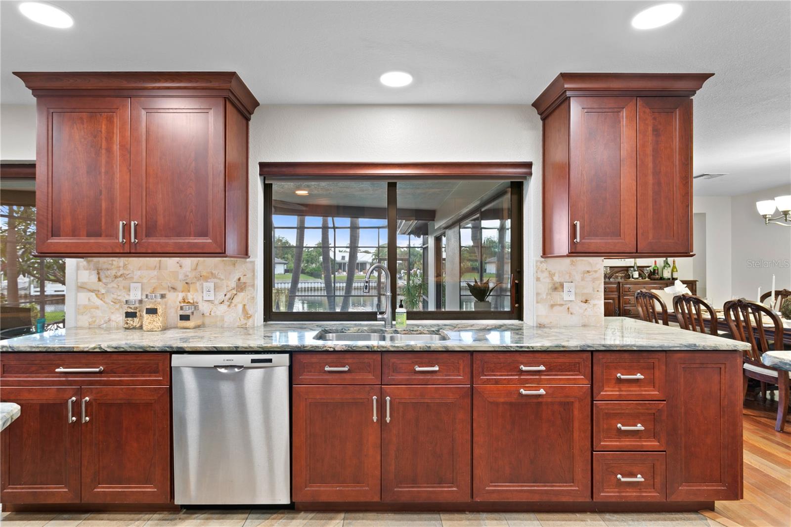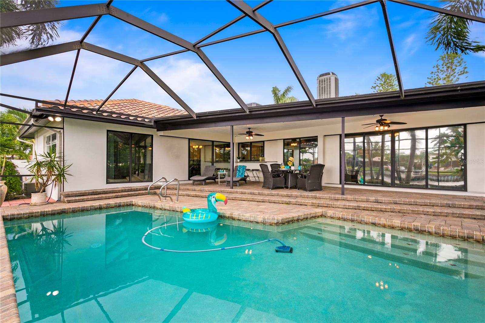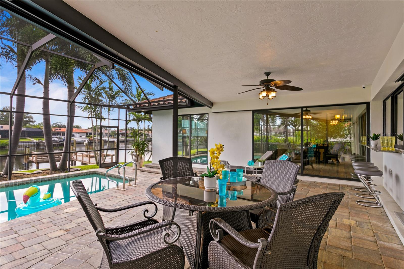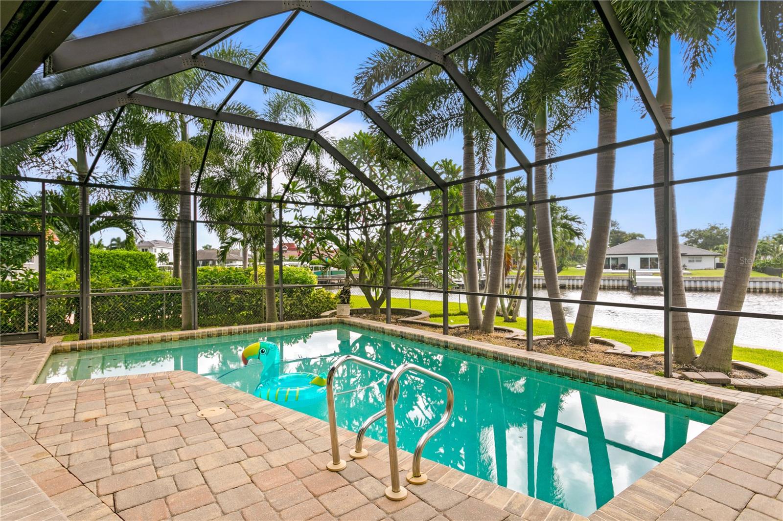 **Prime investment in a waterfront community! This property remained high and dry and undamaged from BOTH hurricanes.** Discover your dream waterfront lifestyle in Venetian Isles! This beautiful four-bedroom, three-bath home embodies luxurious coastal living in an idyllic neighborhood close to vibrant downtown St. Petersburg. With 107 feet of direct access to protected canal water leading to Tampa Bay, you're greeted with an enhanced water view and a tranquil atmosphere from the moment you arrive. With over ¼ of an acre, it is one of the larger lots in the neighborhood with a more expansive water view. Inside, the home features a serene primary suite boasting waterfront views and a beautifully renovated bath, with an additional in-law suite that provides ultimate comfort and privacy. Two other guest bedrooms and another full bath round out the space. The chef's kitchen is designed to delight culinary enthusiasts, featuring a large center island with a Bosch induction stovetop, Bosch double ovens, breakfast and coffee bar, and a bar fridge for effortless entertaining. The spacious dining room, which opens to the pool area through sliders, and the cozy family room with similar access ensure seamless indoor-outdoor living. Brazilian cherry wood floors throughout the home add a touch of warmth and sophistication. The outdoor space is a true oasis, with a screened-in lanai and a sparkling pool offering a picturesque setting for relaxation and hosting gatherings. Imagine watching dolphins and manatees frolic right in your backyard or enjoying fishing off the dock. A newer 10,000-pound boat lift along with a large composite dock, with water and electricity, provides durability and convenience for boating enthusiasts, while the large, fenced-in yard offers ample space for outdoor activities and privacy. Enjoy the convenience and peace of mind that comes with living on protected canal waters, with direct access to Tampa Bay and a short boat ride to the exciting downtown St. Petersburg area. There, you can enjoy the best of city living, from fine dining and entertainment to cultural events. With top-tier appliances and modern amenities, this home is not only elegant but also efficient and ready for all your social gatherings, from intimate dinners to lively poolside parties. Whether you're an avid boater, love to entertain, or simply seek a tranquil retreat, this Venetian Isles home promises an unparalleled lifestyle. Schedule your private tour today to experience waterfront living at its finest. Contact us to make this extraordinary property your new home and embrace a life of luxury, comfort, and endless water adventures right at your doorstep!