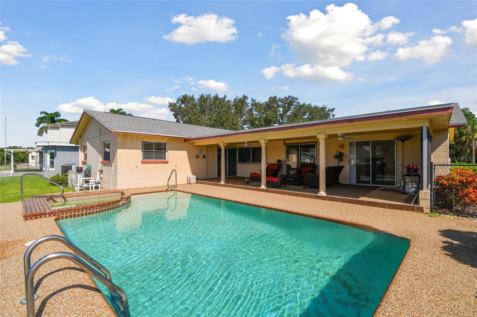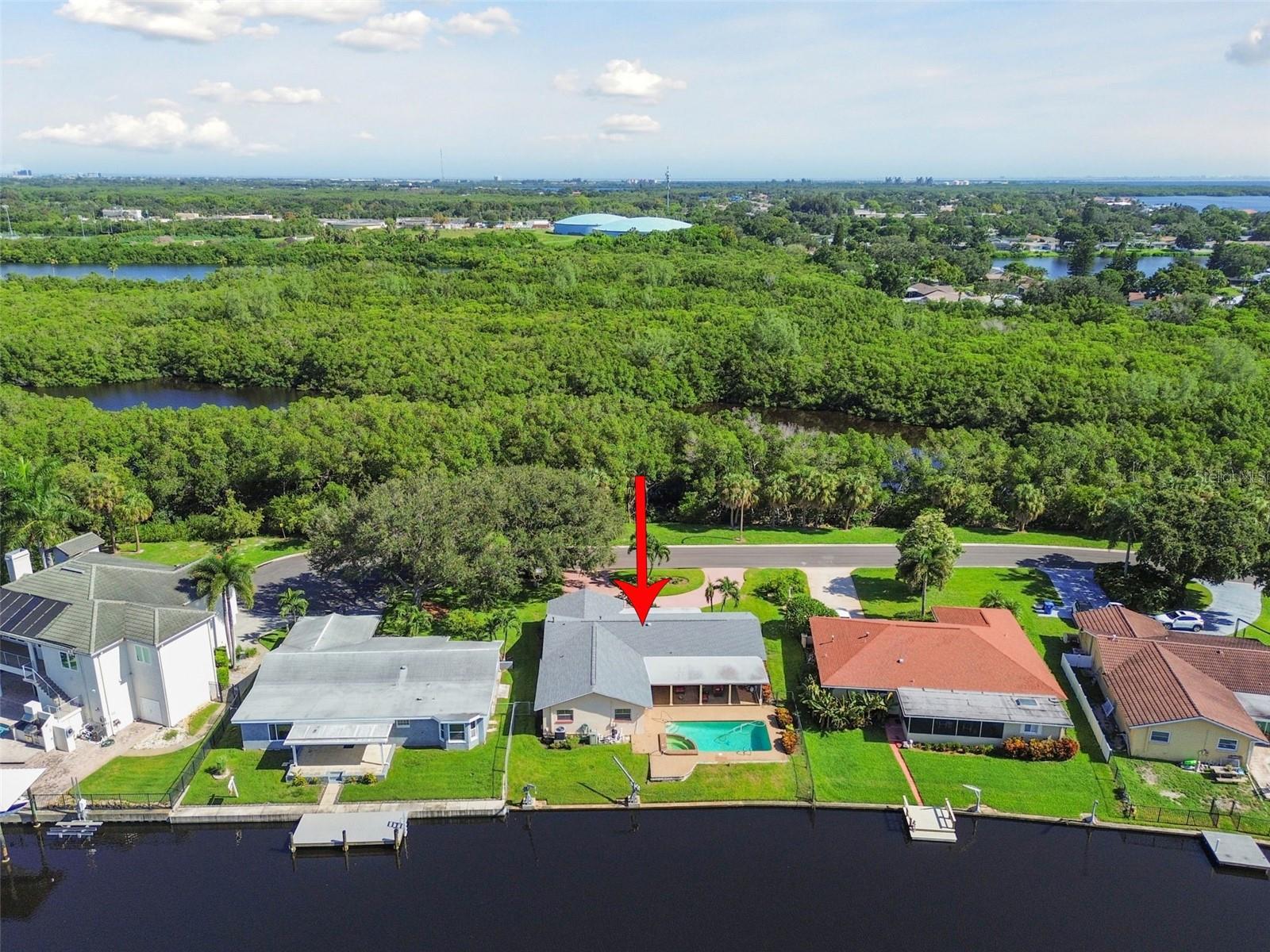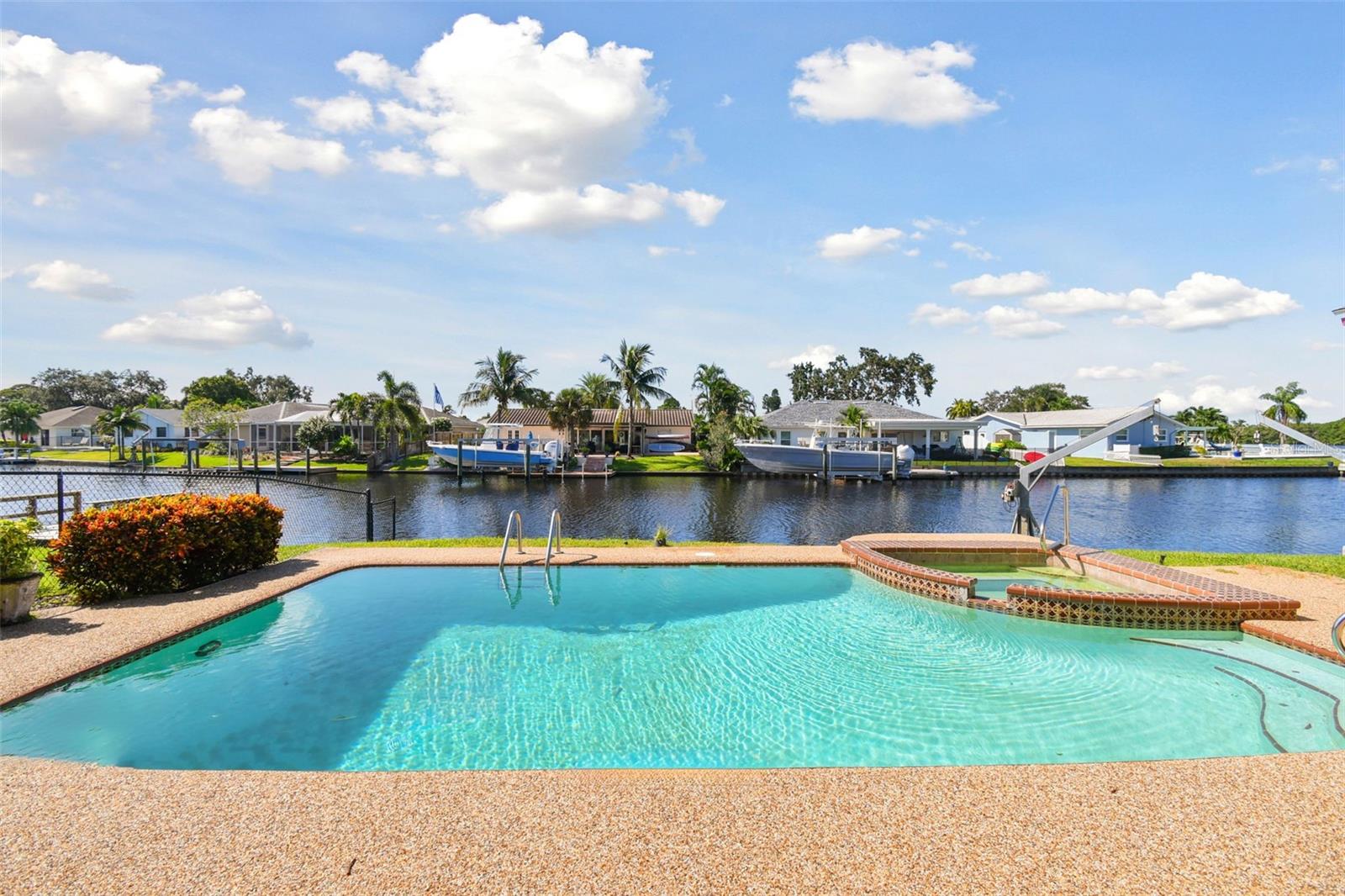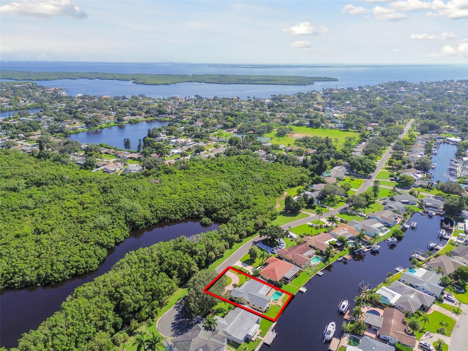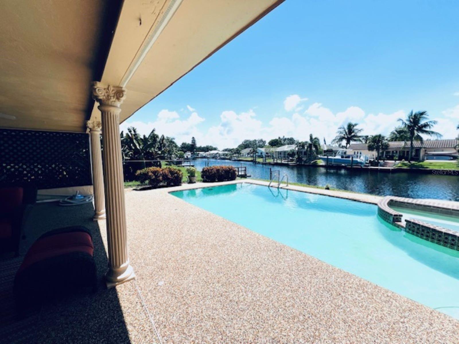 This is Florida living at its best! Ideal for boating and water enthusiasts! Owner says the home has NEVER flooded! Highly desired neighborhood in beautiful Ponderosa Shores. Located next to cul-de-sac with no neighbors across the street. Create your own Florida paradise in this spacious 4 bedroom 2 bath split plan pool home with gorgeous water views and sunsets. Nicely landscaped with paver circular drive. The primary suite opens to the lanai and pool area and includes a walk-in closet and dual vanities. Three additional bedrooms and bathroom are located on the opposite side of the home offering privacy and convenience. Updated kitchen has a breakfast bar for casual dining and a pass through window to the lanai and pool area. The family room and dining room also have sliding glass doors that overlook the pool area giving an open feel to the home. Huge 32 foot long lanai opens to the outdoor pool and spa area, perfect for relaxing or entertaining guests while enjoying the stunning waterfront vistas. Easy boat access to Smack Bayou or Tampa Bay for a day of boating, kayaking, fishing, or jet skiing! You might even see a dolphin or manatee in your waterfront backyard. This home is just minutes to downtown St. Petersburg, local dining, shopping, entertainment options, two airports, museums, and the beautiful gulf beaches! Walk, bike, or drive to Denver Park, Mangrove Bay Golf Course, or the new Speer YMCA!