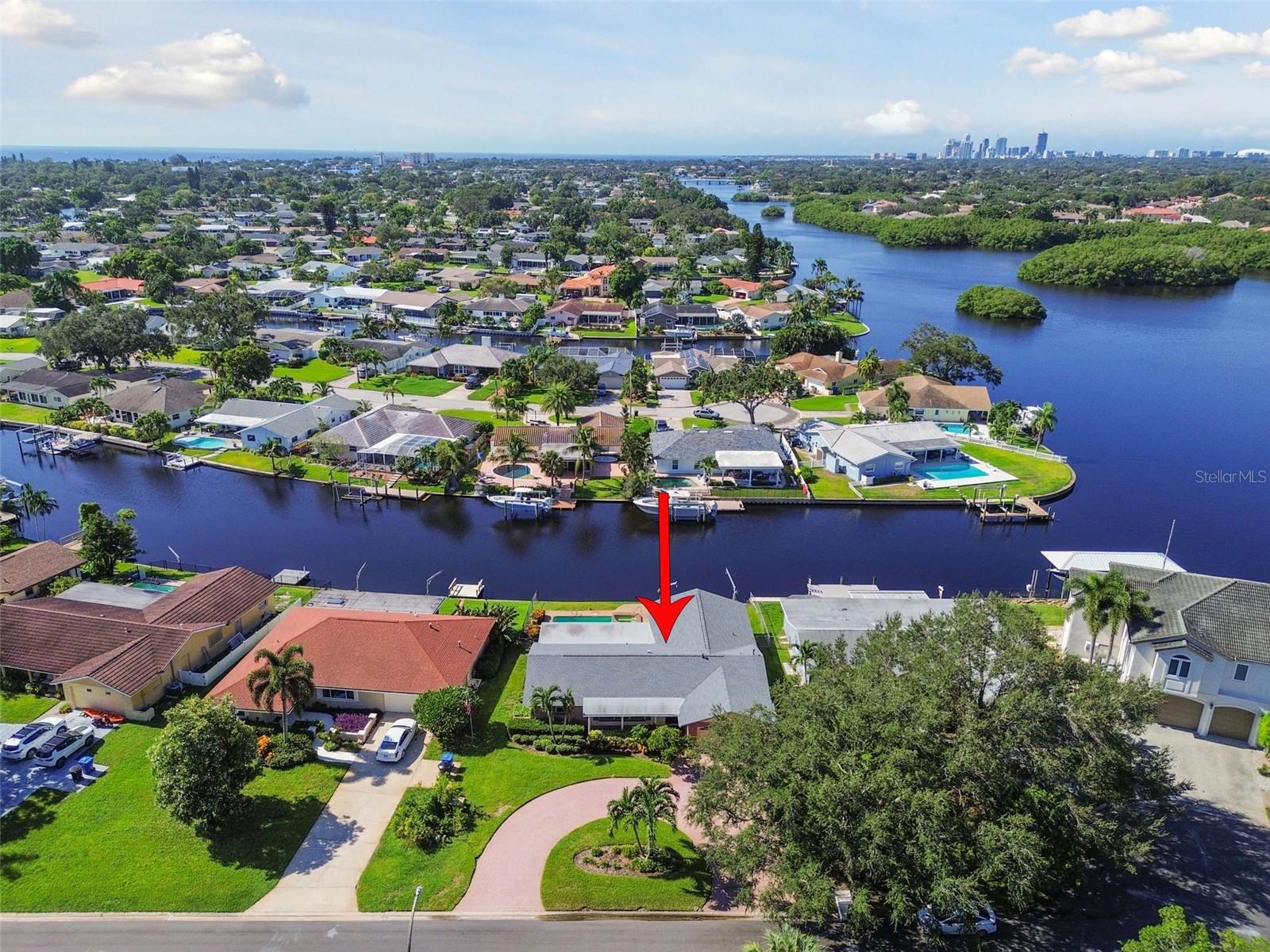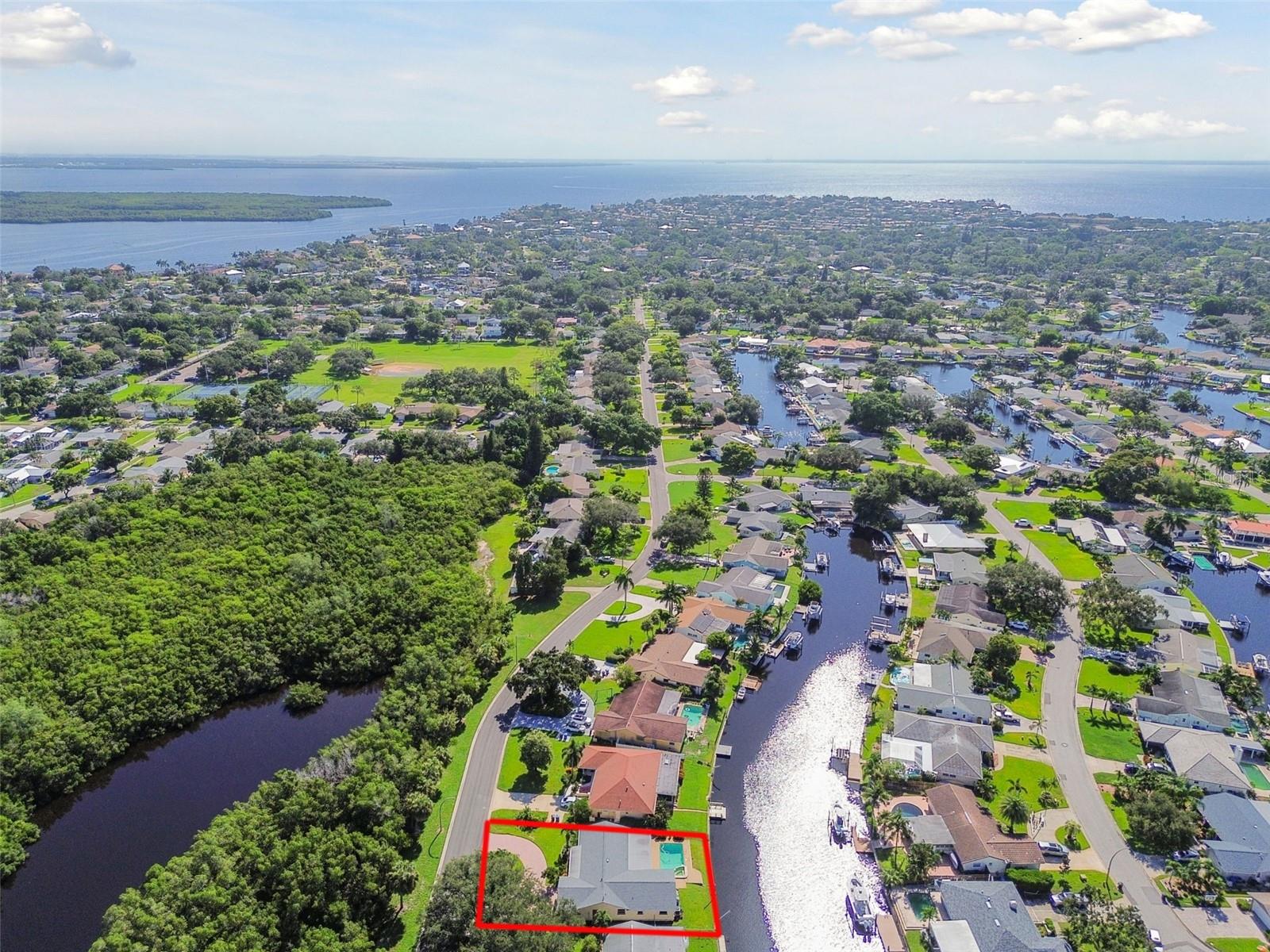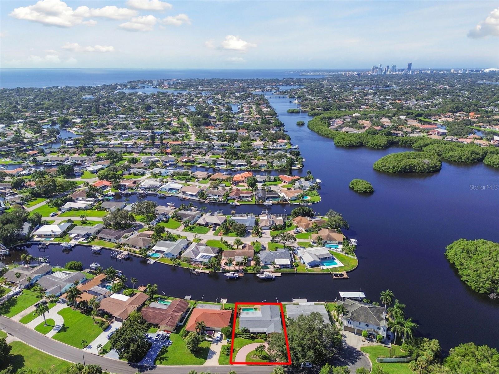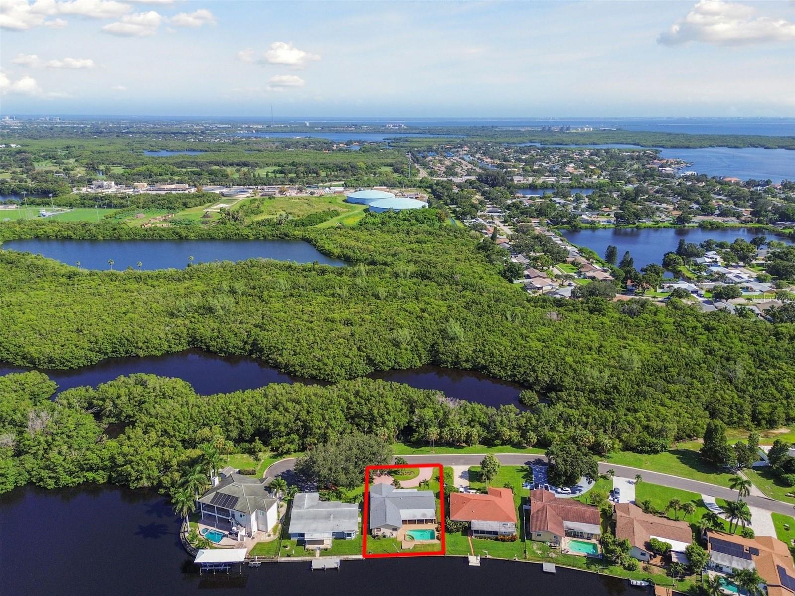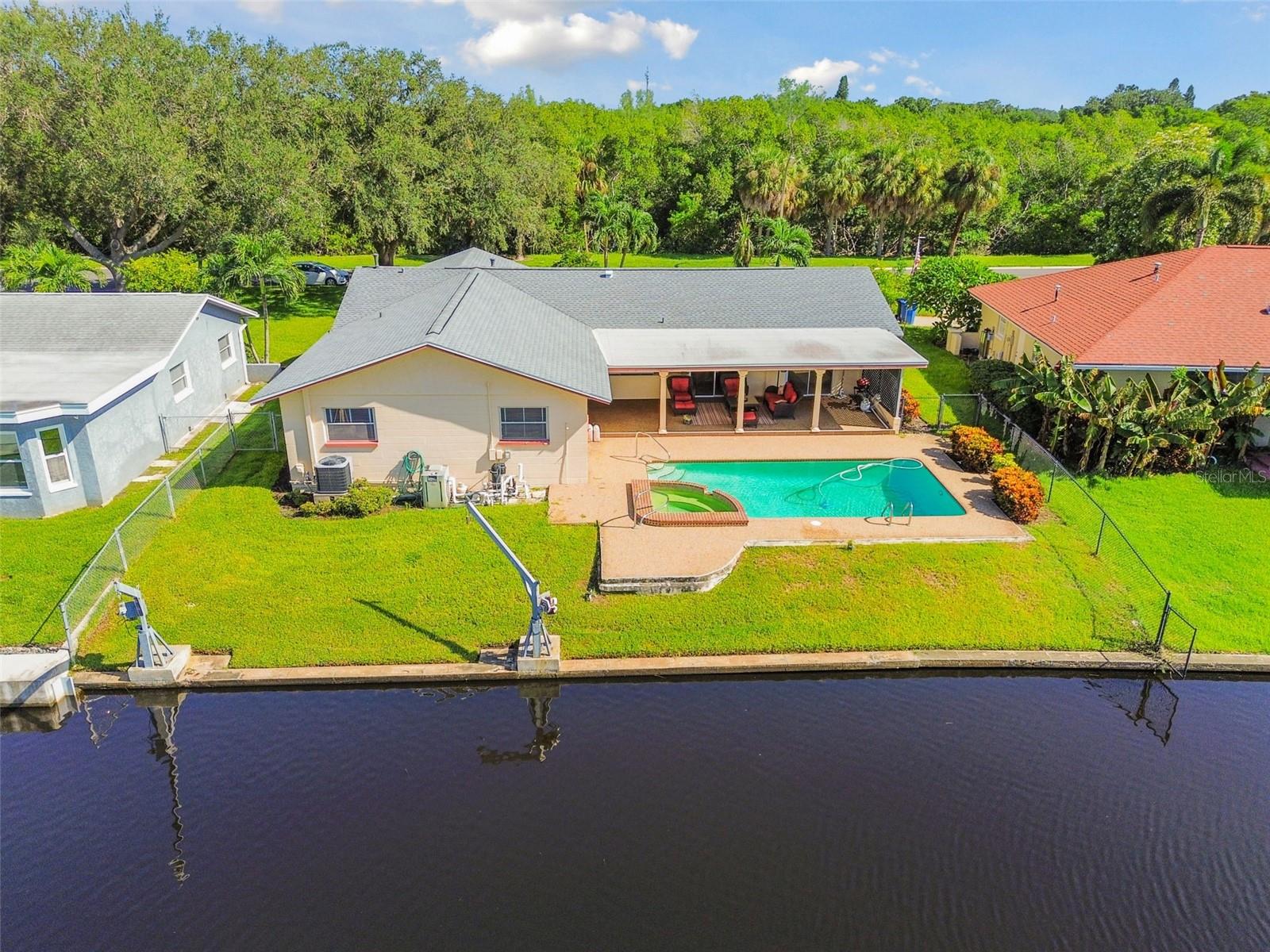 This is Florida living at its best! Ideal for boating and water enthusiasts! Owner says the home has NEVER flooded! Highly desired neighborhood in beautiful Ponderosa Shores. Located next to cul-de-sac with no neighbors across the street. Create your own Florida paradise in this spacious 4 bedroom 2 bath split plan pool home with gorgeous water views and sunsets. Nicely landscaped with paver circular drive. The primary suite opens to the lanai and pool area and includes a walk-in closet and dual vanities. Three additional bedrooms and bathroom are located on the opposite side of the home offering privacy and convenience. Updated kitchen has a breakfast bar for casual dining and a pass through window to the lanai and pool area. The family room and dining room also have sliding glass doors that overlook the pool area giving an open feel to the home. Huge 32 foot long lanai opens to the outdoor pool and spa area, perfect for relaxing or entertaining guests while enjoying the stunning waterfront vistas. Easy boat access to Smack Bayou or Tampa Bay for a day of boating, kayaking, fishing, or jet skiing! You might even see a dolphin or manatee in your waterfront backyard. This home is just minutes to downtown St. Petersburg, local dining, shopping, entertainment options, two airports, museums, and the beautiful gulf beaches! Walk, bike, or drive to Denver Park, Mangrove Bay Golf Course, or the new Speer YMCA!
