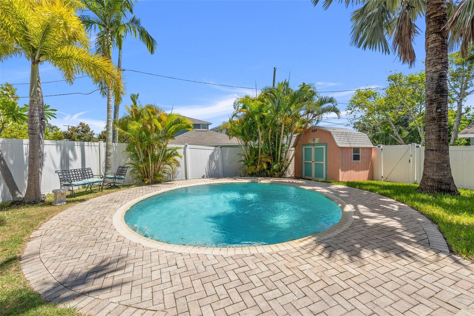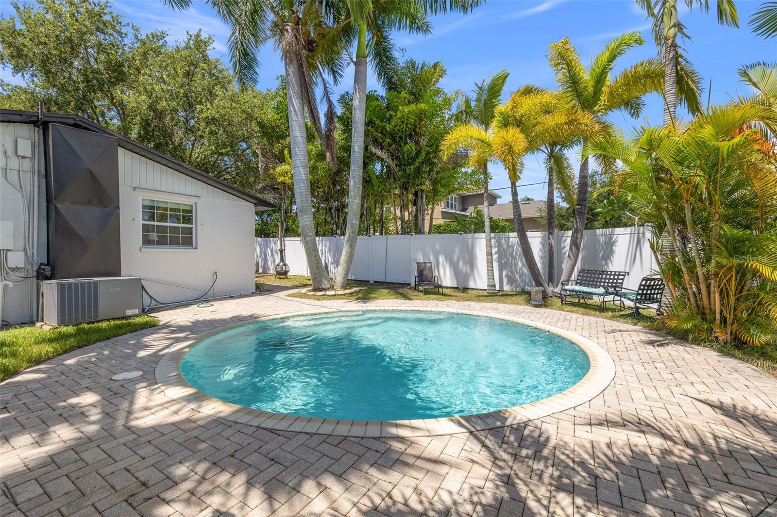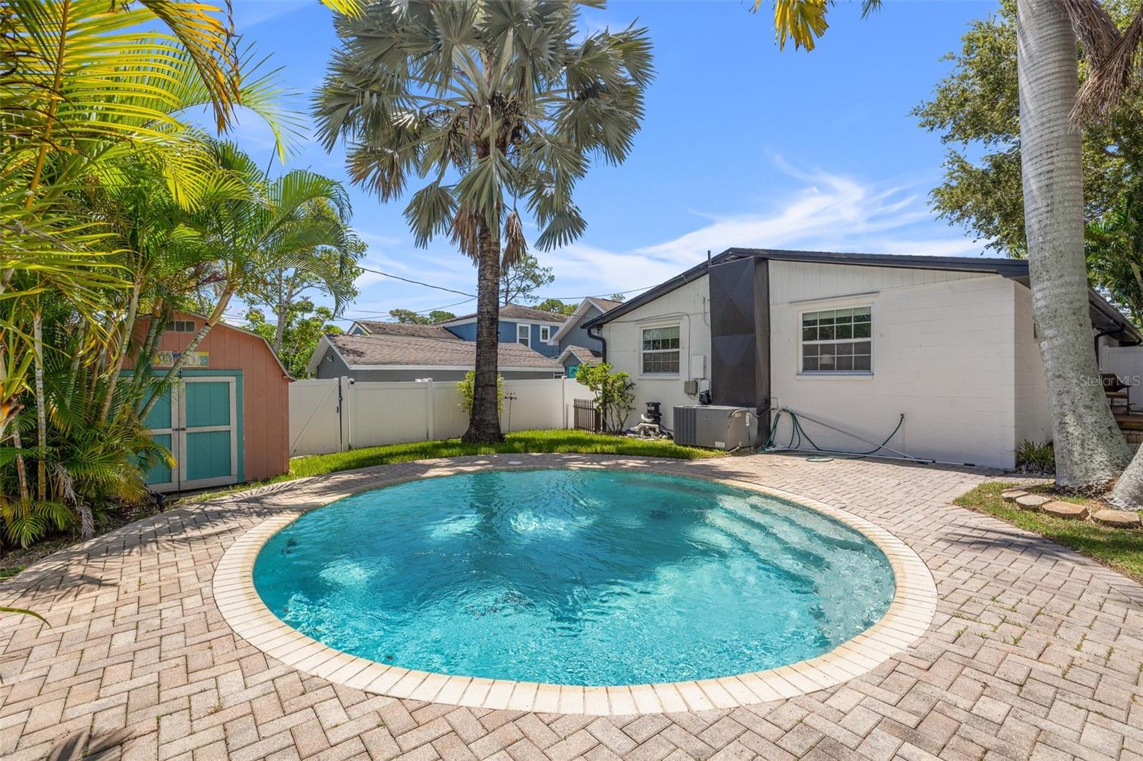 Seated on a corner lot in the very desirable & walkable Five Points neighborhood of North St Pete, this 3 bedroom 2 bathroom 1 car garage BLOCK construction pool home is the one you’ve been waiting for! Roof and HVAC (2017), Hot Water Heater (2021). Driving up to this residence, you will appreciate the mature landscaping including live Oaks and a variety of palm trees. The enclosed sun porch makes an inviting entryway to this charming home. The living room flows comfortably to the remodeled kitchen featuring bright cabinetry, stone counters and stainless appliances. There is a large dining room adjacent to the kitchen that can easily seat 8-10 and provides access to the side deck. The primary bedroom offers an en-suite bath while the north side of the home features 2 bedrooms offering a variety of living/use options. One bedroom has exterior access with a private patio that provides a great opportunity for an office or in-law area. The oversized one car garage and covered breezeway provide a great deal of storage and there is also a separate storage shed in the fully fenced in backyard. Less than 3 blocks from both 4th St N and Dr MLK Jr St, this property offers high walkability and biking scores where you can enjoy endless entertainment, shopping, dining and more. Here at 667 33rd Ave N, you are truly in the heart of it all!