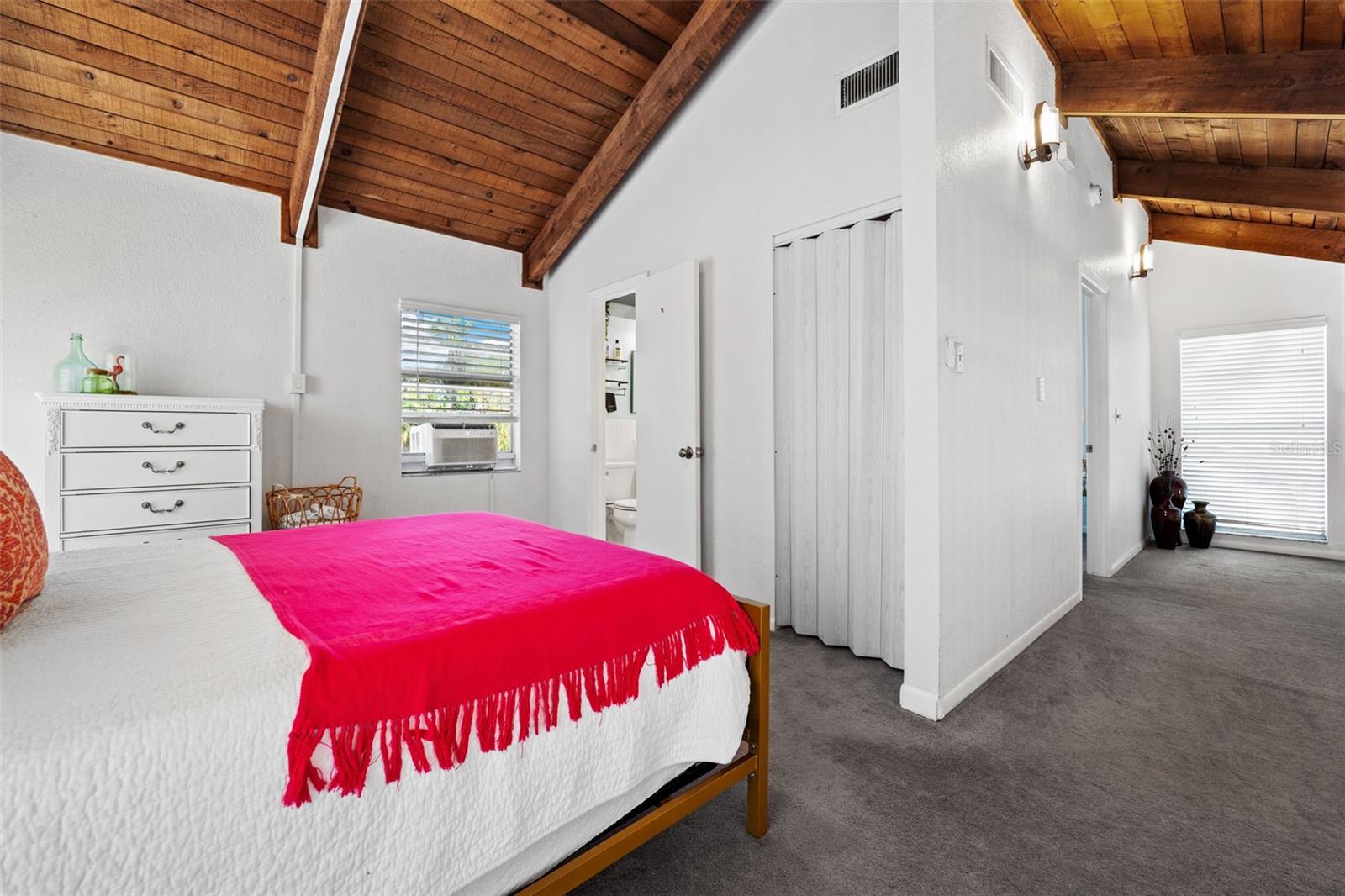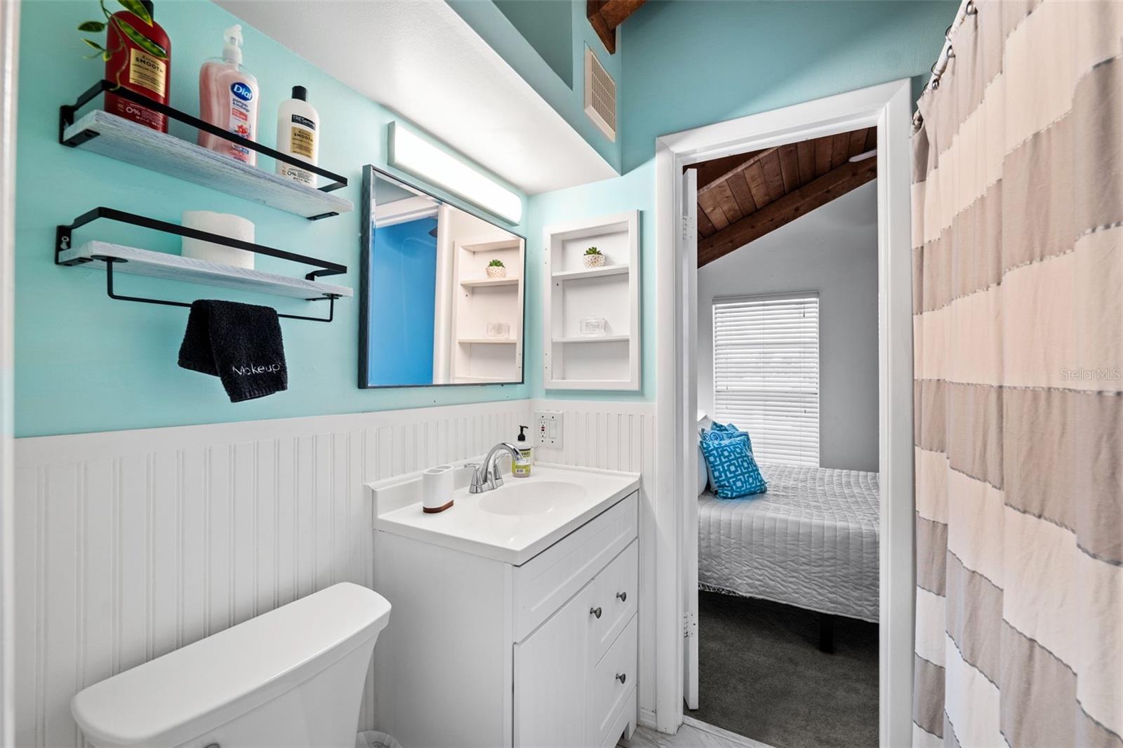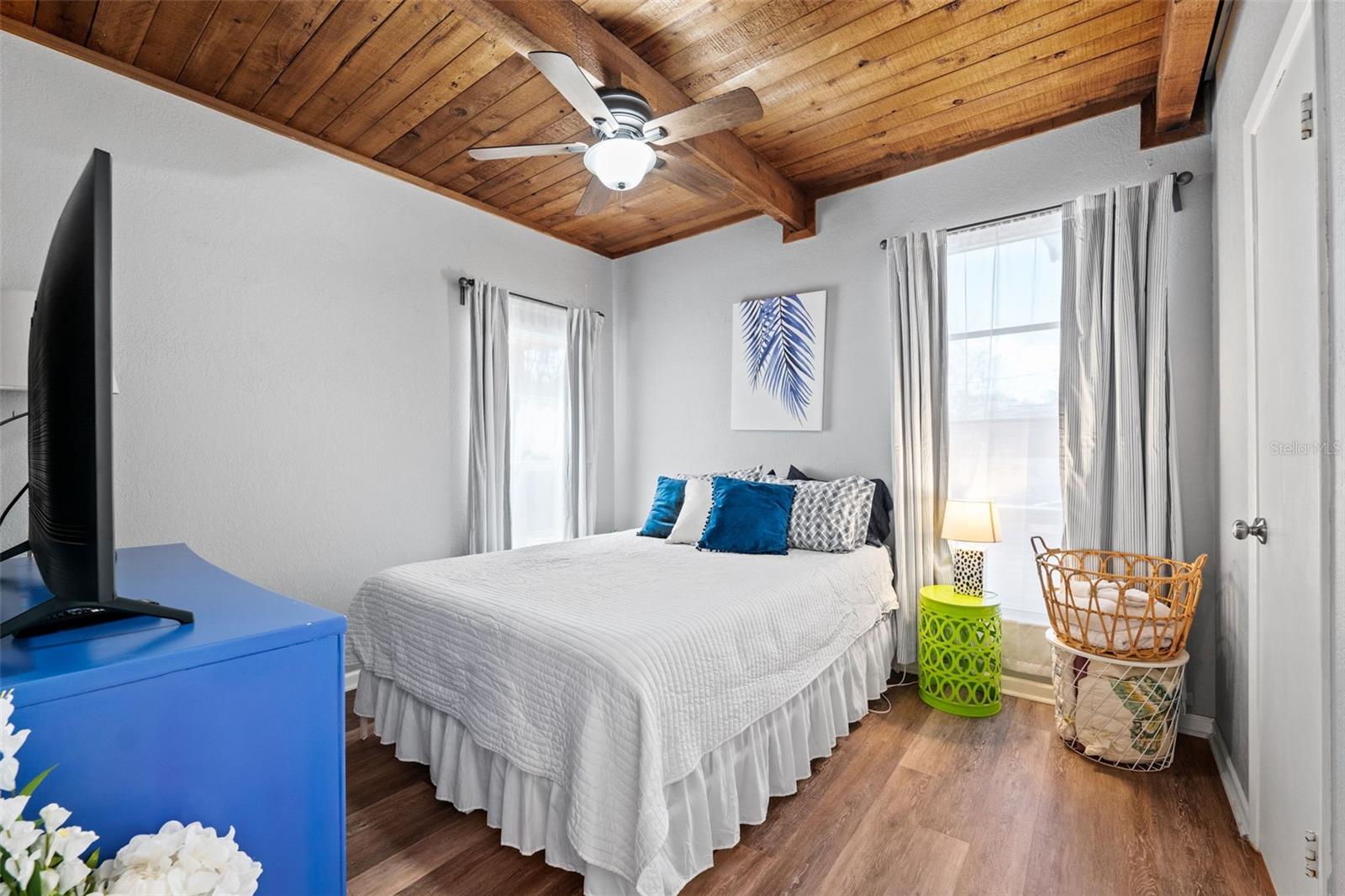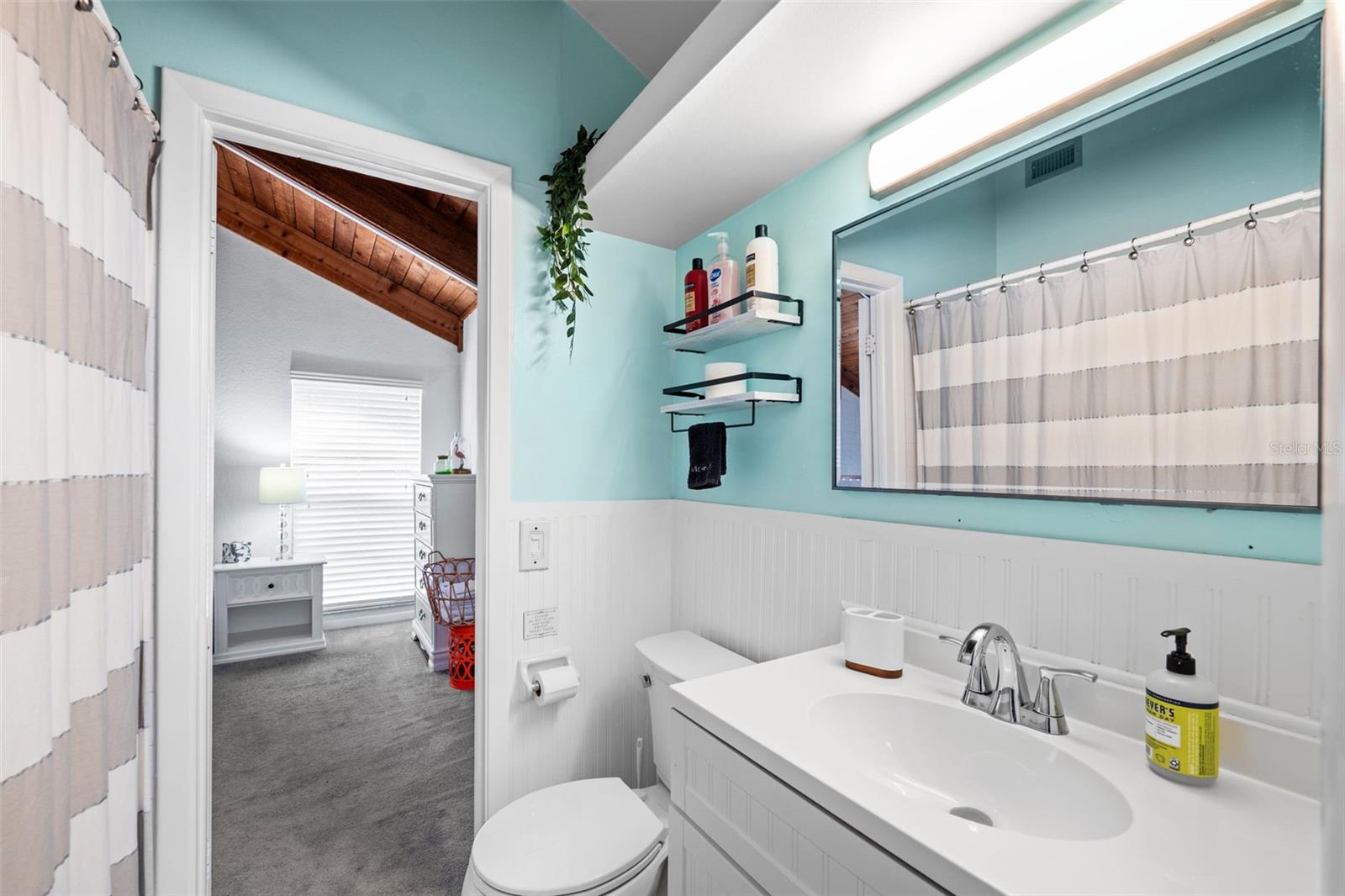 Welcome to this inviting Shore Acres home, now on the market! This beautifully maintained property offers 3 bedrooms, 2 bathrooms, and a spacious living area perfect for your lifestyle. The first floor boasts a modern kitchen with granite countertops and stainless-steel appliances, seamlessly blending style and function. The large living room is a true highlight, featuring vaulted ceilings with exposed wood beams, creating a warm and cozy atmosphere. Upstairs, you'll find a guest bedroom and a versatile loft space with a closet and window, which can easily be converted into a fully enclosed third bedroom to suit your needs. Step outside and you'll discover a backyard oasis, perfect for entertaining. Enjoy the pergola, already wired for a TV, or relax by the pool on the expansive patio, ideal for cookouts and gatherings with family and friends. There's also a spacious storage shed for your pool toys and lawn equipment. This home is located in a fantastic school zone, including Shore Acres Elementary, Meadowlawn Middle School, and Northeast High School. Despite the tall, privacy-providing palms surrounding the property, you're just minutes away from downtown and major highways, making it both a private retreat and a convenient location. Book your private tour today before this one is gone!!