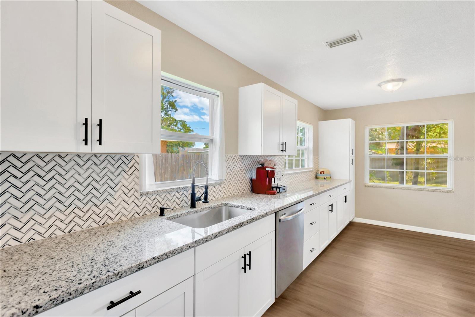 Welcome Home to this lovely Block Home, High and Dry in Desirable Meadowlawn! This beautifully renovated three bedroom home could be your next investment to live in, or rent out. Positioned in a quiet neighborhood and sitting far off the street, this home offers a large backyard, fenced as well. Inside you will find a nicely appointed living room that opens to the dining room with double French doors. The kitchen is gorgeous with tons of counterspace and storage for all your kitchen appliances, gadgets, and espresso machine. Off the kitchen, you will find a nice sized laundry room, a great opportunity to build more equity by turning this space into another full bath. The backyard is quiet and serene offering mature trees for shade, keeping you cool in the summer and those utility bills low. This home is perfectly positioned near Sawgrass Lake Park, Weedon Island, and I-275 Access to downtown St. Pete and Tampa, just minutes away. Plenty of restuarants and shopping nearby. Schedule your private tour today.