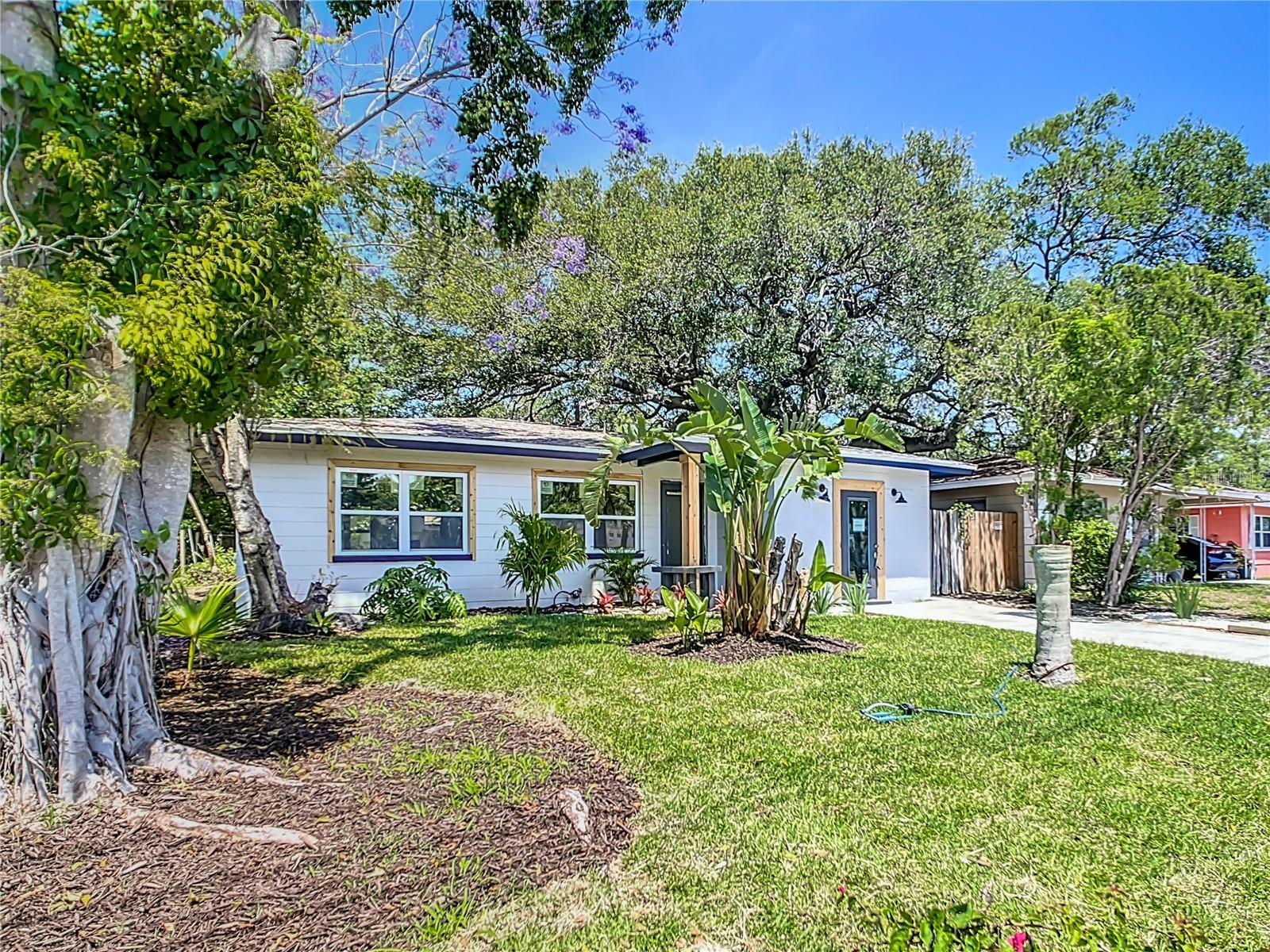 LISTED AT 40K BELOW RECENT APPRAISED VALUE!!! One or more photo(s) has been virtually staged. Welcome to your dream home in highly sought after Gulfport area! (Although technically in St Pete) This newly renovated and charming 3-bedroom, 2-bathroom home features all new upgrades! All of the big ticket items are all brand new! Updates include: New roof (2024), new A/C and ductwork(2024), new tankless water heater (2024), updated electric & plumbing, including new wiring (2024), luxury vinyl plank flooring (2024) new windows (2024), new rafters (2024), new bathrooms (2024), and a new kitchen (2024). The stunning kitchen features butcher block counter tops, an island & eat-in area, and all new appliances. The Livingroom features a lovely electric fireplace. Furthermore, the home is concrete block and NO FLOOD INSURANCE REQUIRED! Enjoy your morning coffee in the privacy of your backyard oasis with new deck, sod & wood fence. The home is also conveniently located near Gulfport's downtown district, where you can enjoy shopping, the beach, the pier, restaurants, nightlife, and more! With its close proximity to downtown Gulfport, a ten-minute drive to the Gulf Beaches, and easy access to downtown St. Petersburg hotspots, this home truly has it all!