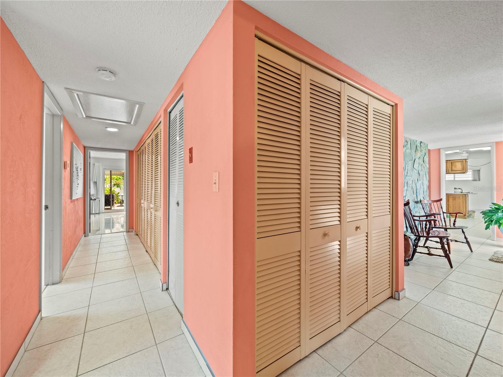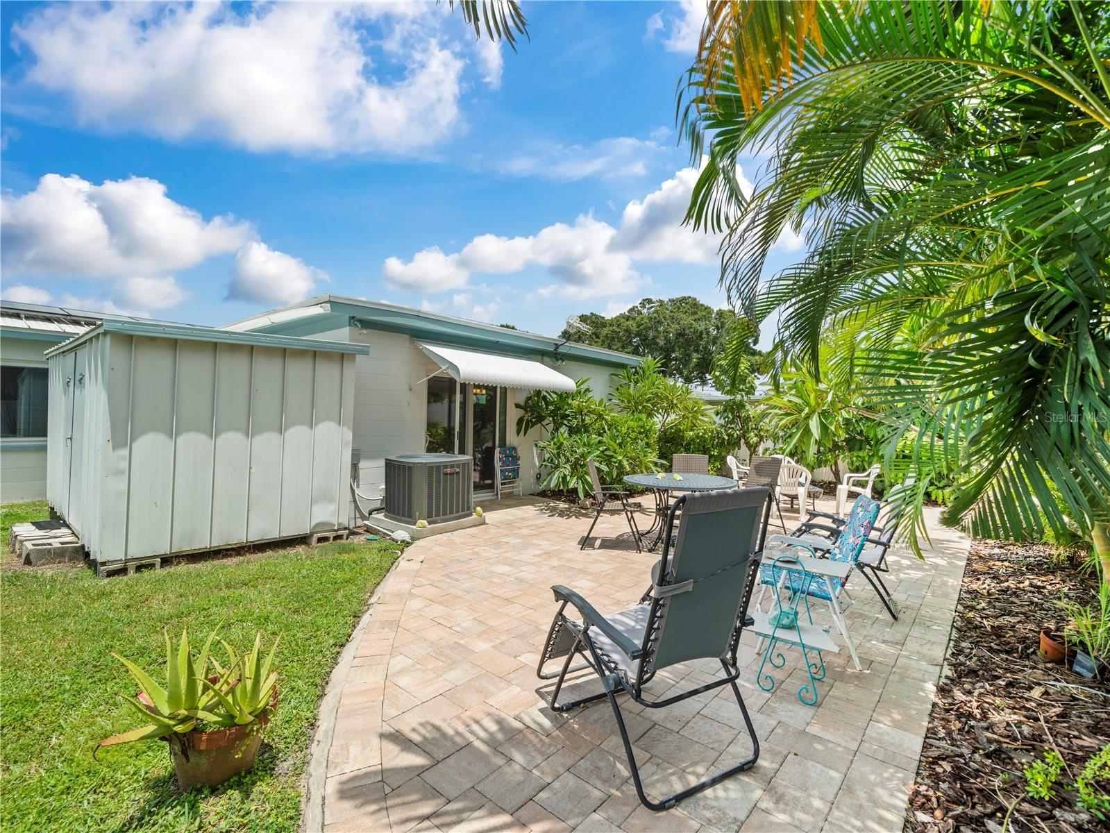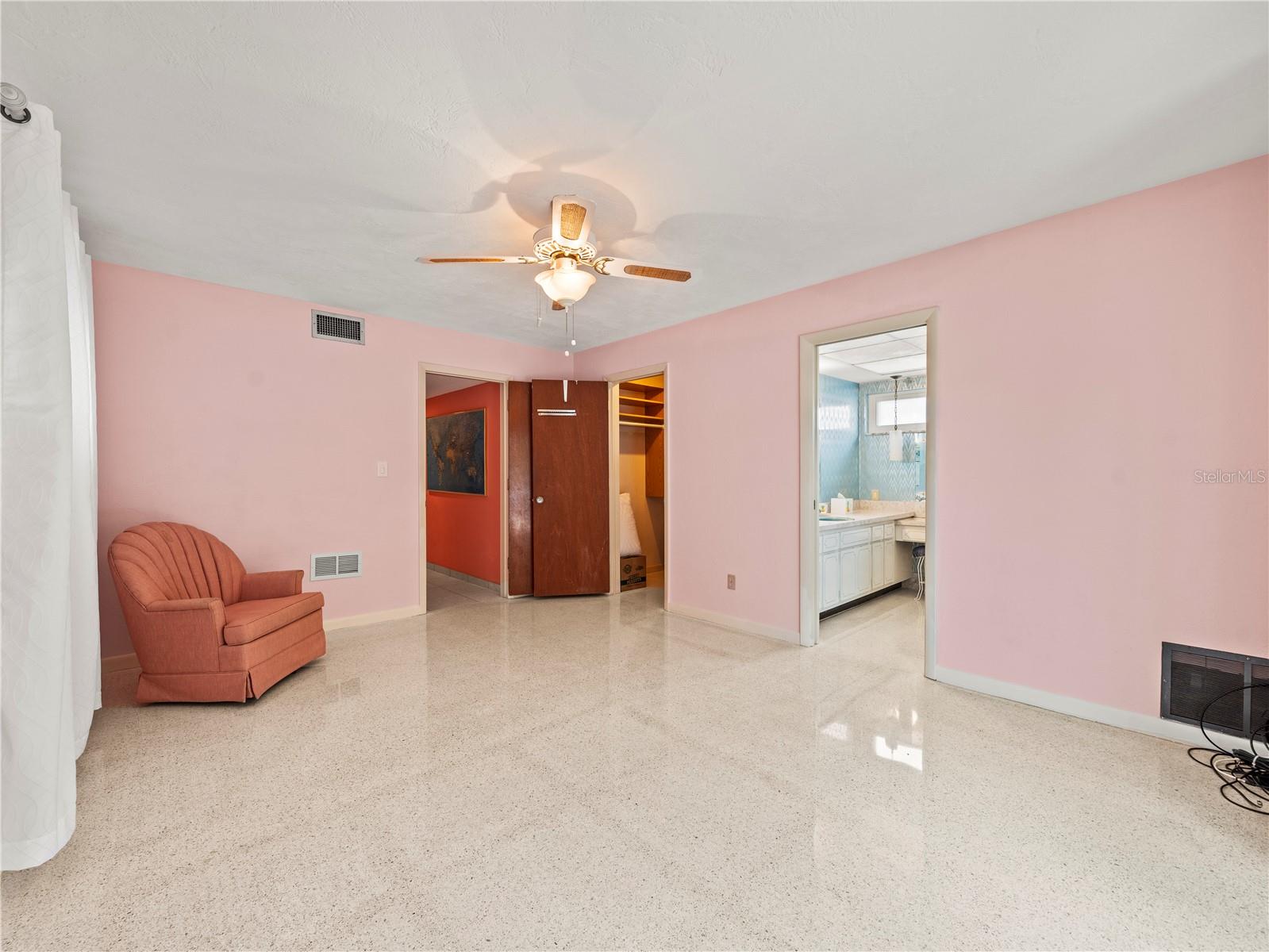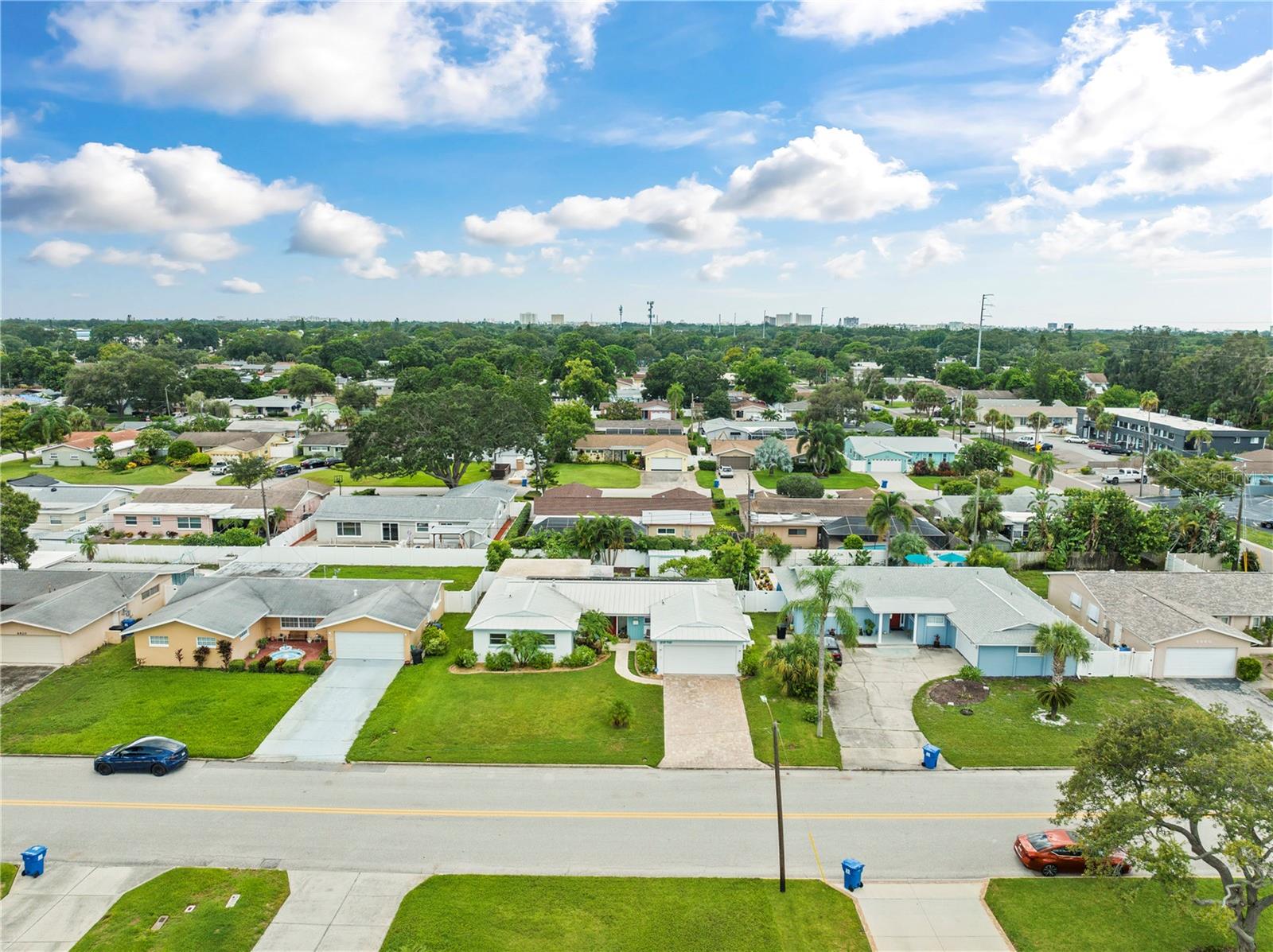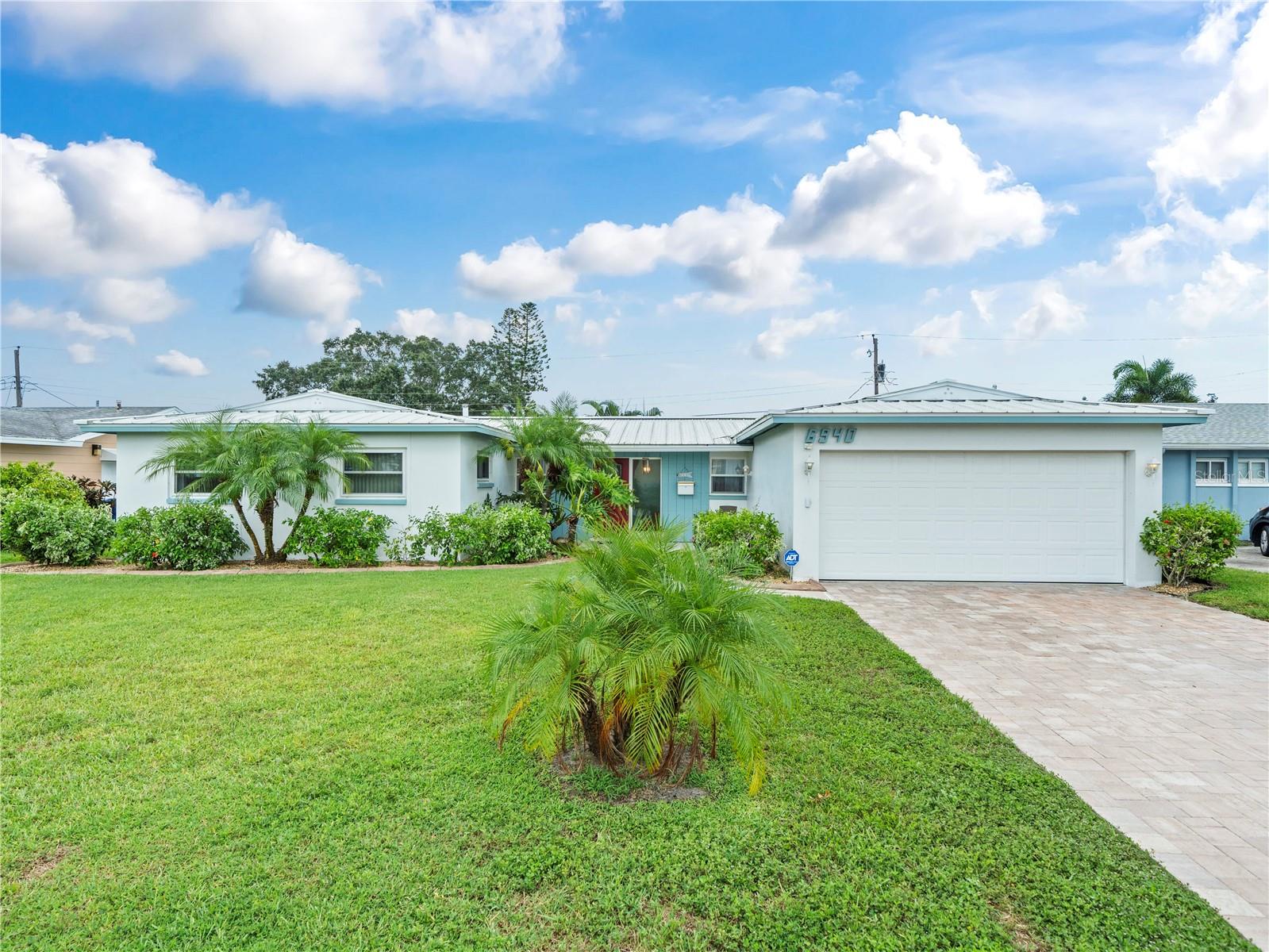 This immaculate solid concrete home is over 2000sf, with some gorgeous mid-century modern vibes! It's in a very desirable area of St Petersburg, only 1/2 mile to Tyrone Square Mall and all the shops and restaurants, only a quick 10 minute drive to the beaches which are the TOP U.S beaches! Only 18 miles to Tampa International Airport! 4 bedrooms + 2 bathroom, a 2-car garage and has been cared for with only one owner! Master bedroom has a 6x8 foot walk-in California closet and the entire hallway leading to the bedroom is lined with closets. The amount of closet/storage space in this home is amazing and unusual! The gorgeous terrazzo floors have just been stripped and cleaned and boy, are they incredible! The rest of the home has beautiful tile flooring, NO carpet! The roof has solar panels that are paid for, the avg electric bill is $35.00/month with the hottest months still only $85-135/month! Argon gas and hurricane resistant windows! New A/C unit in 2020, tankless water heater, Levelor blinds, thermal vacuum sealed windows to keep warm/cool, quartz countertops. Gas or electric hook-up for dryer. An area with new pavers in the completely vinyl-fenced back yard (with 2 storage sheds) offer a great sitting area for these beautiful Florida days, the yard is beautiful with Plumeria trees and 2 avocado trees that bear Haas and Florida avocadoes! The home also has a living room AND a family room, the living room has a stone fireplace that is either wood-burning OR electric! Home has a well for lawn irrigation. Beachy mural on dining room wall painted by the owner, so pretty! Call today to come tour this fabulous home!