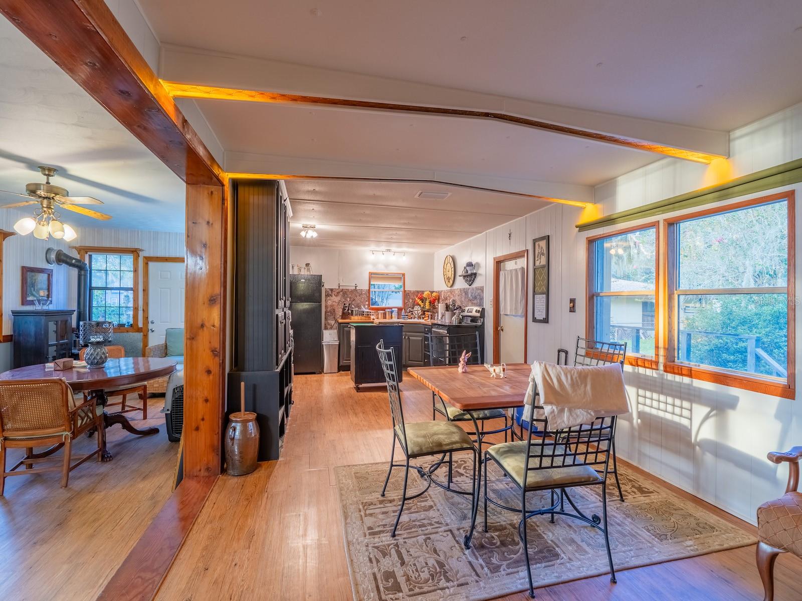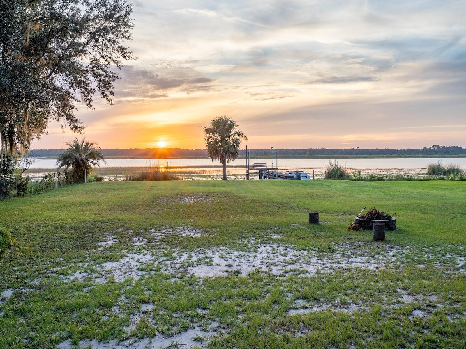 Situated on 2.19 acres with 200 feet of waterfront on Little Lake Kerr, this unique property offers spectacular sunsets, privacy, and room to entertain. The estate features both a custom-built main home (2005) and a guest home, perfect for multi-generational living or hosting extended family and friends. The main home includes 3 bedrooms, 2 bathrooms, plus a half bath outside for lake and work days. With 1,761 sq ft under heat and air, the home features vaulted ceilings, abundant natural light, and an open floor plan. The custom kitchen includes cherry cabinets, granite countertops, double ovens, glass cooktop, double-drawer dishwasher, and large sink with bar area. The spacious primary suite (15’x19’) includes a walk-in closet and en suite with tiled walk-in shower, vanity, and private toilet area. Guest bedrooms share a Jack & Jill bath with tiled tub/shower combo. A wood-burning fireplace anchors the living room with lake views, while French doors open to a rear covered porch, fire pit, and landscaped backyard. Additional features include a 24’x12’ carport, laundry/utility room, and screened area off the living room. Outdoor living shines with a 24’x24’ covered gazebo (power, lights, ceiling fans, and hot tub), above-ground pool with sun deck, large multi level dock for the boat and a concrete boat ramp. The guest home (1974 mobile home with full-length addition) offers 1,344 sq ft, 2 bedrooms, 2 bathrooms, dining area, updated kitchen with range, refrigerator, island, custom cabinets with wood countertops, and a 46’x12’ living room with three large picture windows overlooking the lake. Several storage buildings are located between the two homes. Surrounded by the Ocala National Forest, this property is minutes from the Salt Springs Recreation Area, Lake George, and the St. Johns River. The area offers endless opportunities for boating, fishing, hunting, hiking, and trail riding, with everyday conveniences just minutes away. Only 30 minutes to Ocala or Palatka. This is a one-of-a-kind lakefront retreat combining privacy, modern updates, and multiple residences—perfect for year-round living or as a family getaway.