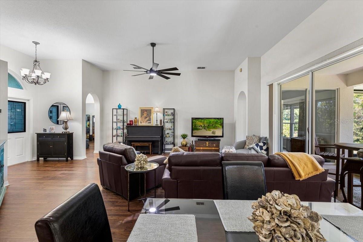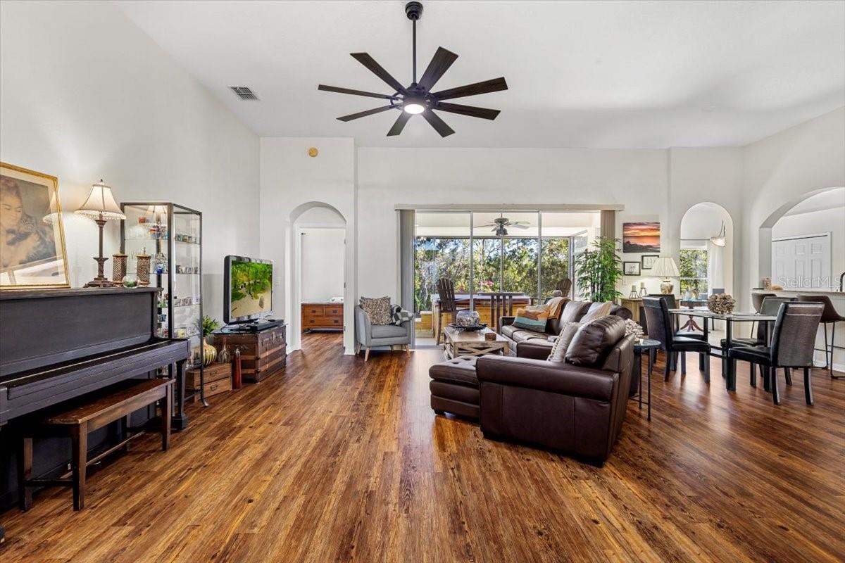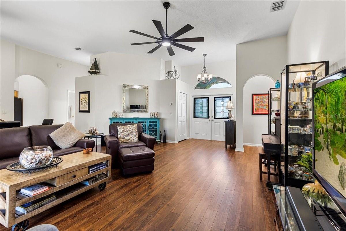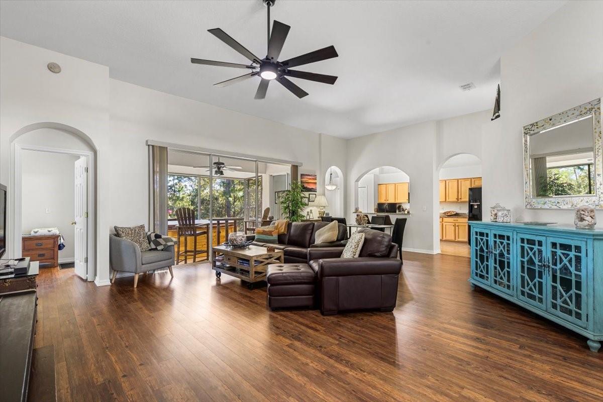 Beautiful Home with Golf Course Views, Conservation Privacy, and Modern Upgrades This move-in ready home sits on a private conservation lot with serene views in the rear and a picturesque golf course vista from the front. Located in the sought-after gated 55+ community of Tampa Bay Golf and Country Club, this home combines elegance, comfort, and a host of recent upgrades. Recent Improvements: • New Roof (March 2023) • New Luxury Wood-Laminate Flooring • Master Bath Remodel (February 2022) • Newer Double-Paned Windows • A/C Replacement (2019) • New Washer & Dryer (2022) • New Range (2023) • New Screen for Garage • New Private Hot Tub (2023) on the Back Lanai • Paver Expansion on the Driveway and Back Patio • Customized Leaded Front Door Windows • Sprinkler System • 50-Amp RV/Camper Hookup Step through the customized leaded-glass front doors into an open and inviting living/dining room combo with direct access to the covered screened lanai. Relax in your private hot tub or enjoy the expanded paver patio, perfect for entertaining. The kitchen features granite countertops, a breakfast nook, and a spacious closet pantry. The master suite includes a beautifully remodeled bath with a tiled walk-in shower and dual-sink vanity. The front guest bedroom or office offers a clear view of golfers teeing off on the 15th hole. Furniture is negotiable. The HOA covers lawn care, cable, internet, and access to exceptional community amenities, including: • Two swimming pools (one heated) • On-site restaurant and pub • Executive and Championship golf courses This home is a must-see! Schedule your showing today to experience all it has to offer.