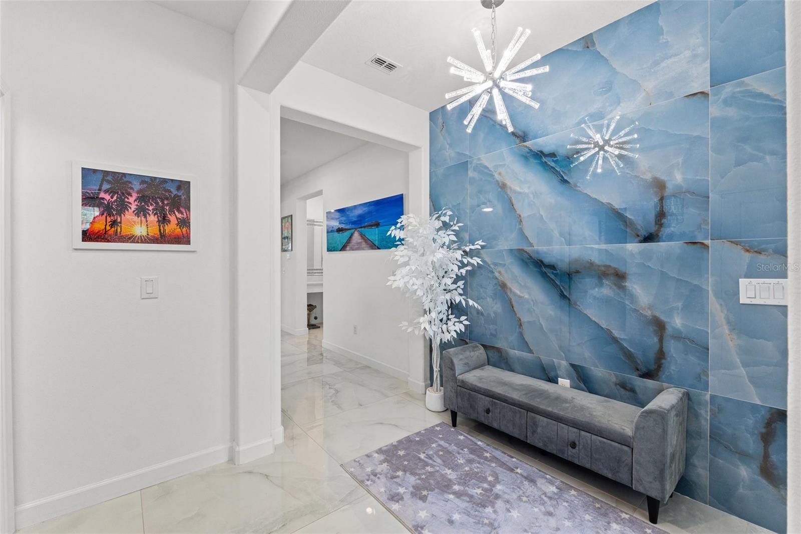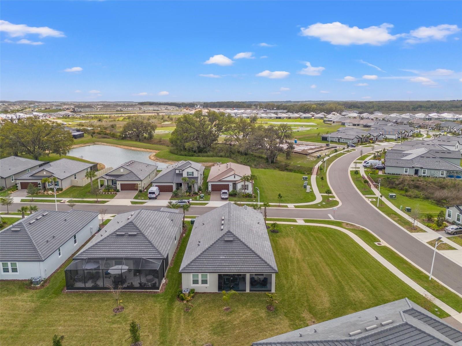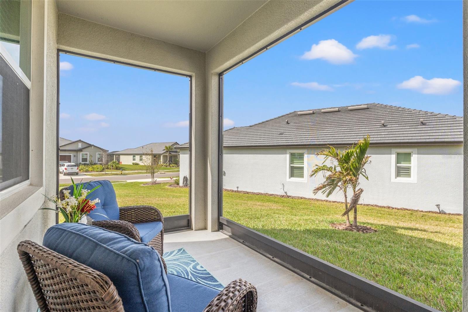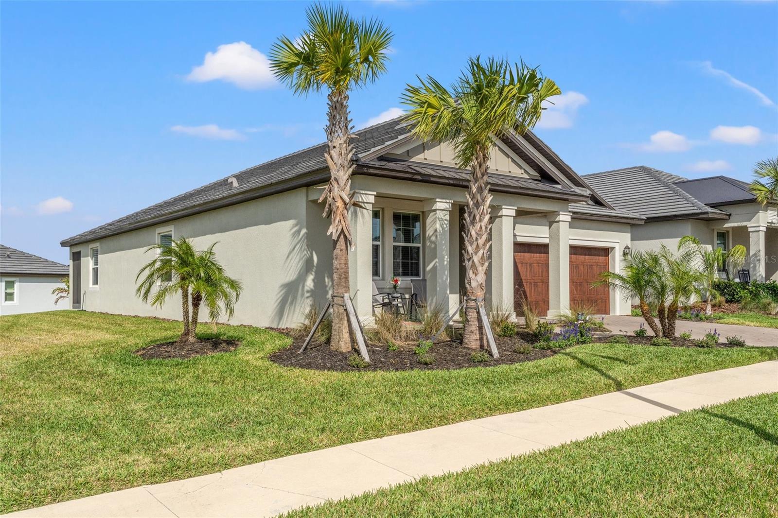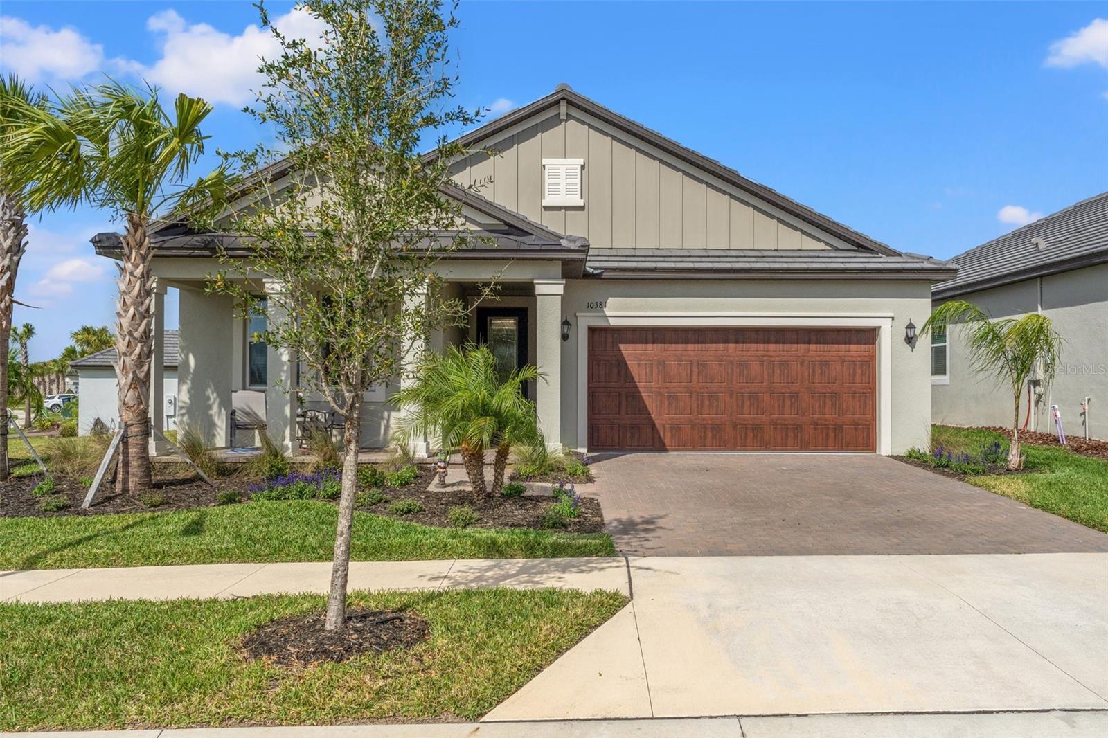 Home in Lagoon Community with Double Corner Lot, Screened Lanai and many upgrades! Welcome to 10381 Tupper Cay Dr, a beautifully maintained 2-bedroom, 2-bath home, with a multi-use flex room, situated on a generous 0.29-acre double corner lot. As you enter the home through the upgraded 8-foot glass panel entrance door, you encounter a beautiful tiled feature wall with a sitting/shoe storage bench and modern chandelier lighting. The guest bath has floor to ceiling custom tile with a LED Spa Shower Tower with a Rain and Waterfall head and four massage body jets. Talk about relaxation after a long day! All of the builder’s floor tile throughout the house has been replaced with a gorgeous large format marble-looking porcelain tile, giving the home an elegant look and feel. The kitchen features a custom backsplash and large pantry. The open concept living and dining areas create a welcoming atmosphere with plenty of natural light. Step outside to your screened-in lanai through the 3-panel glass sliding doors, the perfect spot for morning coffee or evening relaxation. The primary suite serves as a peaceful retreat, complete with a walk-in closet, en-suite bath which has been upgraded with dual vanities, and a custom-tiled walk-in shower. The laundry room is huge. Lighting has been upgraded throughout the house and a fan installed on the lanai. The front porch and driveway have been sealed. This home is in Medley at Mirada, a 55+ community. Medley has a clubhouse with a bar, restaurant, heated pool, billiard room, event room, tennis-pickle ball and bocce ball courts, fitness room and dog park. This sits inside of Mirada’s 15-acre crystal clear lagoon community that has a swim up bar, sandy beaches, tiki huts, kayaking and so much more. It is Resort living at its finest! This easy living neighborhood is a must see to appreciate. Furniture can be included in the sale with a competitive offer!!! Don’t miss out on this wonderful opportunity—schedule your private showing today!