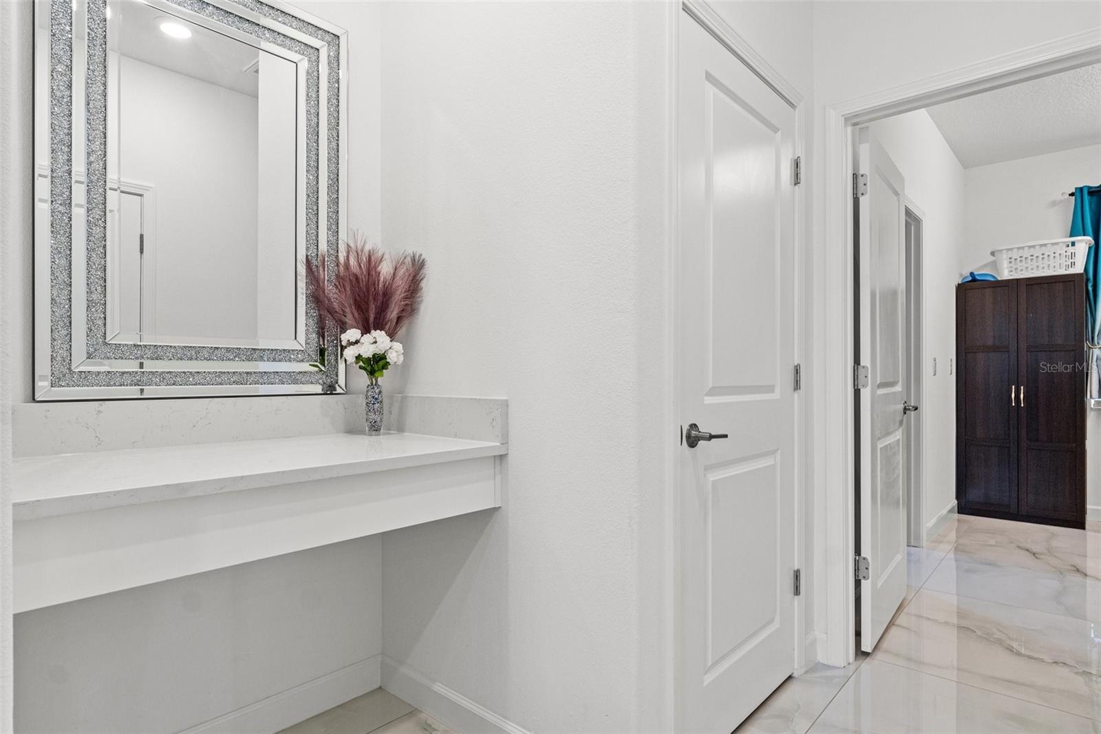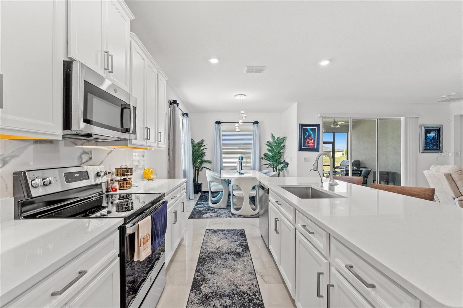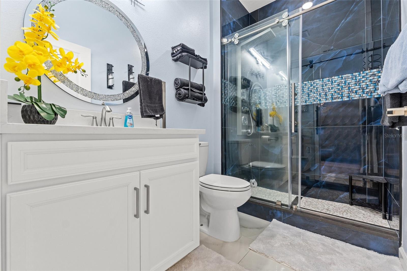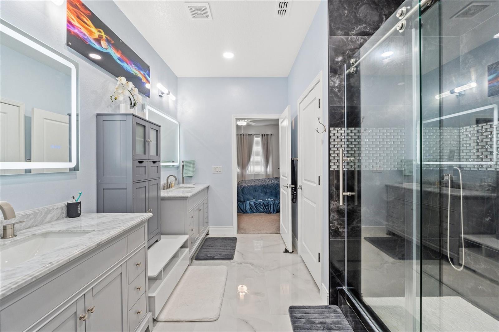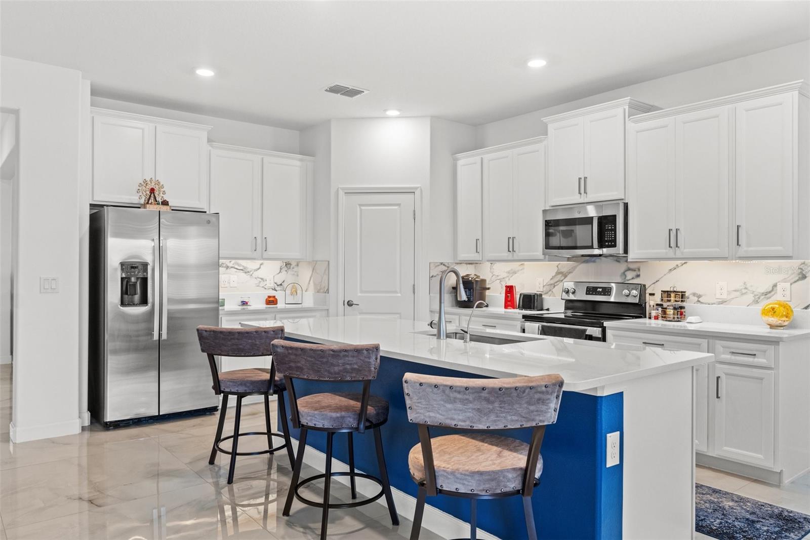 Home in Lagoon Community with Double Corner Lot, Screened Lanai and many upgrades! Welcome to 10381 Tupper Cay Dr, a beautifully maintained 2-bedroom, 2-bath home, with a multi-use flex room, situated on a generous 0.29-acre double corner lot. As you enter the home through the upgraded 8-foot glass panel entrance door, you encounter a beautiful tiled feature wall with a sitting/shoe storage bench and modern chandelier lighting. The guest bath has floor to ceiling custom tile with a LED Spa Shower Tower with a Rain and Waterfall head and four massage body jets. Talk about relaxation after a long day! All of the builder’s floor tile throughout the house has been replaced with a gorgeous large format marble-looking porcelain tile, giving the home an elegant look and feel. The kitchen features a custom backsplash and large pantry. The open concept living and dining areas create a welcoming atmosphere with plenty of natural light. Step outside to your screened-in lanai through the 3-panel glass sliding doors, the perfect spot for morning coffee or evening relaxation. The primary suite serves as a peaceful retreat, complete with a walk-in closet, en-suite bath which has been upgraded with dual vanities, and a custom-tiled walk-in shower. The laundry room is huge. Lighting has been upgraded throughout the house and a fan installed on the lanai. The front porch and driveway have been sealed. This home is in Medley at Mirada, a 55+ community. Medley has a clubhouse with a bar, restaurant, heated pool, billiard room, event room, tennis-pickle ball and bocce ball courts, fitness room and dog park. This sits inside of Mirada’s 15-acre crystal clear lagoon community that has a swim up bar, sandy beaches, tiki huts, kayaking and so much more. It is Resort living at its finest! This easy living neighborhood is a must see to appreciate. Furniture can be included in the sale with a competitive offer!!! Don’t miss out on this wonderful opportunity—schedule your private showing today!