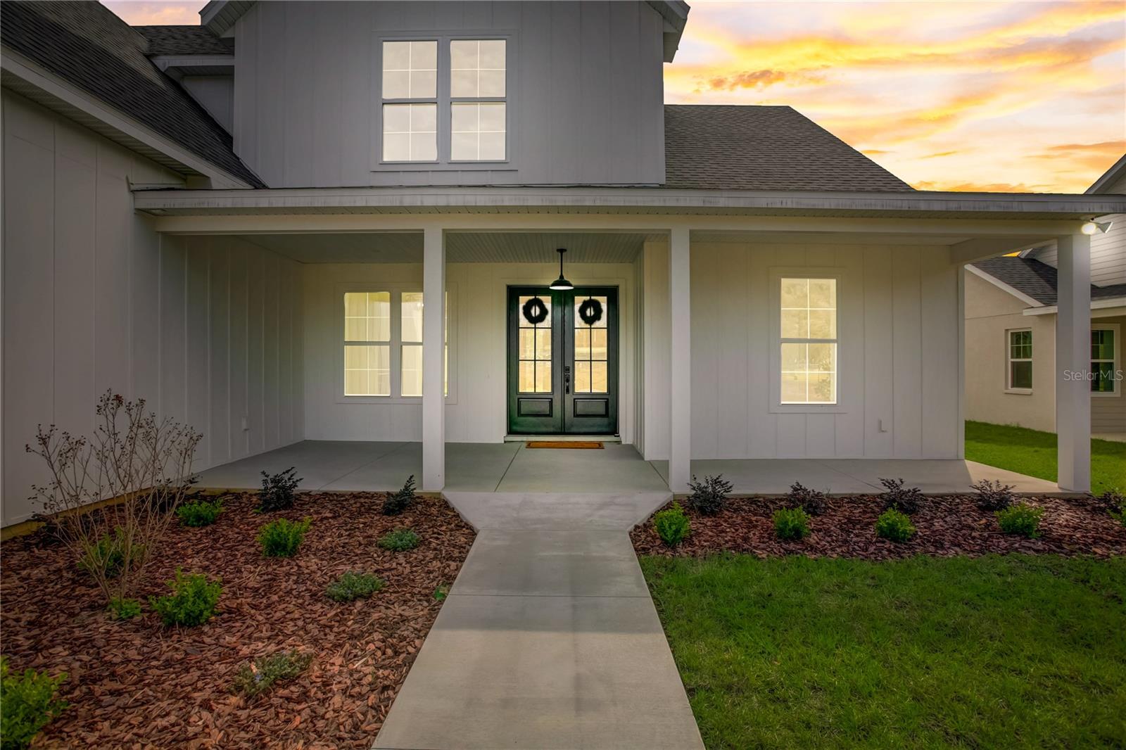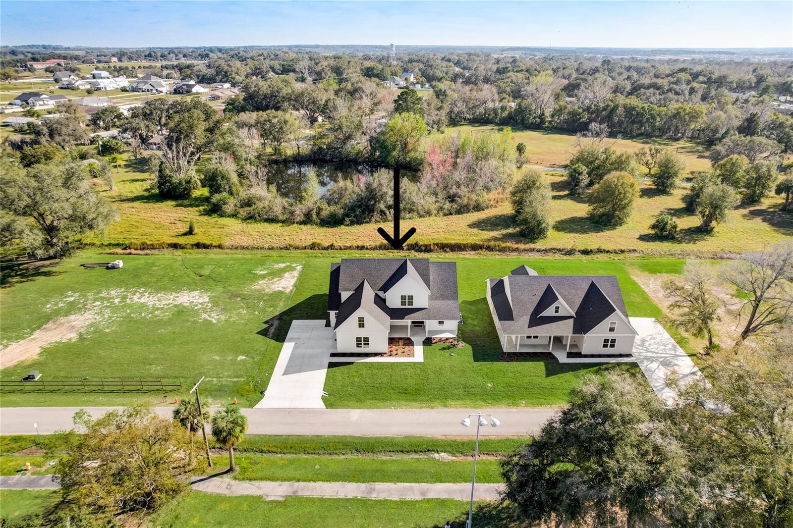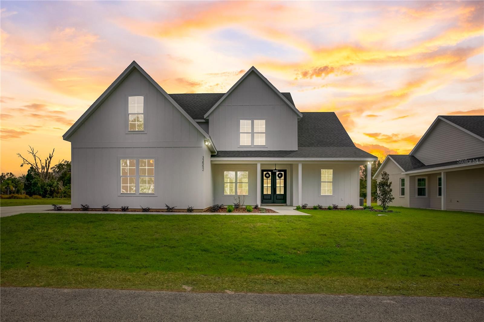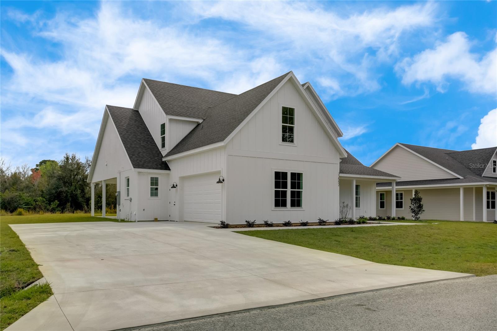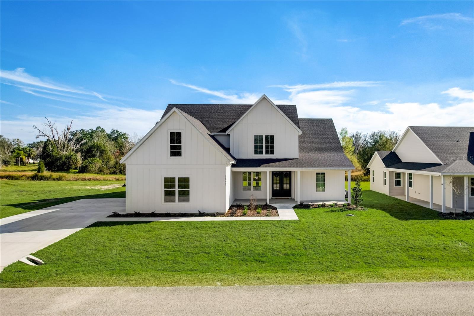 Stunning, one-of-a-kind, brand-new home in the heart of San Antonio. This 3 bedroom, 3.5bath + bonus room, 2 story abode is an absolute dream property created by a local custom builder. Situated on over 1/3 of an acre, near the San Antonio Athletic Complex, and with peaceful backyard views, this home exudes attention to detail and care from the ground up. Inviting curb appeal introduces the home with new landscaping, a side-facing garage, a James Hardie Board and Batten exterior, and an extended covered front porch. Enter through double doors into the grand foyer and experience luxury at every turn. Sprawling open sightlines, warm-toned vinyl plank flooring, custom pillar accents, a gas fireplace with a leathered granite surround, French doors with 2 full panel transom sidelights, and soaring vaulted ceilings are featured in the expansive main living areas. Enjoy entertaining from the gourmet modern farmhouse kitchen- accented by custom 2 tone cabinetry, quartz countertops, a massive center island with abundant storage, a decorative backsplash, a gas cooktop with a range hood, open shelving, a built-in double oven, stainless steel refrigerator and convenient butler’s pantry with granite counters, a wet bar, and pantry space. Privately located on the first floor, the 13x15 primary suite offers vaulted ceilings, a large walk-in closet, and a spa-like ensuite bathroom with a soaking tub, a quartz topped dual vanity, upgraded lighting, and a glass enclosed walk-in shower. A half bath for guests thoughtfully completes the first floor. Stroll up the winding staircase, highlighted by a custom wood railing, to the second floor. Bedroom 2 is generously sized and features a walk-in closet and an ensuite bathroom through a barn door with a walk-in shower and custom vanity. A spacious bonus room/office separates the guest bedrooms. Bedroom 3 has a walk-in closet and is adjacent to the home’s 3rd full bathroom. Relax and unwind outdoors under the cover of the extended back porch overlooking the beautiful treelined yard. Every inch of this home has been designed to include elegant details and finishes with convenience and function in mind. Spray foam insulation, energy-efficient windows, and irrigation are some of the valuable upgrades for this home’s first residents. San Antonio is a wonderful community with local shops, eateries, the Mirada Lagoon, and easy access to major highways and downtown Dade City. Call us today for your opportunity to view this turn-key property!