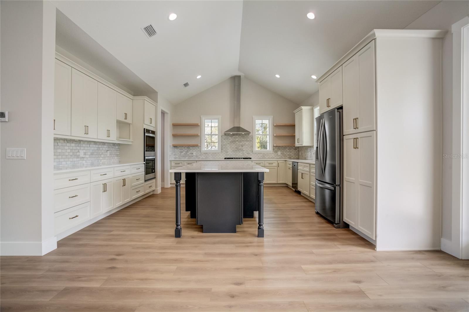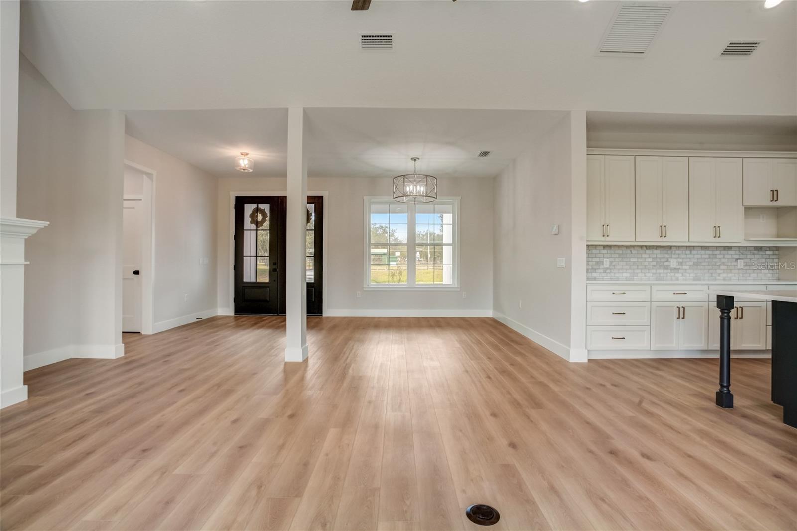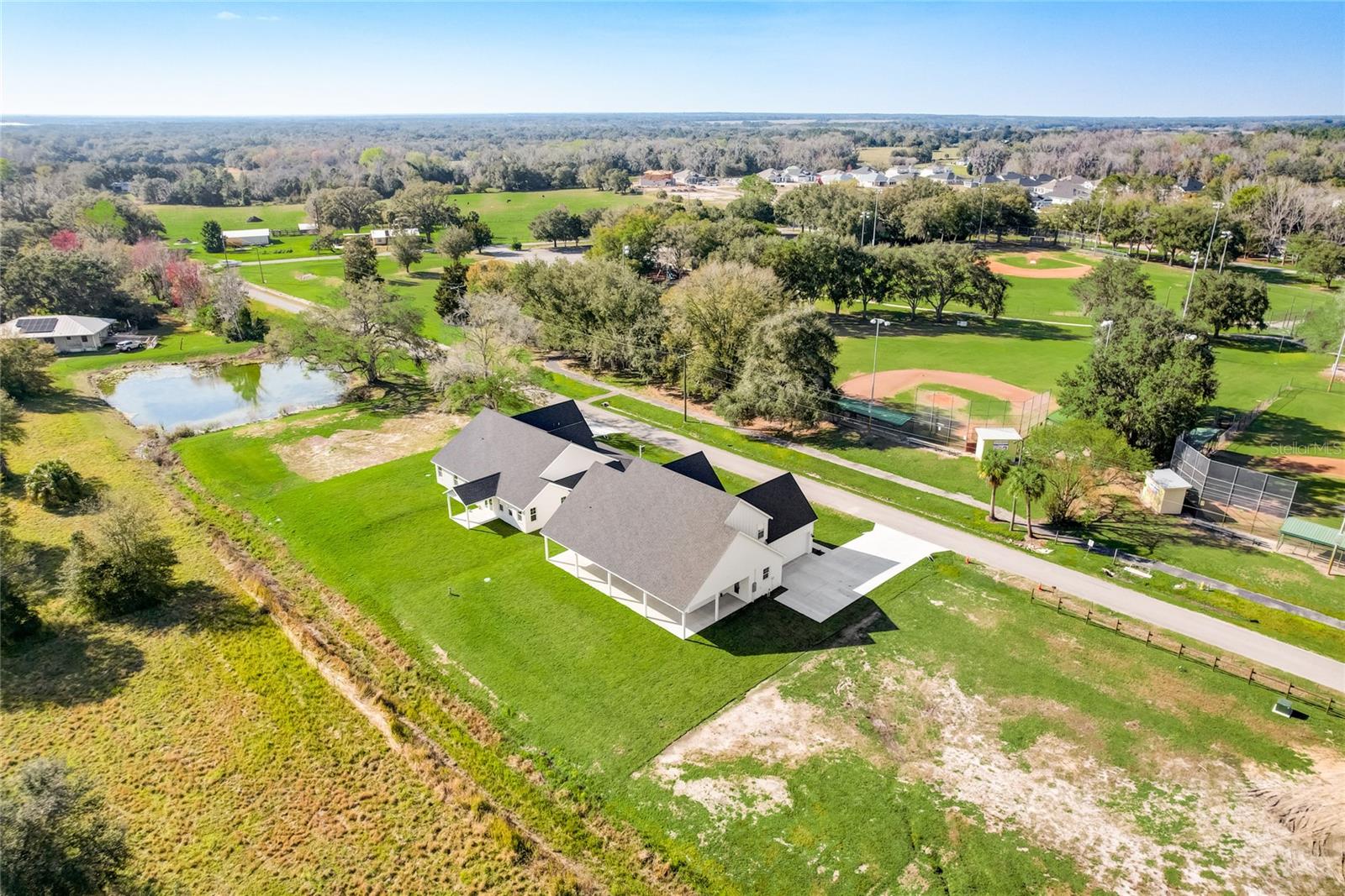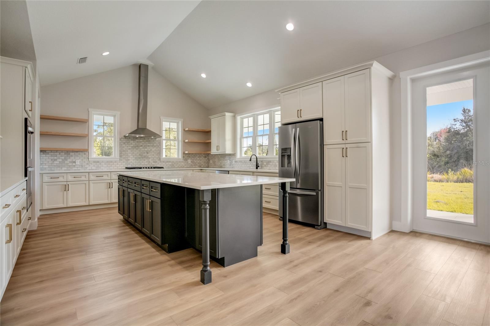 Stunning, one-of-a-kind, brand-new home in the heart of San Antonio. This 3 bedroom, 3.5bath + bonus room, 2 story abode is an absolute dream property created by a local custom builder. Situated on over 1/3 of an acre, near the San Antonio Athletic Complex, and with peaceful backyard views, this home exudes attention to detail and care from the ground up. Inviting curb appeal introduces the home with new landscaping, a side-facing garage, a James Hardie Board and Batten exterior, and an extended covered front porch. Enter through double doors into the grand foyer and experience luxury at every turn. Sprawling open sightlines, warm-toned vinyl plank flooring, custom pillar accents, a gas fireplace with a leathered granite surround, French doors with 2 full panel transom sidelights, and soaring vaulted ceilings are featured in the expansive main living areas. Enjoy entertaining from the gourmet modern farmhouse kitchen- accented by custom 2 tone cabinetry, quartz countertops, a massive center island with abundant storage, a decorative backsplash, a gas cooktop with a range hood, open shelving, a built-in double oven, stainless steel refrigerator and convenient butler’s pantry with granite counters, a wet bar, and pantry space. Privately located on the first floor, the 13x15 primary suite offers vaulted ceilings, a large walk-in closet, and a spa-like ensuite bathroom with a soaking tub, a quartz topped dual vanity, upgraded lighting, and a glass enclosed walk-in shower. A half bath for guests thoughtfully completes the first floor. Stroll up the winding staircase, highlighted by a custom wood railing, to the second floor. Bedroom 2 is generously sized and features a walk-in closet and an ensuite bathroom through a barn door with a walk-in shower and custom vanity. A spacious bonus room/office separates the guest bedrooms. Bedroom 3 has a walk-in closet and is adjacent to the home’s 3rd full bathroom. Relax and unwind outdoors under the cover of the extended back porch overlooking the beautiful treelined yard. Every inch of this home has been designed to include elegant details and finishes with convenience and function in mind. Spray foam insulation, energy-efficient windows, and irrigation are some of the valuable upgrades for this home’s first residents. San Antonio is a wonderful community with local shops, eateries, the Mirada Lagoon, and easy access to major highways and downtown Dade City. Call us today for your opportunity to view this turn-key property!