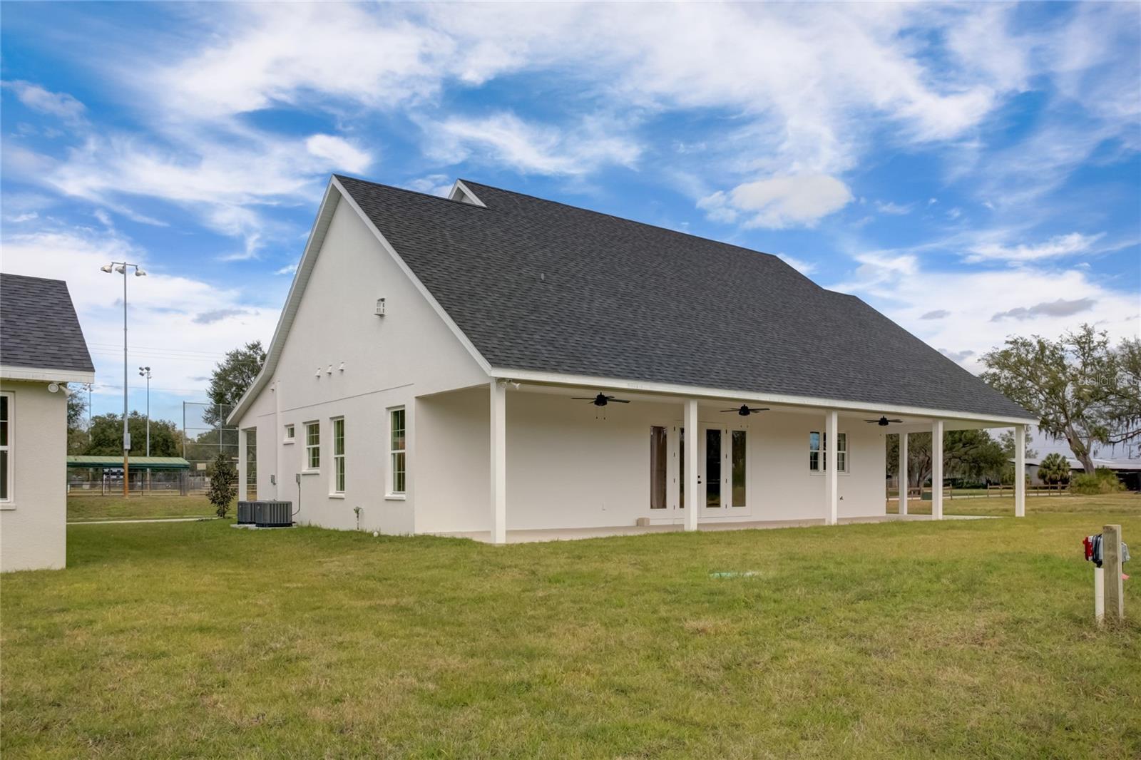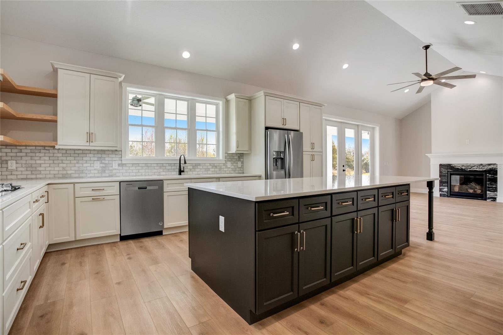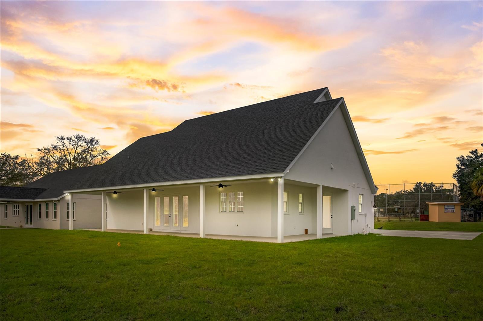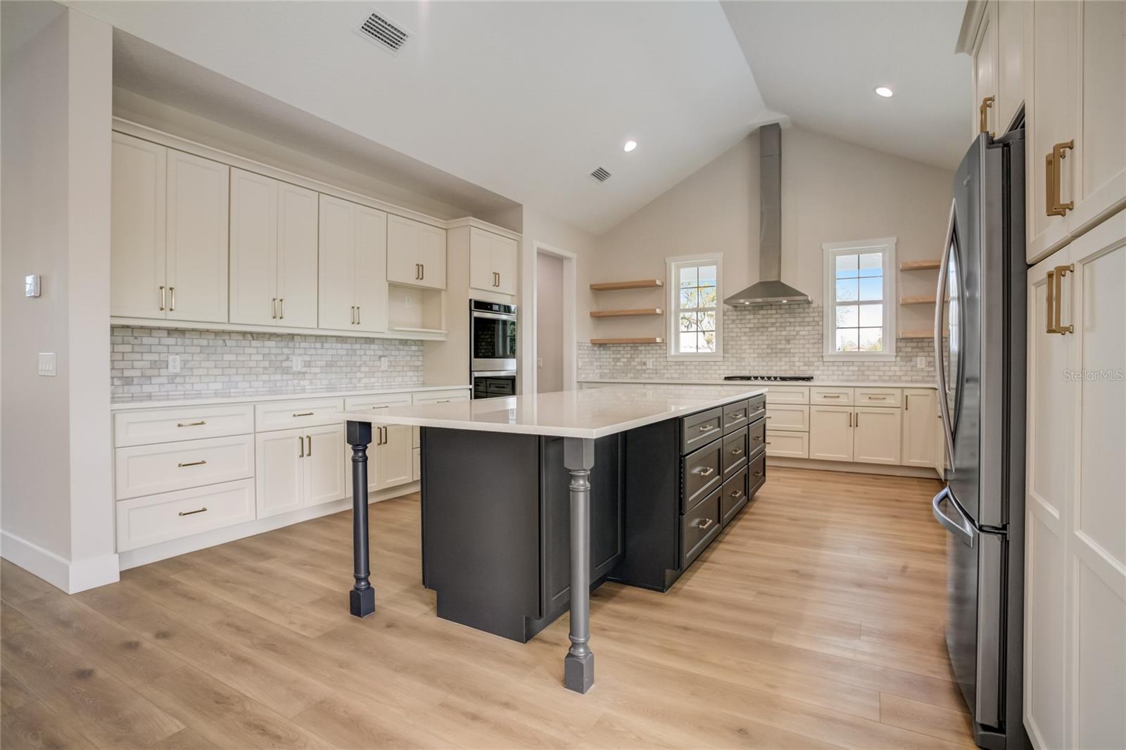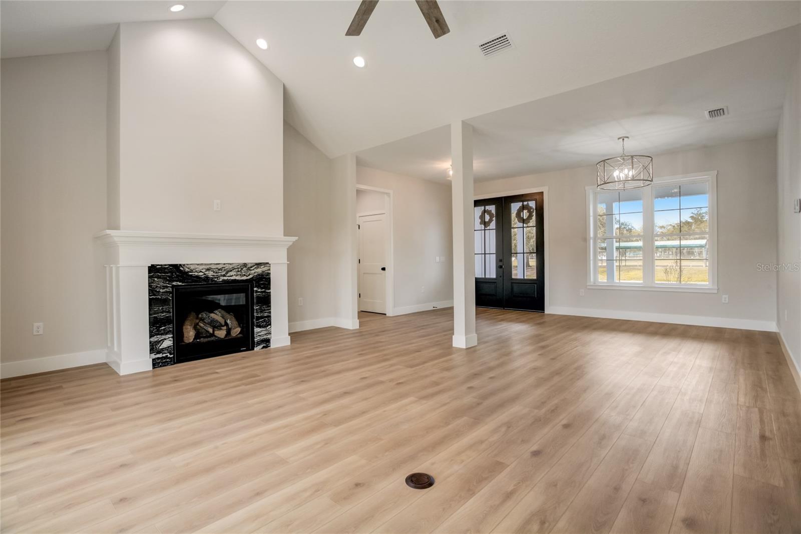 Stunning, one-of-a-kind, brand-new home in the heart of San Antonio. This 3 bedroom, 3.5bath + bonus room, 2 story abode is an absolute dream property created by a local custom builder. Situated on over 1/3 of an acre, near the San Antonio Athletic Complex, and with peaceful backyard views, this home exudes attention to detail and care from the ground up. Inviting curb appeal introduces the home with new landscaping, a side-facing garage, a James Hardie Board and Batten exterior, and an extended covered front porch. Enter through double doors into the grand foyer and experience luxury at every turn. Sprawling open sightlines, warm-toned vinyl plank flooring, custom pillar accents, a gas fireplace with a leathered granite surround, French doors with 2 full panel transom sidelights, and soaring vaulted ceilings are featured in the expansive main living areas. Enjoy entertaining from the gourmet modern farmhouse kitchen- accented by custom 2 tone cabinetry, quartz countertops, a massive center island with abundant storage, a decorative backsplash, a gas cooktop with a range hood, open shelving, a built-in double oven, stainless steel refrigerator and convenient butler’s pantry with granite counters, a wet bar, and pantry space. Privately located on the first floor, the 13x15 primary suite offers vaulted ceilings, a large walk-in closet, and a spa-like ensuite bathroom with a soaking tub, a quartz topped dual vanity, upgraded lighting, and a glass enclosed walk-in shower. A half bath for guests thoughtfully completes the first floor. Stroll up the winding staircase, highlighted by a custom wood railing, to the second floor. Bedroom 2 is generously sized and features a walk-in closet and an ensuite bathroom through a barn door with a walk-in shower and custom vanity. A spacious bonus room/office separates the guest bedrooms. Bedroom 3 has a walk-in closet and is adjacent to the home’s 3rd full bathroom. Relax and unwind outdoors under the cover of the extended back porch overlooking the beautiful treelined yard. Every inch of this home has been designed to include elegant details and finishes with convenience and function in mind. Spray foam insulation, energy-efficient windows, and irrigation are some of the valuable upgrades for this home’s first residents. San Antonio is a wonderful community with local shops, eateries, the Mirada Lagoon, and easy access to major highways and downtown Dade City. Call us today for your opportunity to view this turn-key property!