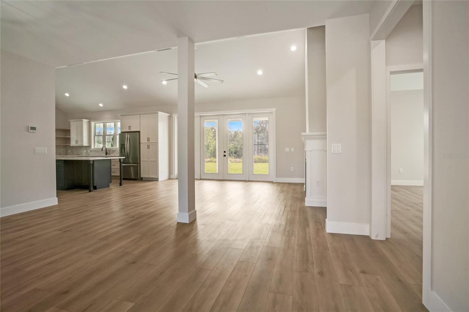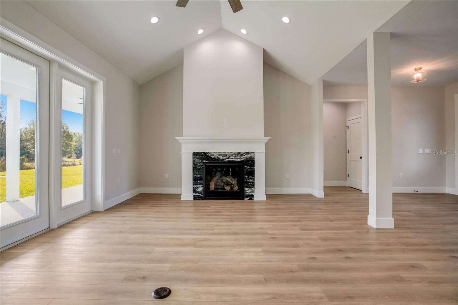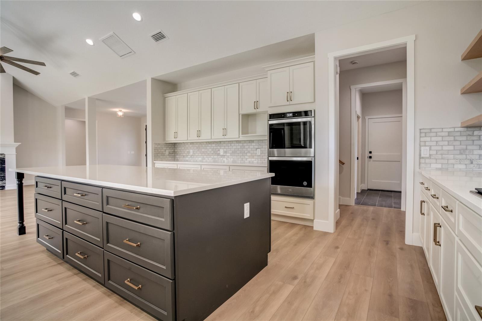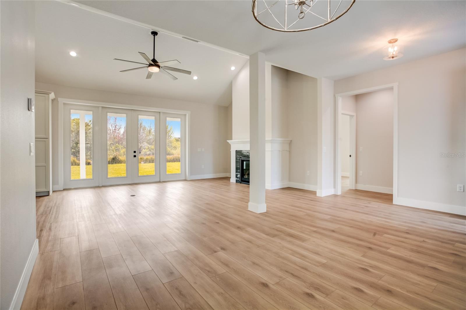 Stunning, one-of-a-kind, brand-new home in the heart of San Antonio. This 3 bedroom, 3.5bath + bonus room, 2 story abode is an absolute dream property created by a local custom builder. Situated on over 1/3 of an acre, near the San Antonio Athletic Complex, and with peaceful backyard views, this home exudes attention to detail and care from the ground up. Inviting curb appeal introduces the home with new landscaping, a side-facing garage, a James Hardie Board and Batten exterior, and an extended covered front porch. Enter through double doors into the grand foyer and experience luxury at every turn. Sprawling open sightlines, warm-toned vinyl plank flooring, custom pillar accents, a gas fireplace with a leathered granite surround, French doors with 2 full panel transom sidelights, and soaring vaulted ceilings are featured in the expansive main living areas. Enjoy entertaining from the gourmet modern farmhouse kitchen- accented by custom 2 tone cabinetry, quartz countertops, a massive center island with abundant storage, a decorative backsplash, a gas cooktop with a range hood, open shelving, a built-in double oven, stainless steel refrigerator and convenient butler’s pantry with granite counters, a wet bar, and pantry space. Privately located on the first floor, the 13x15 primary suite offers vaulted ceilings, a large walk-in closet, and a spa-like ensuite bathroom with a soaking tub, a quartz topped dual vanity, upgraded lighting, and a glass enclosed walk-in shower. A half bath for guests thoughtfully completes the first floor. Stroll up the winding staircase, highlighted by a custom wood railing, to the second floor. Bedroom 2 is generously sized and features a walk-in closet and an ensuite bathroom through a barn door with a walk-in shower and custom vanity. A spacious bonus room/office separates the guest bedrooms. Bedroom 3 has a walk-in closet and is adjacent to the home’s 3rd full bathroom. Relax and unwind outdoors under the cover of the extended back porch overlooking the beautiful treelined yard. Every inch of this home has been designed to include elegant details and finishes with convenience and function in mind. Spray foam insulation, energy-efficient windows, and irrigation are some of the valuable upgrades for this home’s first residents. San Antonio is a wonderful community with local shops, eateries, the Mirada Lagoon, and easy access to major highways and downtown Dade City. Call us today for your opportunity to view this turn-key property!