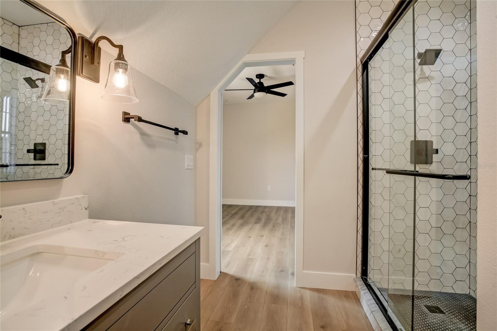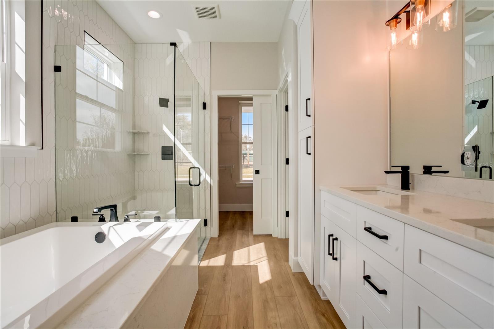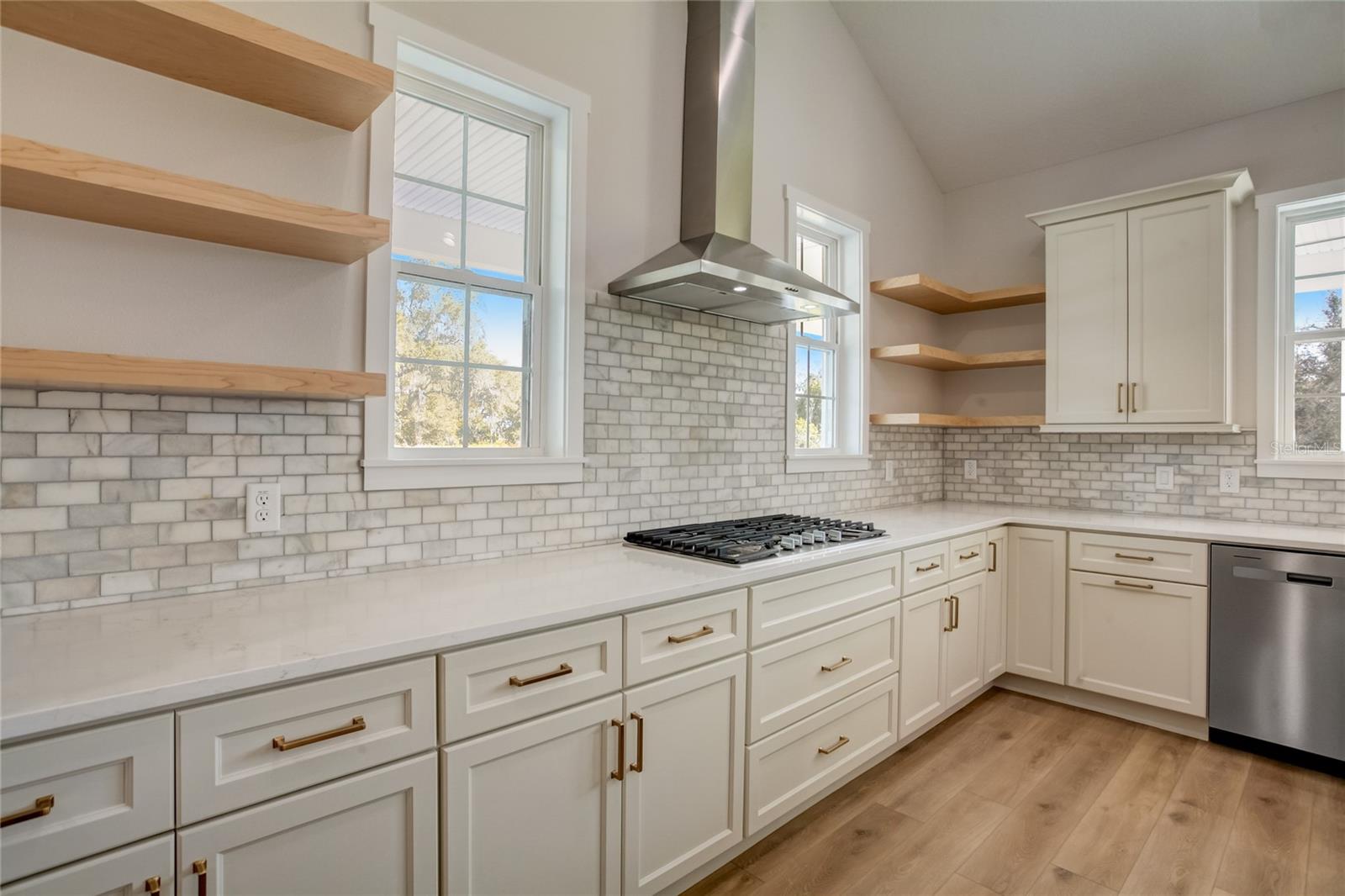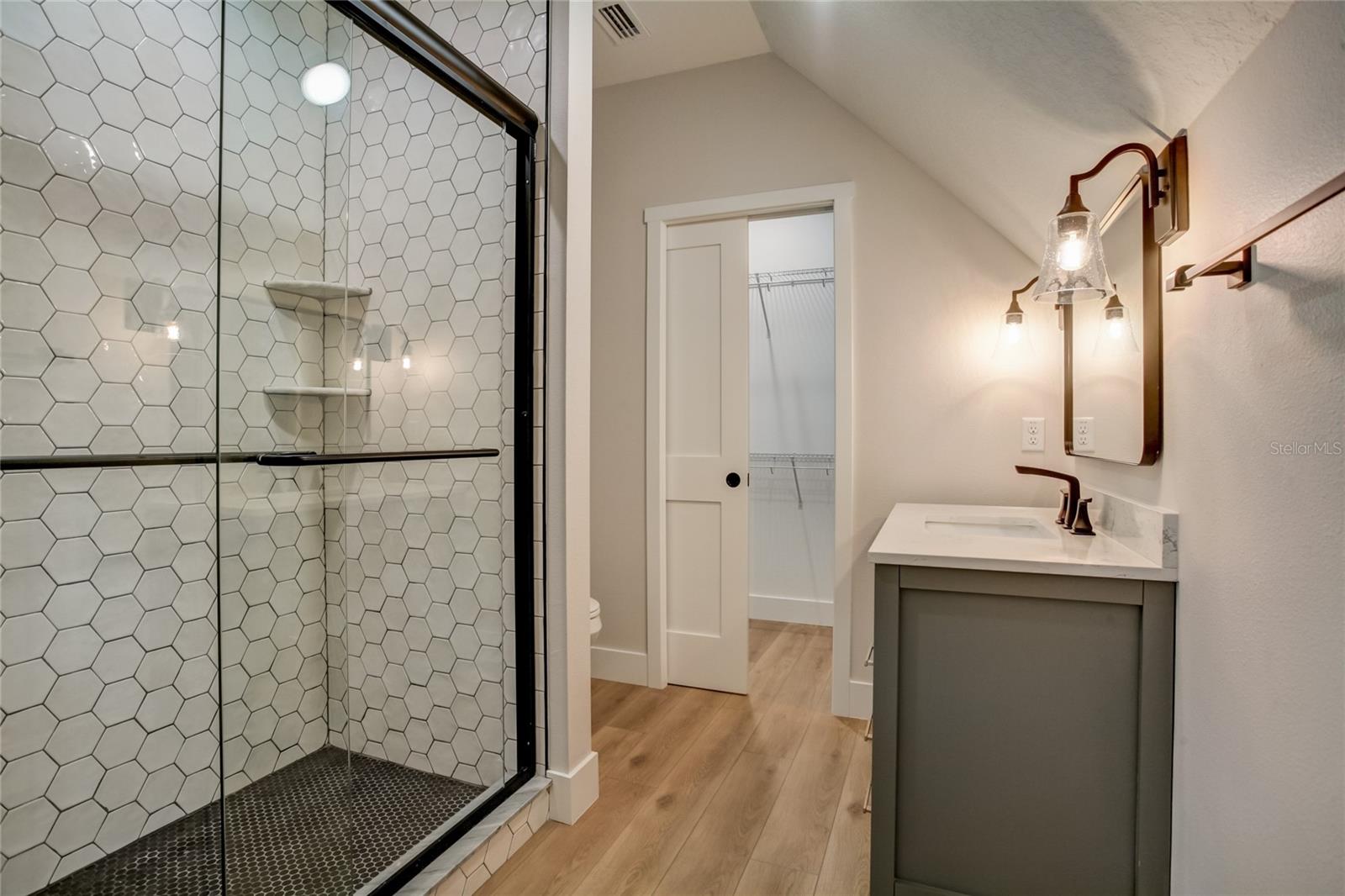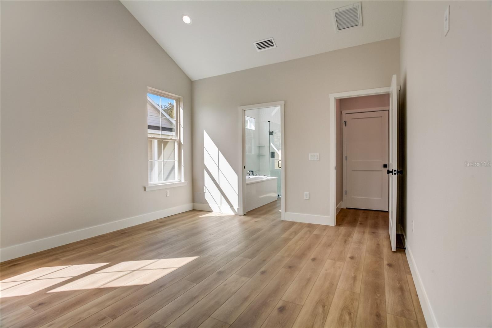 Stunning, one-of-a-kind, brand-new home in the heart of San Antonio. This 3 bedroom, 3.5bath + bonus room, 2 story abode is an absolute dream property created by a local custom builder. Situated on over 1/3 of an acre, near the San Antonio Athletic Complex, and with peaceful backyard views, this home exudes attention to detail and care from the ground up. Inviting curb appeal introduces the home with new landscaping, a side-facing garage, a James Hardie Board and Batten exterior, and an extended covered front porch. Enter through double doors into the grand foyer and experience luxury at every turn. Sprawling open sightlines, warm-toned vinyl plank flooring, custom pillar accents, a gas fireplace with a leathered granite surround, French doors with 2 full panel transom sidelights, and soaring vaulted ceilings are featured in the expansive main living areas. Enjoy entertaining from the gourmet modern farmhouse kitchen- accented by custom 2 tone cabinetry, quartz countertops, a massive center island with abundant storage, a decorative backsplash, a gas cooktop with a range hood, open shelving, a built-in double oven, stainless steel refrigerator and convenient butler’s pantry with granite counters, a wet bar, and pantry space. Privately located on the first floor, the 13x15 primary suite offers vaulted ceilings, a large walk-in closet, and a spa-like ensuite bathroom with a soaking tub, a quartz topped dual vanity, upgraded lighting, and a glass enclosed walk-in shower. A half bath for guests thoughtfully completes the first floor. Stroll up the winding staircase, highlighted by a custom wood railing, to the second floor. Bedroom 2 is generously sized and features a walk-in closet and an ensuite bathroom through a barn door with a walk-in shower and custom vanity. A spacious bonus room/office separates the guest bedrooms. Bedroom 3 has a walk-in closet and is adjacent to the home’s 3rd full bathroom. Relax and unwind outdoors under the cover of the extended back porch overlooking the beautiful treelined yard. Every inch of this home has been designed to include elegant details and finishes with convenience and function in mind. Spray foam insulation, energy-efficient windows, and irrigation are some of the valuable upgrades for this home’s first residents. San Antonio is a wonderful community with local shops, eateries, the Mirada Lagoon, and easy access to major highways and downtown Dade City. Call us today for your opportunity to view this turn-key property!