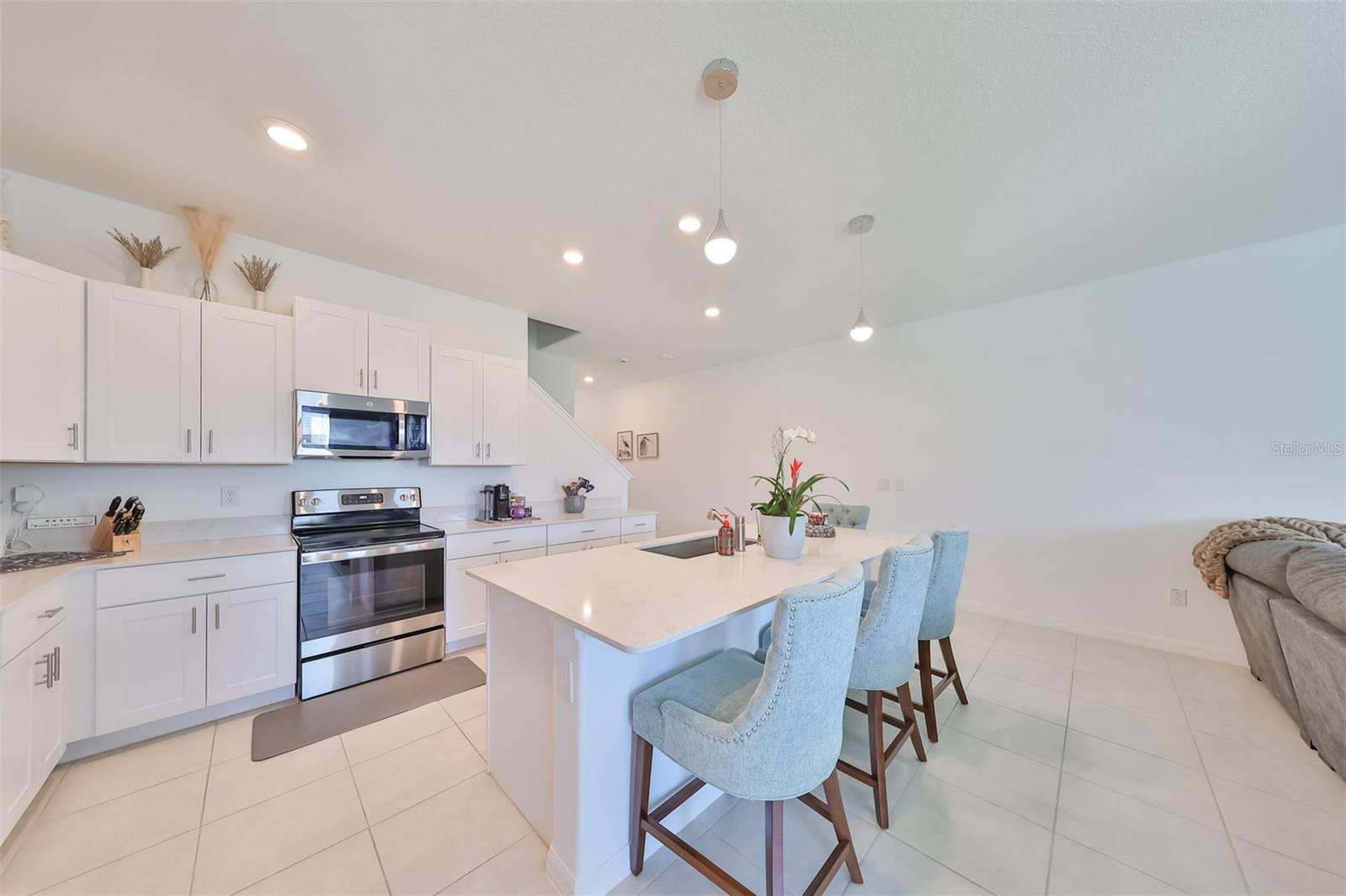 Why wait for new construction when you can have almost NEW 3 Bedroom 2.5 Bathroom plus LOFT Townhome in the gorgeous community of Mirada! The popular Marisol model has over 2300 sq ft and is very spacious with great functionally. The inviting entryway leads you into the contemporary layout which includes the kitchen, family room and dining room. This is the absolute best floor plan for entertaining and family get togethers! The kitchen is a chef's dream with shaker cabinets, quartz countertops, stainless steel appliances, a large pantry and kitchen island to gather around. The family room has lots of natural light and leads directly into the dining room with gorgeous upgraded light fixtures. The slider then leads you to the covered porch with view of the pond. Upstairs you will find all 3 bedrooms and versatile LOFT space! It has a convenient split plan with master on one side and 2 bedrooms toward the back. The master retreat has plenty of space for any oversized furniture and wait til you see the walk in closet...Wow! The master bathroom has tranquil vibes with a garden tub and double vanity.... the perfect spot to unwind after a long day. The upstairs laundry room makes doing your laundry a breeze without having to carry it up and down the stairs. <<Mirada is a master planned community and offers a 15 acre LAGOON including swimming, kayaking, paddleboarding, and a beach>> Something for everyone to love! The community also has various nature trails for walking and biking along with a playground for the kids and a dog park. It is conveniently located just minutes from I-75 and is close to new retail and restaurants.