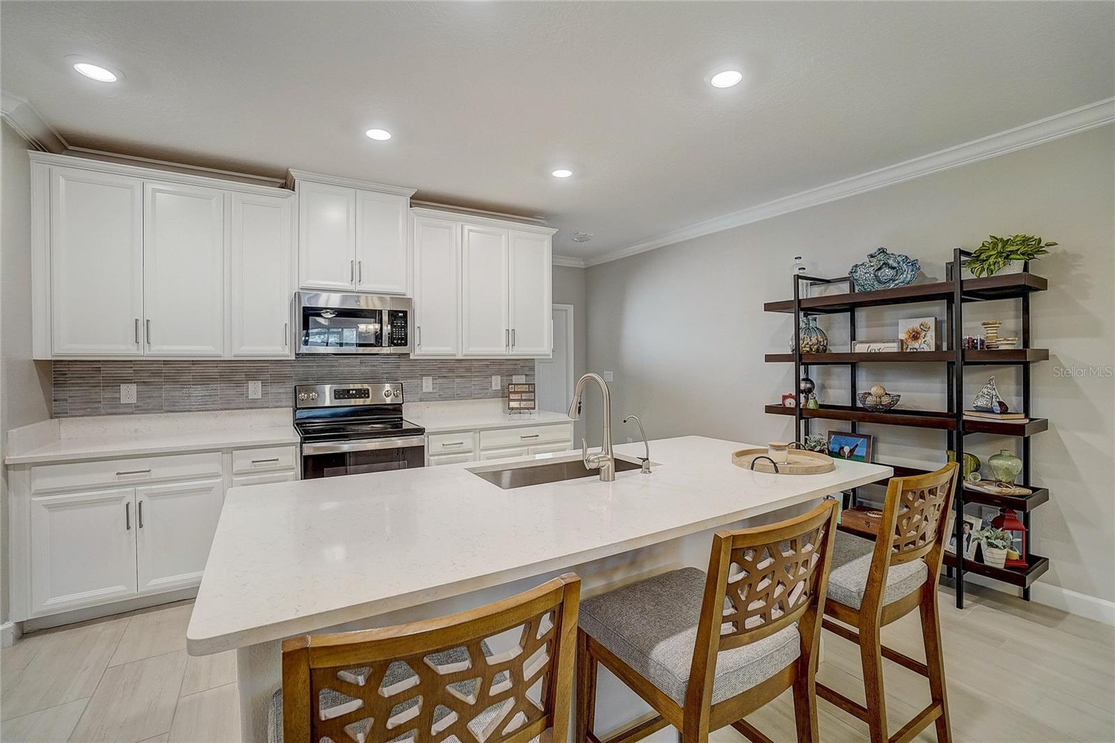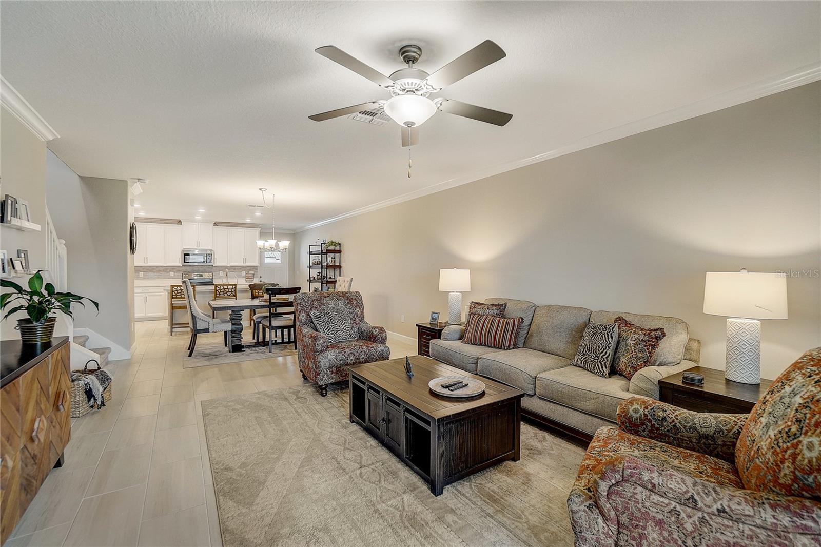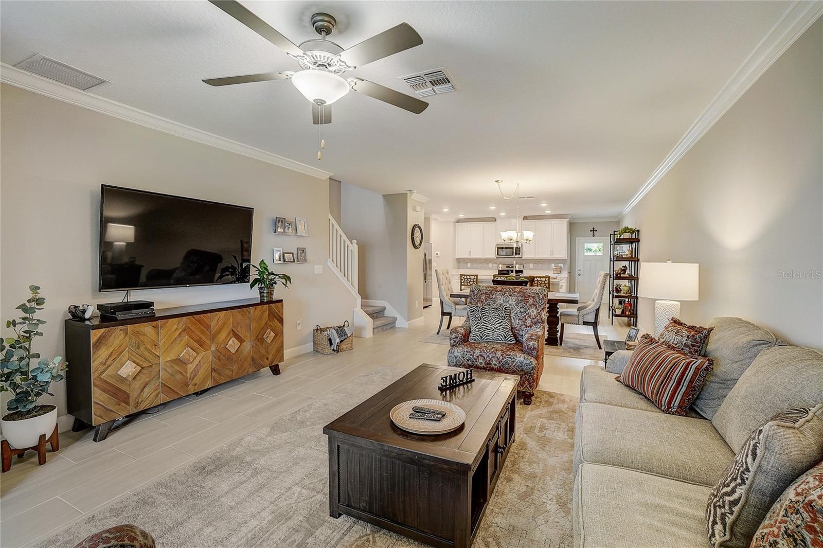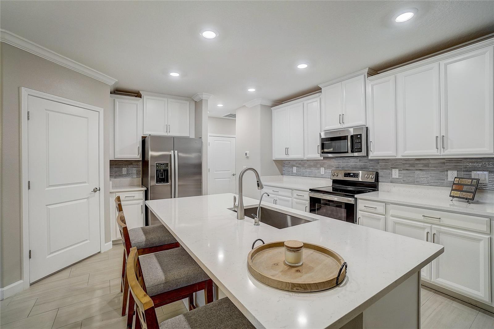 Maintenance free LUXURY TOWNHOME in the GATED 55+ Section of MEDLEY ("ONE OF TAMPA BAYS BEST ACTIVE ADULT COMMUNITIES"), is BETTER THAN NEW! Meticulously Maintained, Aurora II plan has screened lanai with TV and a private backyard to Grill out or relax! Enter onto Ceramic Tile floors on the Running bond pattern downstairs into the Spacious, OPEN floorplan with Stunning Kitchen boasting 42" Staggered white panel Cabinets with Crown, QUARTZ counters and Center Island, Stunning tile Backsplash, Stainless appliances, walk in closet pantry and is OPEN to the Great room with Newly Painted interior and CROWN MOLDING. Interior Laundry room is also off the kitchen with easy access to the washer and dryer, with white cabinets above for storage. 1/2 bath powder room with Pedestal sink is located downstairs for guests. Natural light in the Great Room as Sliding doors OPEN to extend your entertaining space onto the screened porch. Owners retreat is on the main floor with Crown molding, ceiling fan, massive closet with closet organizers and bath ensuite with dual square sinks, white cabinets, LARGE shower and Soaking tub. SPACIOUS LOFT with a view is a GREAT place for a home office, Den or Fitness area with large window views of the neighborhood. Additional secondary bedroom with closet and full bathroom is located upstairs for guests, family or friends to enjoy a private space. 2 car garage with electric opener features epoxy floors and additional storage space. This MAINTENANCE FREE home includes lawncare, basic cable, internet, in-wall pest control system and SMART thermostat plus security system. Medley is the 55+ Gated section of this Mirada community which offers exclusive Resident amenities: Clubhouse with Resort style pool, fitness center, pickleball and tennis courts, golf cart parking, onsite restaurant, cafe, sports bar and banquet facilities. Other community options offer dog parks, playground and Walking/jogging/biking trails along the lakes and conservation with stunning sunset views and wildlife interaction for a peaceful retreat! This home is in a Great Location with easy access to the 15 acre lagoon which is the largest in America! Come REST EASY in Sunny Florida and live the LAGOON LIFESTYLE with sandy beaches, swaying palm trees and glistening lagoon just minutes away! CALL TODAY!