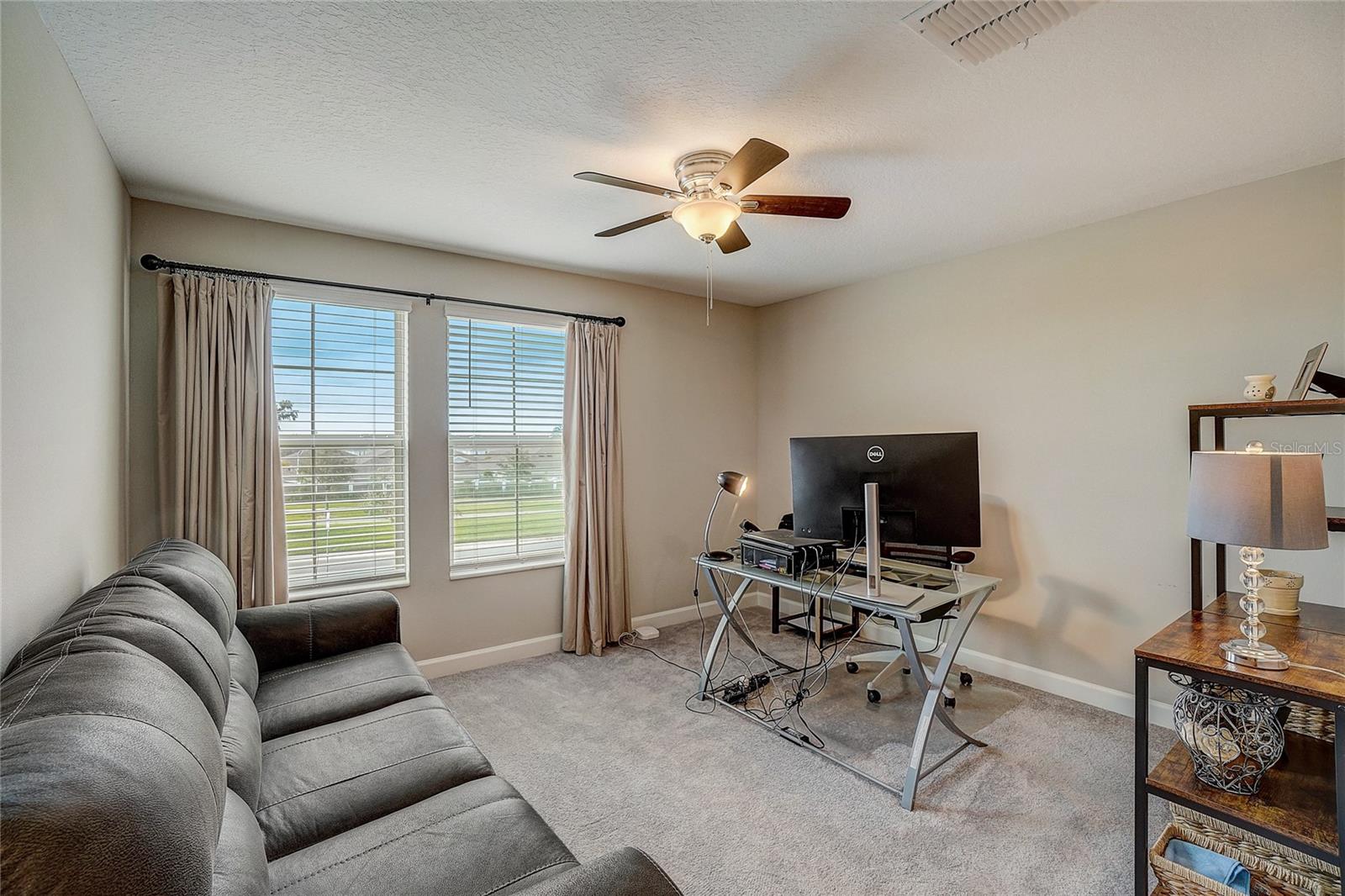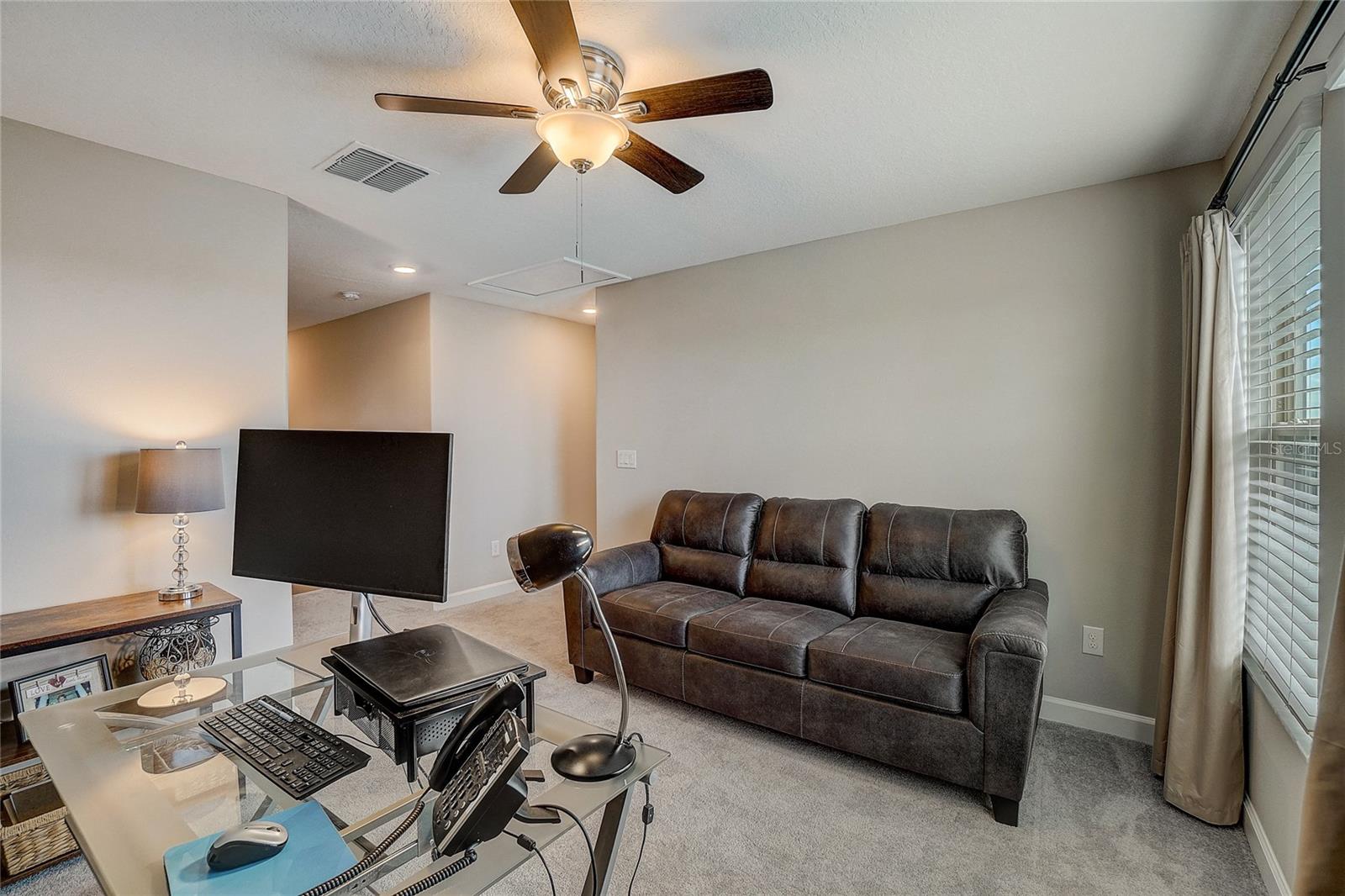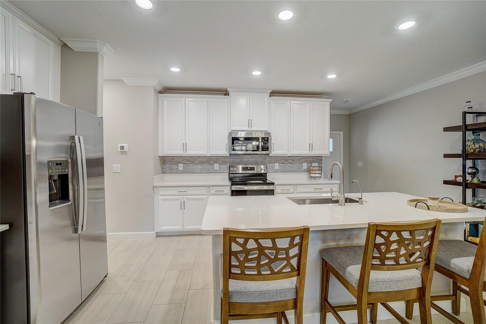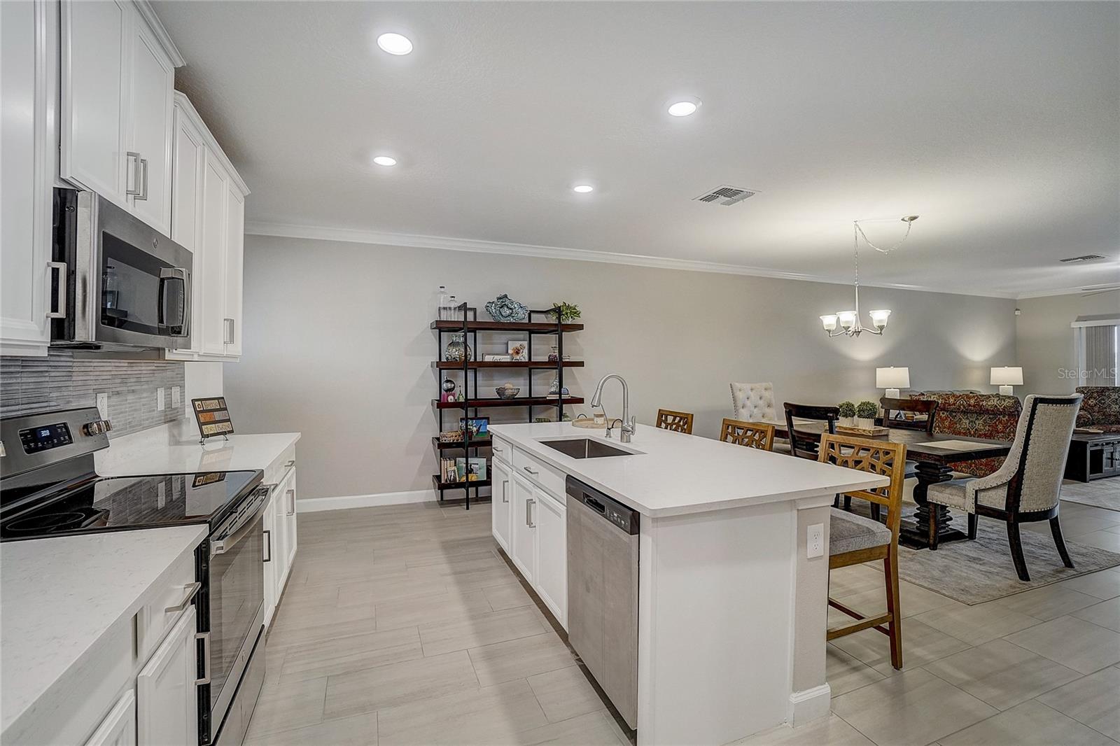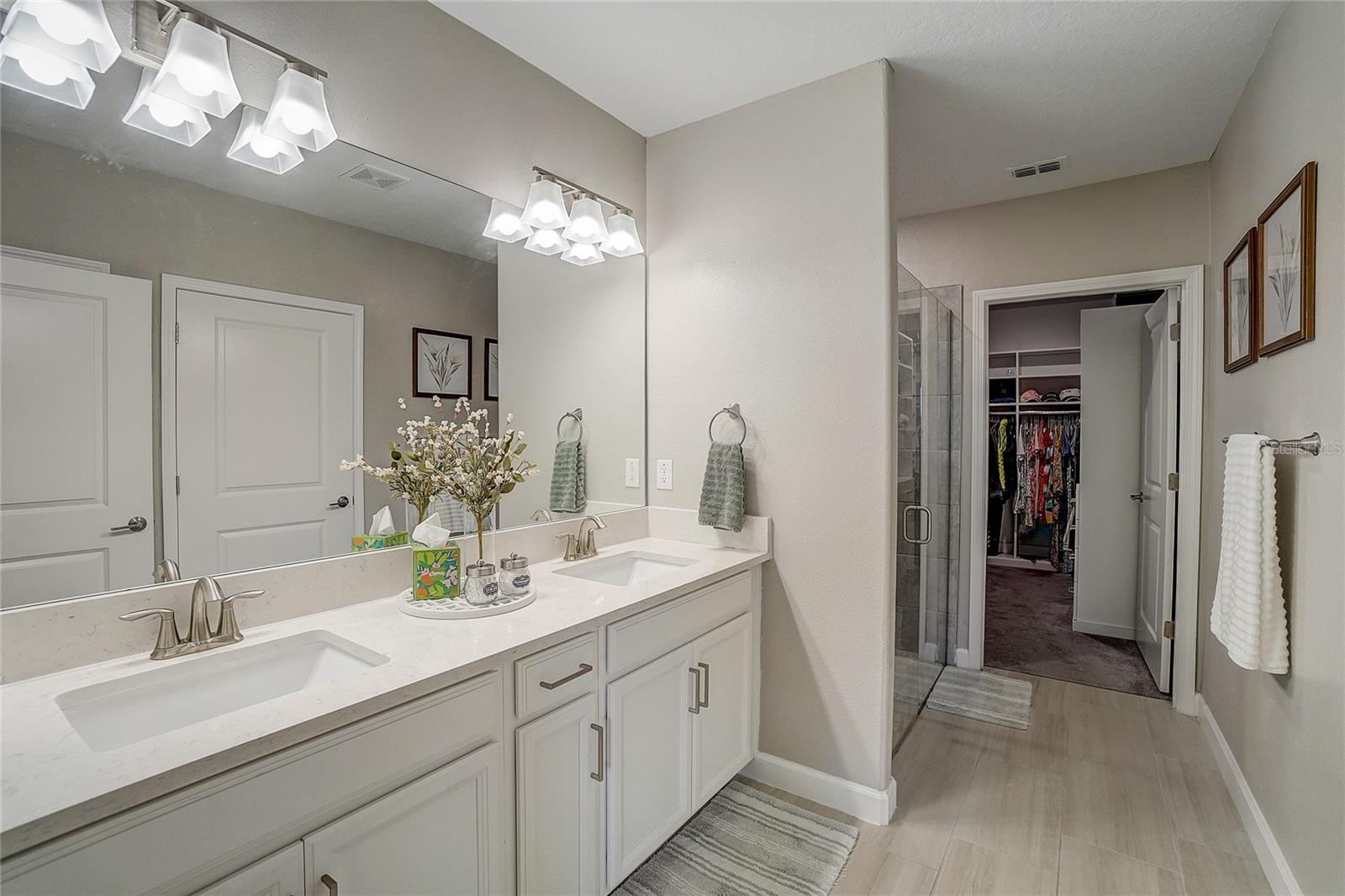 Maintenance free LUXURY TOWNHOME in the GATED 55+ Section of MEDLEY ("ONE OF TAMPA BAYS BEST ACTIVE ADULT COMMUNITIES"), is BETTER THAN NEW! Meticulously Maintained, Aurora II plan has screened lanai with TV and a private backyard to Grill out or relax! Enter onto Ceramic Tile floors on the Running bond pattern downstairs into the Spacious, OPEN floorplan with Stunning Kitchen boasting 42" Staggered white panel Cabinets with Crown, QUARTZ counters and Center Island, Stunning tile Backsplash, Stainless appliances, walk in closet pantry and is OPEN to the Great room with Newly Painted interior and CROWN MOLDING. Interior Laundry room is also off the kitchen with easy access to the washer and dryer, with white cabinets above for storage. 1/2 bath powder room with Pedestal sink is located downstairs for guests. Natural light in the Great Room as Sliding doors OPEN to extend your entertaining space onto the screened porch. Owners retreat is on the main floor with Crown molding, ceiling fan, massive closet with closet organizers and bath ensuite with dual square sinks, white cabinets, LARGE shower and Soaking tub. SPACIOUS LOFT with a view is a GREAT place for a home office, Den or Fitness area with large window views of the neighborhood. Additional secondary bedroom with closet and full bathroom is located upstairs for guests, family or friends to enjoy a private space. 2 car garage with electric opener features epoxy floors and additional storage space. This MAINTENANCE FREE home includes lawncare, basic cable, internet, in-wall pest control system and SMART thermostat plus security system. Medley is the 55+ Gated section of this Mirada community which offers exclusive Resident amenities: Clubhouse with Resort style pool, fitness center, pickleball and tennis courts, golf cart parking, onsite restaurant, cafe, sports bar and banquet facilities. Other community options offer dog parks, playground and Walking/jogging/biking trails along the lakes and conservation with stunning sunset views and wildlife interaction for a peaceful retreat! This home is in a Great Location with easy access to the 15 acre lagoon which is the largest in America! Come REST EASY in Sunny Florida and live the LAGOON LIFESTYLE with sandy beaches, swaying palm trees and glistening lagoon just minutes away! CALL TODAY!