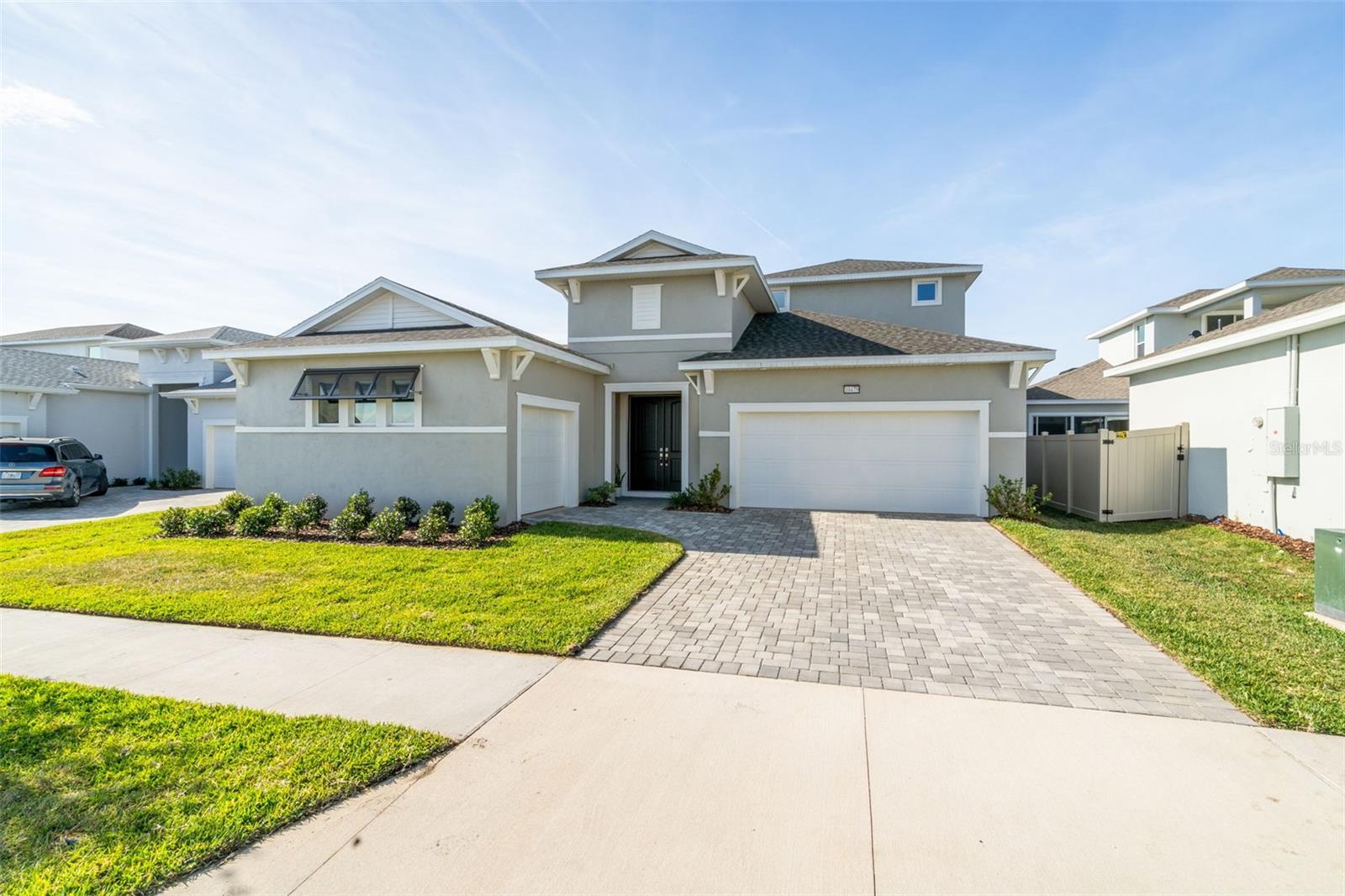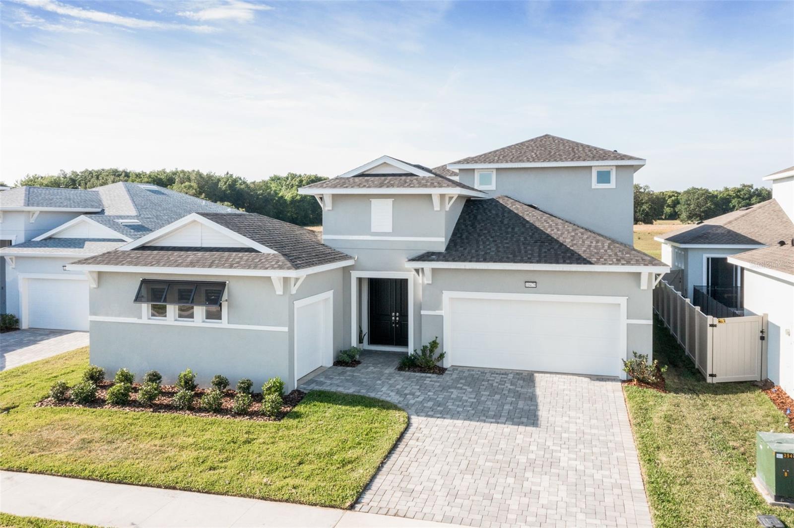 Welcome to your dream home at 10479 Torchwood Sea Wy, San Antonio, FL—a property fresh on the market, where modern amenities meet comfort and style. Built in 2024, this exquisite house spans over 3,252 square feet, featuring 5 spacious bedrooms and 3.5 well-appointed bathrooms. Step inside to discover high ceilings that enhance the airy and inviting atmosphere of the home. The main areas boast durable hard flooring, perfect for easy maintenance, while plush carpeting in the bedrooms offers a cozy retreat. The chef’s kitchen is designed to inspire culinary creativity with top-of-the-line stainless steel appliances, elegant quartz countertops, and ample storage. Experience relaxation and entertainment on the oversized back porch, overlooking a beautifully landscaped environment with no rear neighbors. Both the driveway and back porch are completed with stylish pavers, adding an extra touch of elegance. The home is also equipped with a Tesla charger for your EV needs. For your comfort, each room is equipped with ceiling fans to keep the home cool during warm days. Located in a friendly community, residents have exclusive access to a man-made lagoon, perfect for leisurely days enjoying Florida's sunny climate. Your new home is also conveniently situated close to essential shopping centers, a variety of restaurants, and other local amenities, ensuring everything you need is just around the corner. This property provides both aesthetic appeal and functional living spaces ideal for anyone looking to merge convenience with luxury. Don’t miss the opportunity to own a piece of paradise in San Antonio—schedule your viewing today and take the first step towards your new life.