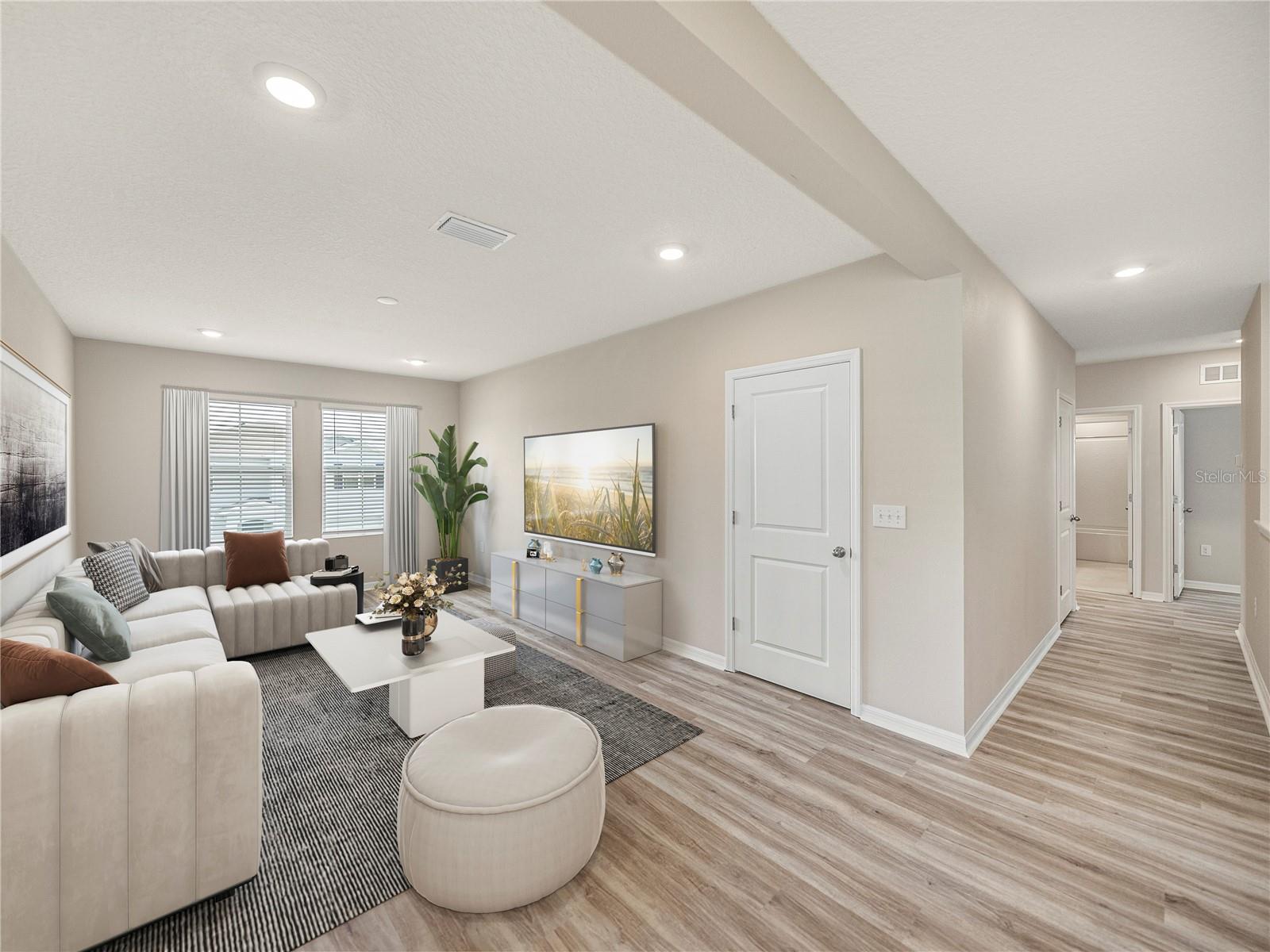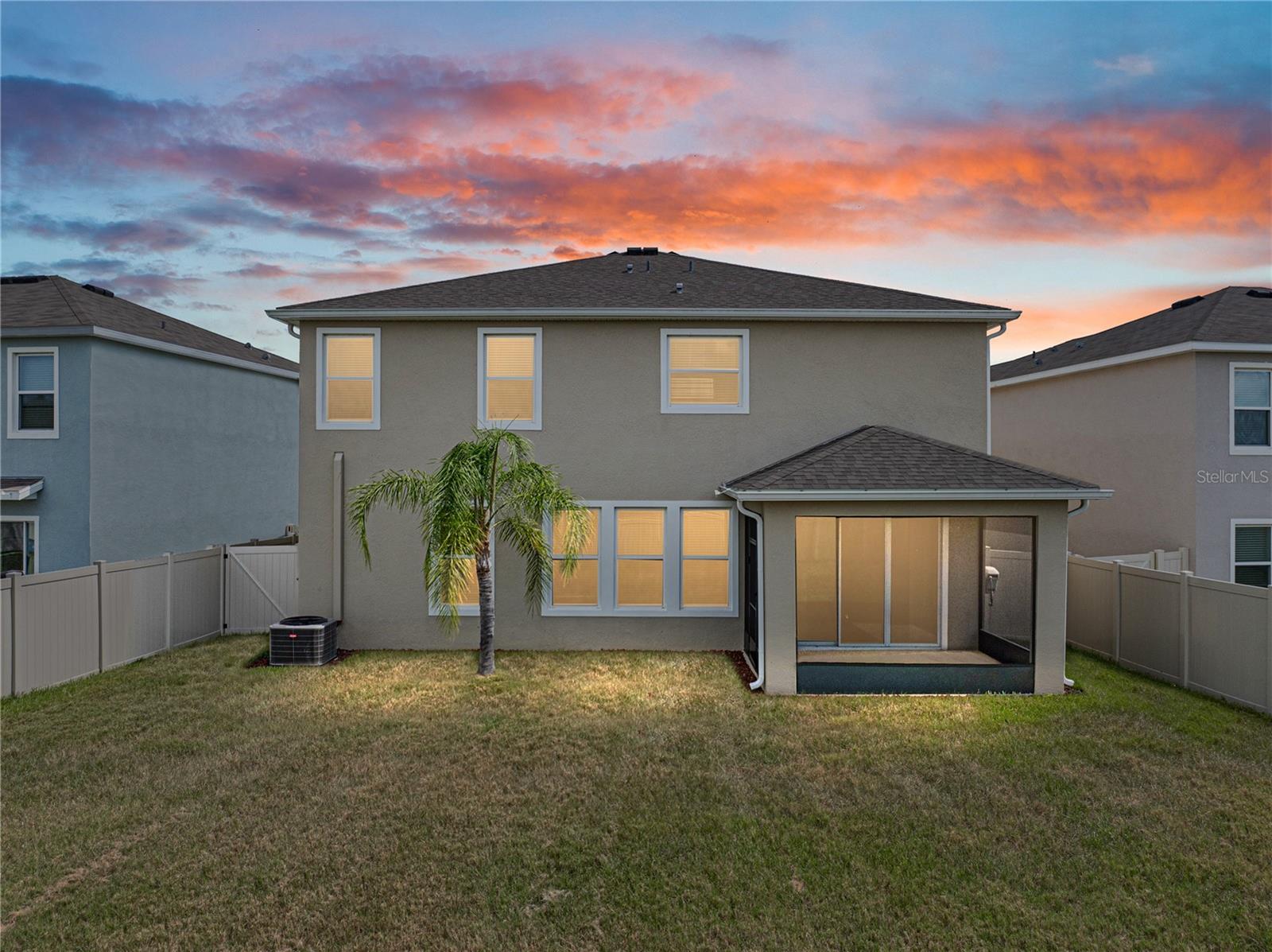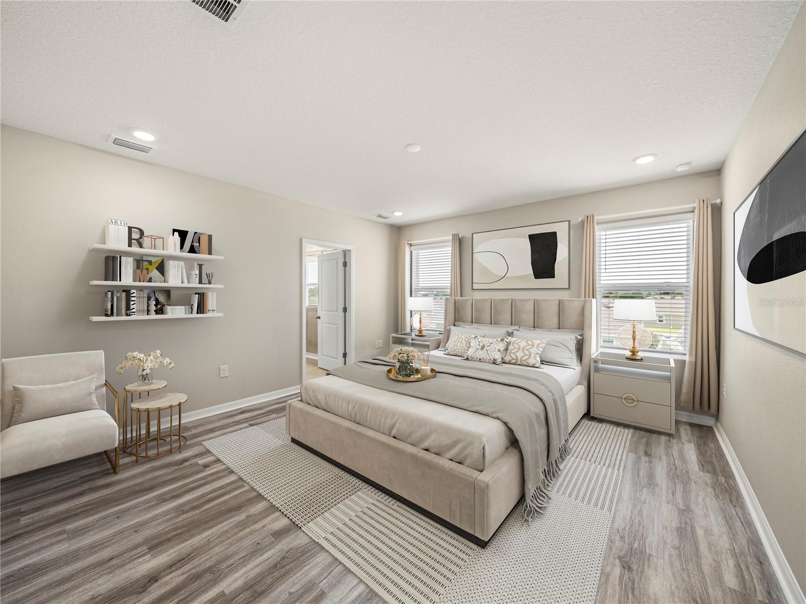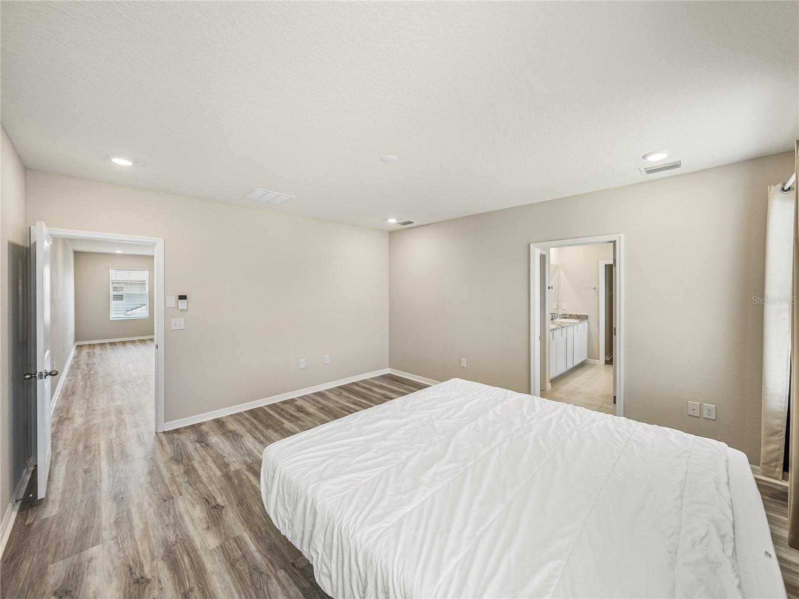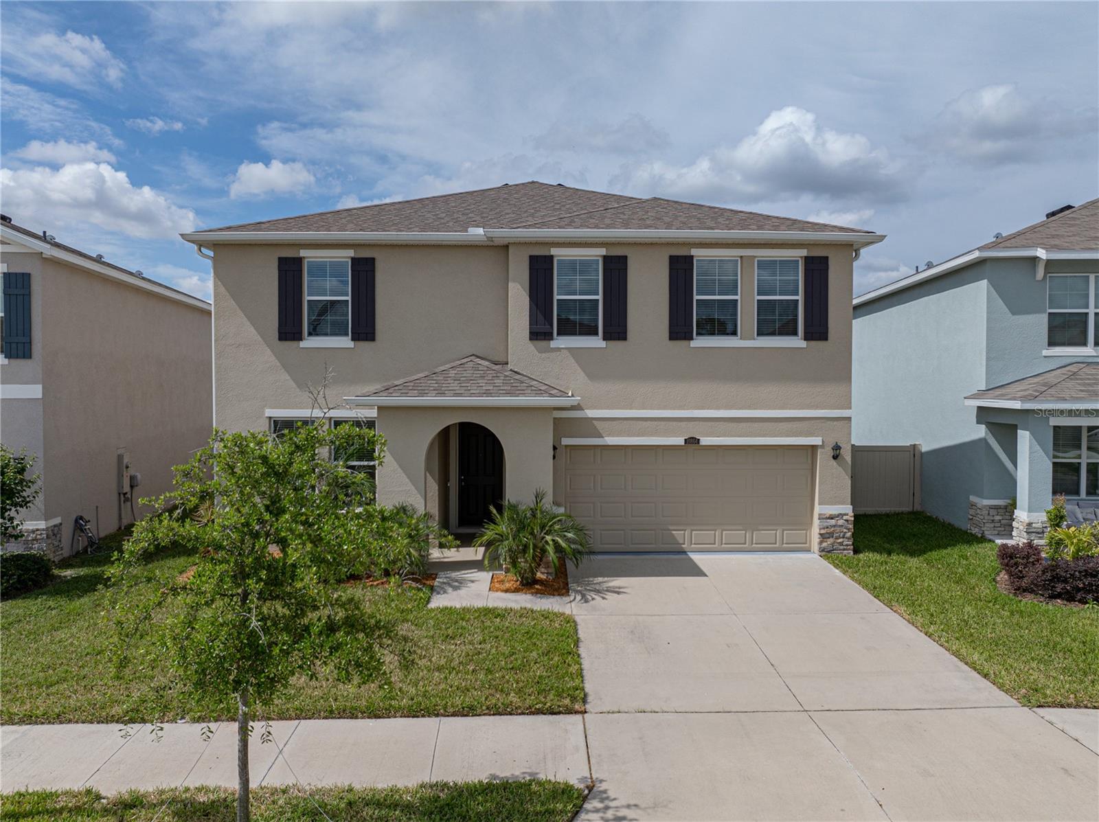 Welcome to your dream home in the prestigious Mirada community! This stunning DR Horton Hemingway preferred edition, 2-story all-concrete block home, sits on an elevated lot offering breathtaking views and proximity to the largest Crystal Lagoon in the USA. Meticulously maintained, the property is move-in ready with numerous enhancements. The first floor features a guest bedroom and full bath, spacious living and dining areas perfect for entertaining, and a gourmet kitchen with 42-inch cabinets, granite countertops, and stainless steel appliances. Enjoy outdoor relaxation on the fully screened lanai, while a versatile flex room can serve as a home office, gym, or pet room. The 2-car garage includes epoxy floors, metal rack shelves, and a chain drive garage door opener. Upstairs, the master suite overlooks a south-facing backyard with lush grass, stunning sunsets, and oak trees. The second floor includes four bedrooms, two bathrooms, two large walk-in closets, a laundry room with a top-load washer and dryer, and a spacious playroom or loft for watching Mirada fireworks! Premium upgrades include antimicrobial luxury vinyl plank floors, ceramic tile, upgraded LED lighting, granite countertops in all bathrooms and the kitchen, and custom low-maintenance landscaping. Additional features include a 6-foot vinyl privacy fence, noise and blackout window curtains, LLumar safety film on windows and lanai doors, REME HALO air purifier, and an adjustable king-size bed in the master suite. The Mirada community offers ULTRAFi high-speed internet, nature trails, a dog park, a new Publix supermarket, and various dining options. Located just 35 minutes from downtown Tampa, with easy access to Orlando and Crystal River, the friendly HOA includes low dues covering TV and internet services. The home's all-concrete block design ensures low heating, cooling, and insurance costs. Additional owner-purchased inspections ensure quality beyond standard builder and Pasco County inspections, with reports available. The original structural warranty is still in place and transferrable. Experience luxury, convenience, and community living in this exceptional Mirada home. Schedule your private tour today!