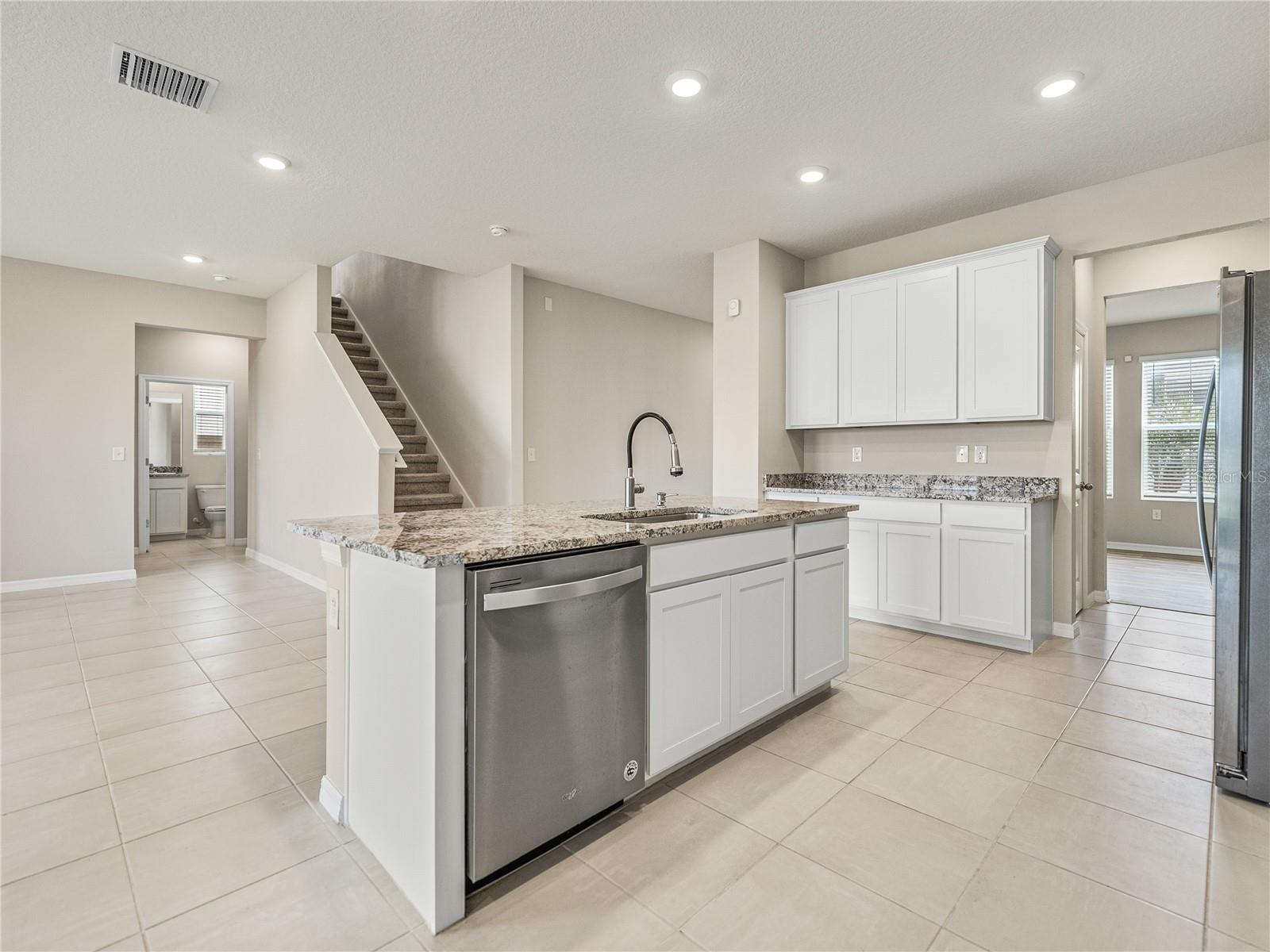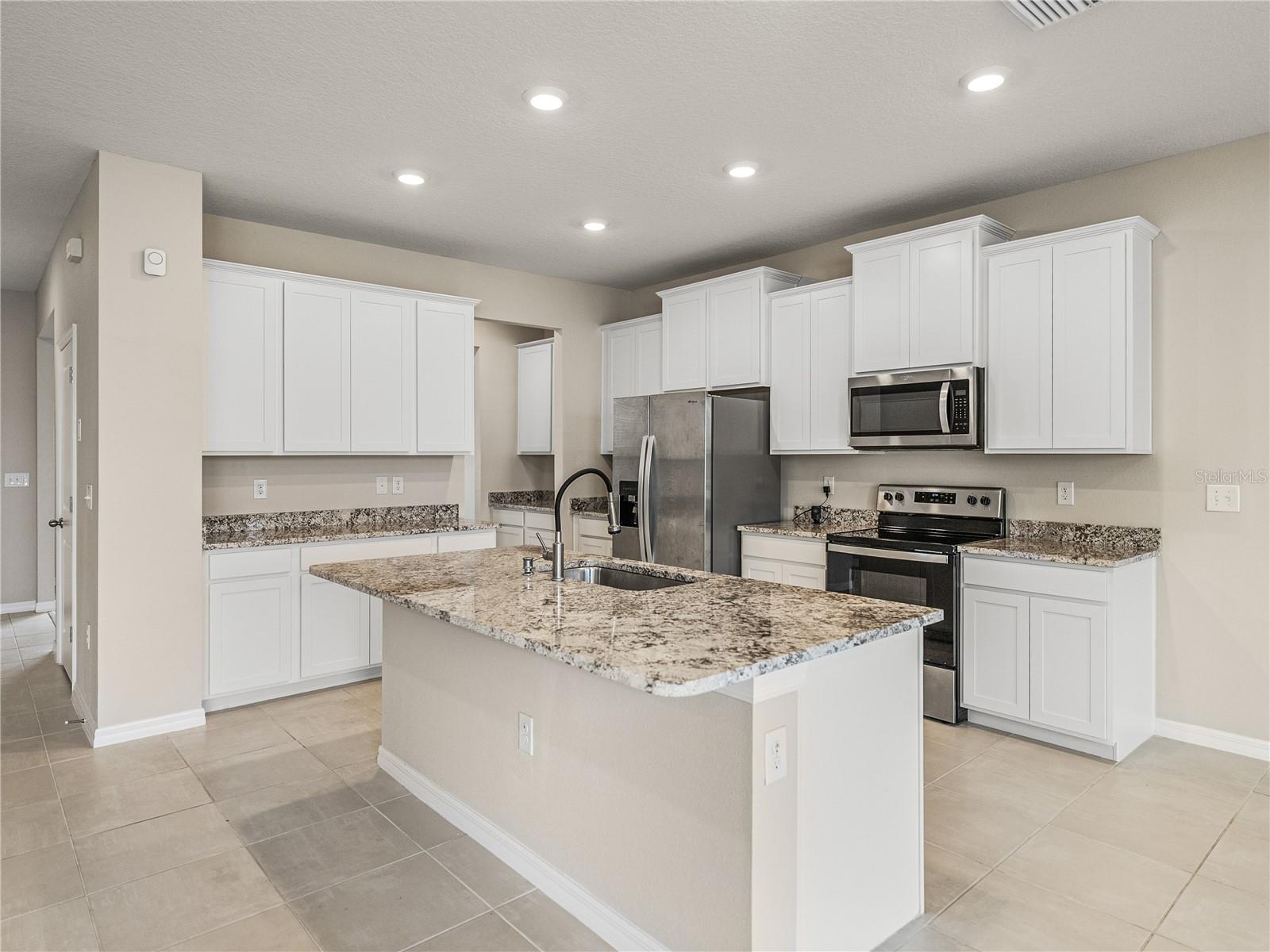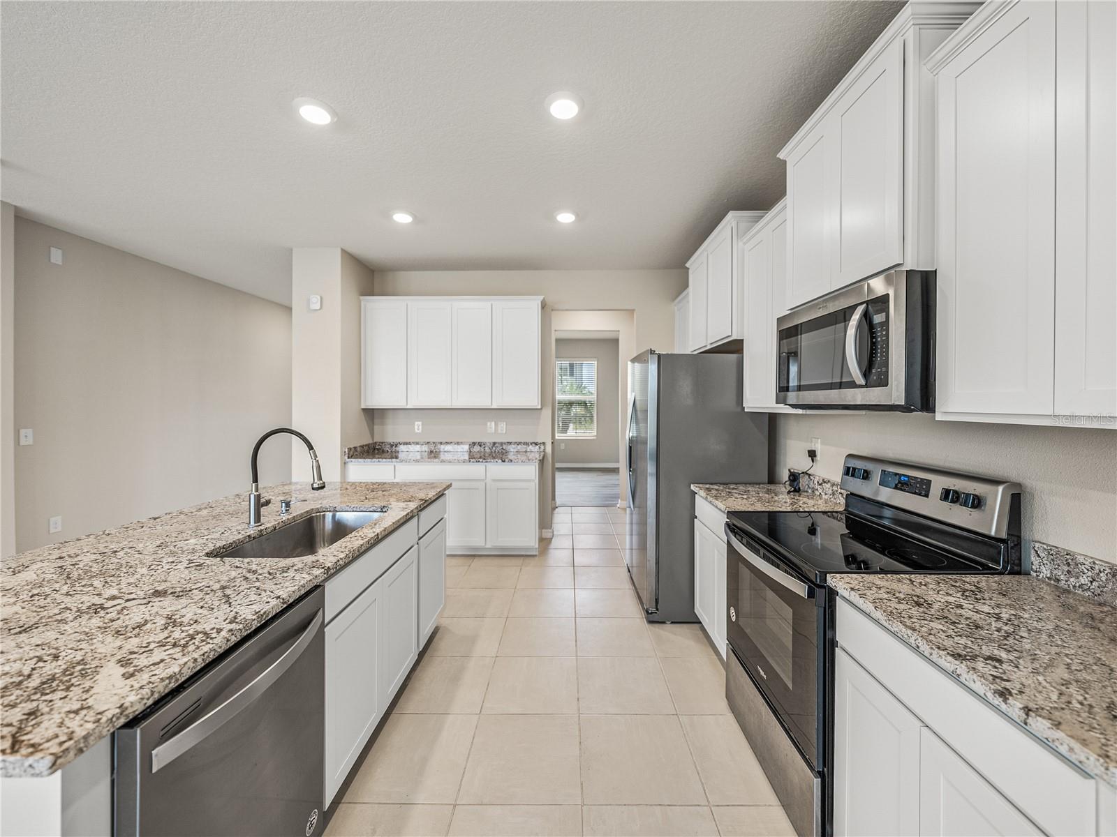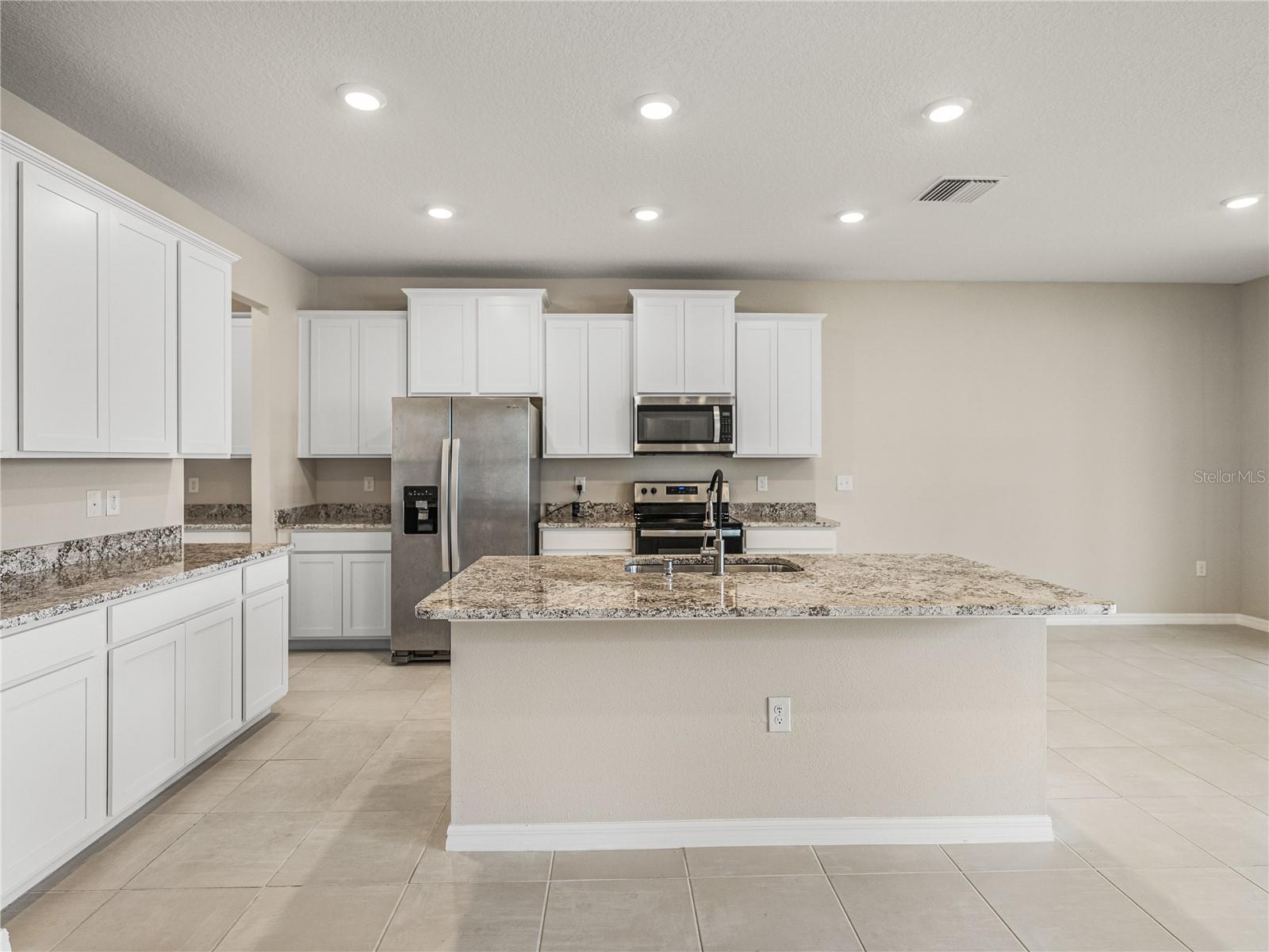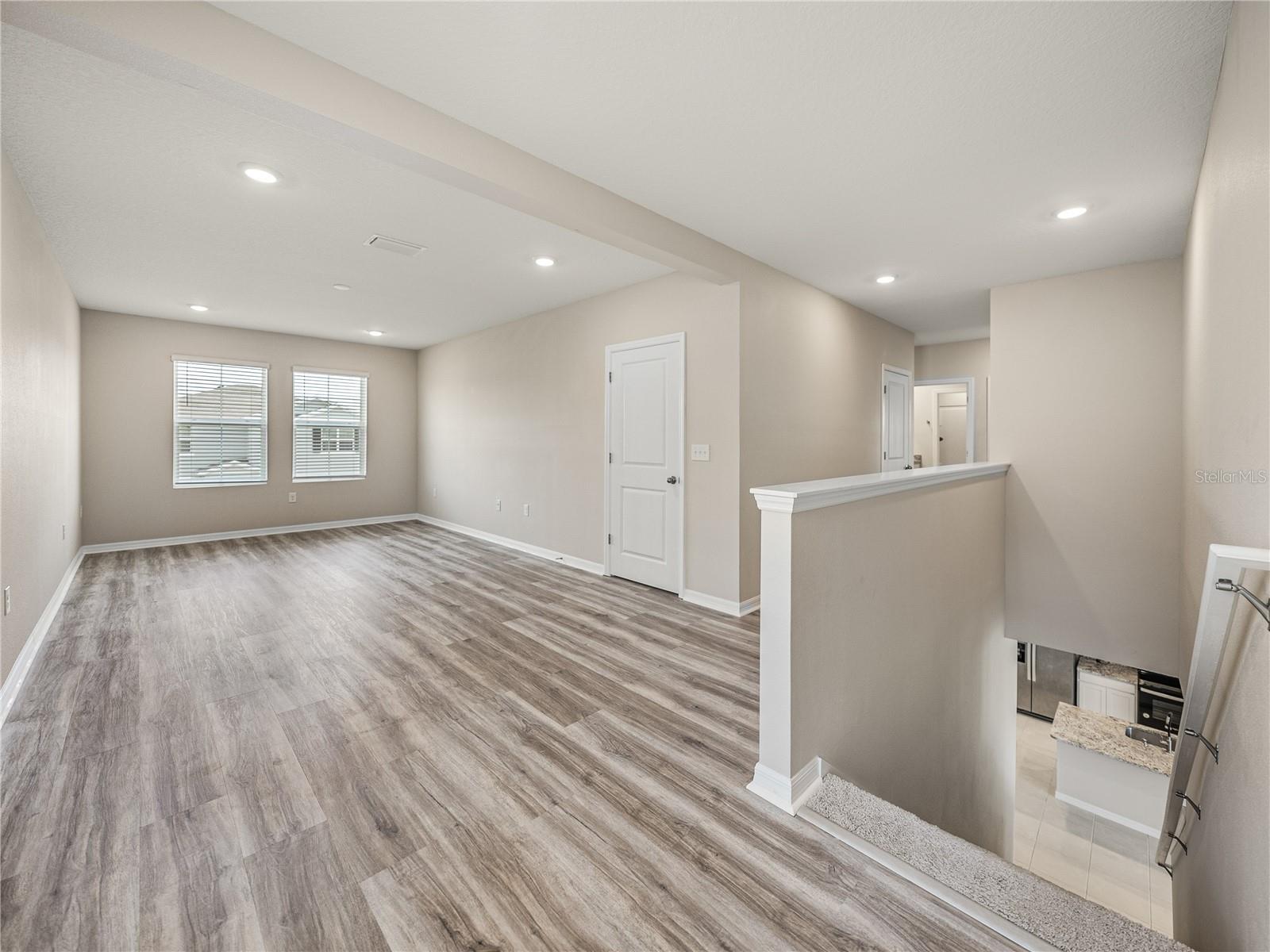 Welcome to your dream home in the prestigious Mirada community! This stunning DR Horton Hemingway preferred edition, 2-story all-concrete block home, sits on an elevated lot offering breathtaking views and proximity to the largest Crystal Lagoon in the USA. Meticulously maintained, the property is move-in ready with numerous enhancements. The first floor features a guest bedroom and full bath, spacious living and dining areas perfect for entertaining, and a gourmet kitchen with 42-inch cabinets, granite countertops, and stainless steel appliances. Enjoy outdoor relaxation on the fully screened lanai, while a versatile flex room can serve as a home office, gym, or pet room. The 2-car garage includes epoxy floors, metal rack shelves, and a chain drive garage door opener. Upstairs, the master suite overlooks a south-facing backyard with lush grass, stunning sunsets, and oak trees. The second floor includes four bedrooms, two bathrooms, two large walk-in closets, a laundry room with a top-load washer and dryer, and a spacious playroom or loft for watching Mirada fireworks! Premium upgrades include antimicrobial luxury vinyl plank floors, ceramic tile, upgraded LED lighting, granite countertops in all bathrooms and the kitchen, and custom low-maintenance landscaping. Additional features include a 6-foot vinyl privacy fence, noise and blackout window curtains, LLumar safety film on windows and lanai doors, REME HALO air purifier, and an adjustable king-size bed in the master suite. The Mirada community offers ULTRAFi high-speed internet, nature trails, a dog park, a new Publix supermarket, and various dining options. Located just 35 minutes from downtown Tampa, with easy access to Orlando and Crystal River, the friendly HOA includes low dues covering TV and internet services. The home's all-concrete block design ensures low heating, cooling, and insurance costs. Additional owner-purchased inspections ensure quality beyond standard builder and Pasco County inspections, with reports available. The original structural warranty is still in place and transferrable. Experience luxury, convenience, and community living in this exceptional Mirada home. Schedule your private tour today!