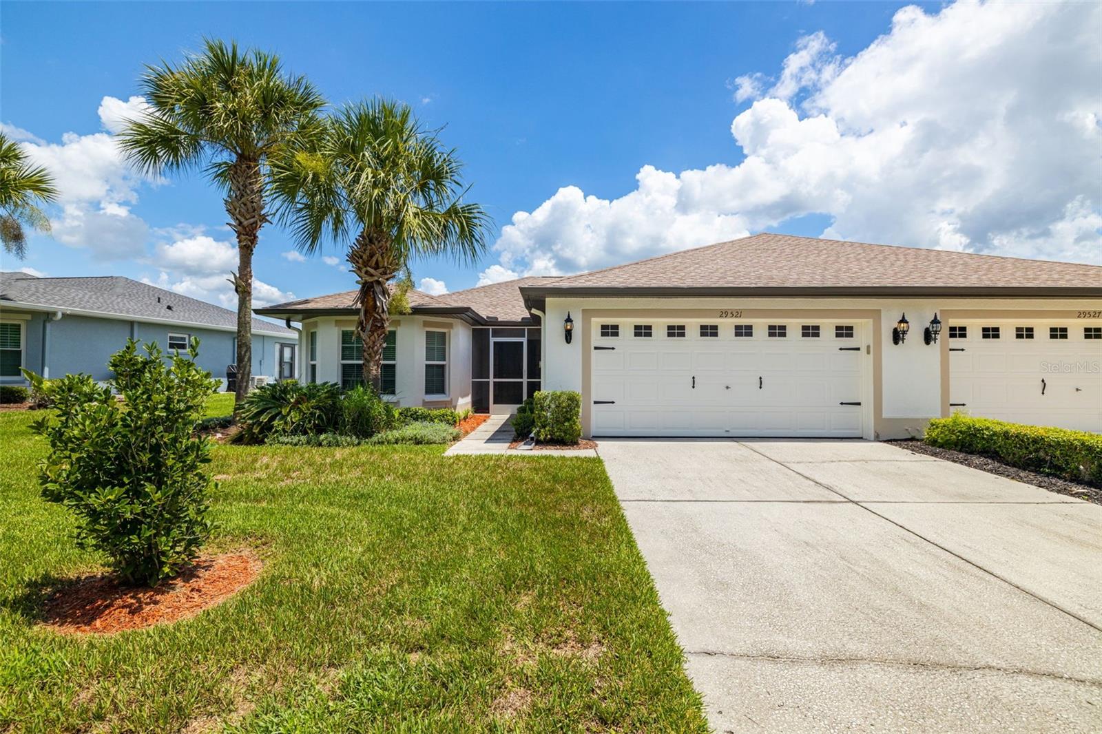 PICTURESQUE POND AND GOLF COURSE VIEW! A CHARMING WELL MAINTAINED, MAINTENANCE-FREE VILLA WITH AN OPEN LAYOUT, FORMAL DINING ROOM, 3 SPLIT BEDROOMS, 2 BATHROOMS, AND 2 CAR GARAGE! READY FOR YOUR PERSONAL TOUCH, THIS HOME OFFERS NEUTRAL COLORS, VAULTED CEILINGS, CEILING FANS, TILE & BERBER CARPET FLOORING, DECORATIVE SHELVING, AND IT'S FLOODED WITH NATURAL LIGHT! THERE ARE BEAUTIFUL FRENCH DOORS WITH BUILT-IN MINI-BLINDS LEADING TO THE OVERSIZED SCREENED LANAI AND AN OUTDOOR BBQ-READY PATIO GREAT FOR ENTERTAINING! THE LARGE KITCHEN HAS A BREAKFAST BAR, PANTRY, AND NEWER APPLIANCES! THE SPACIOUS MAIN BEDROOM HAS A HUGE WALK-IN CLOSET AND A BATHROOM ENSUITE WITH DUAL SINKS AND WALK-IN TILED SHOWER! THERE ARE TWO QUAINT GUEST BEDROOMS AND AN UPDATED GUEST BATHROOM! OTHER GREAT FEATURES INCLUDE INSULATED DUAL PANE WINDOWS, 2024 WATER SOFTENER, ROOF REPLACEMENT IN 2022, 2017 A/C & WATER HEATER, EXTERIOR HOUSE PAINTED IN 2024, AND A ONE-YEAR HOME WARRANTY! THIS MOVE-IN-READY HOME IS LOCATED IN THE SOUGHT-AFTER 55+ RESORT-STYLE, GATED, DOG-FRIENDLY COMMUNITY OF TAMPA BAY GOLF AND COUNTRY CLUB! COME AND ENJOY THE GORGEOUS CLUBHOUSE WITH AN EVENT CENTER, A RESTAURANT, BAR & GRILL WITH PATIO SEATING, 2 POOLS, TENNIS & PICKLEBALL COURTS, BILLIARDS, CARD & OTHER CLUBS, FITNESS CENTER, CLASSES, DOG PARKS, ENTERTAINMENT AND MUCH MORE! CALL NOW FOR A PRIVATE TOUR!