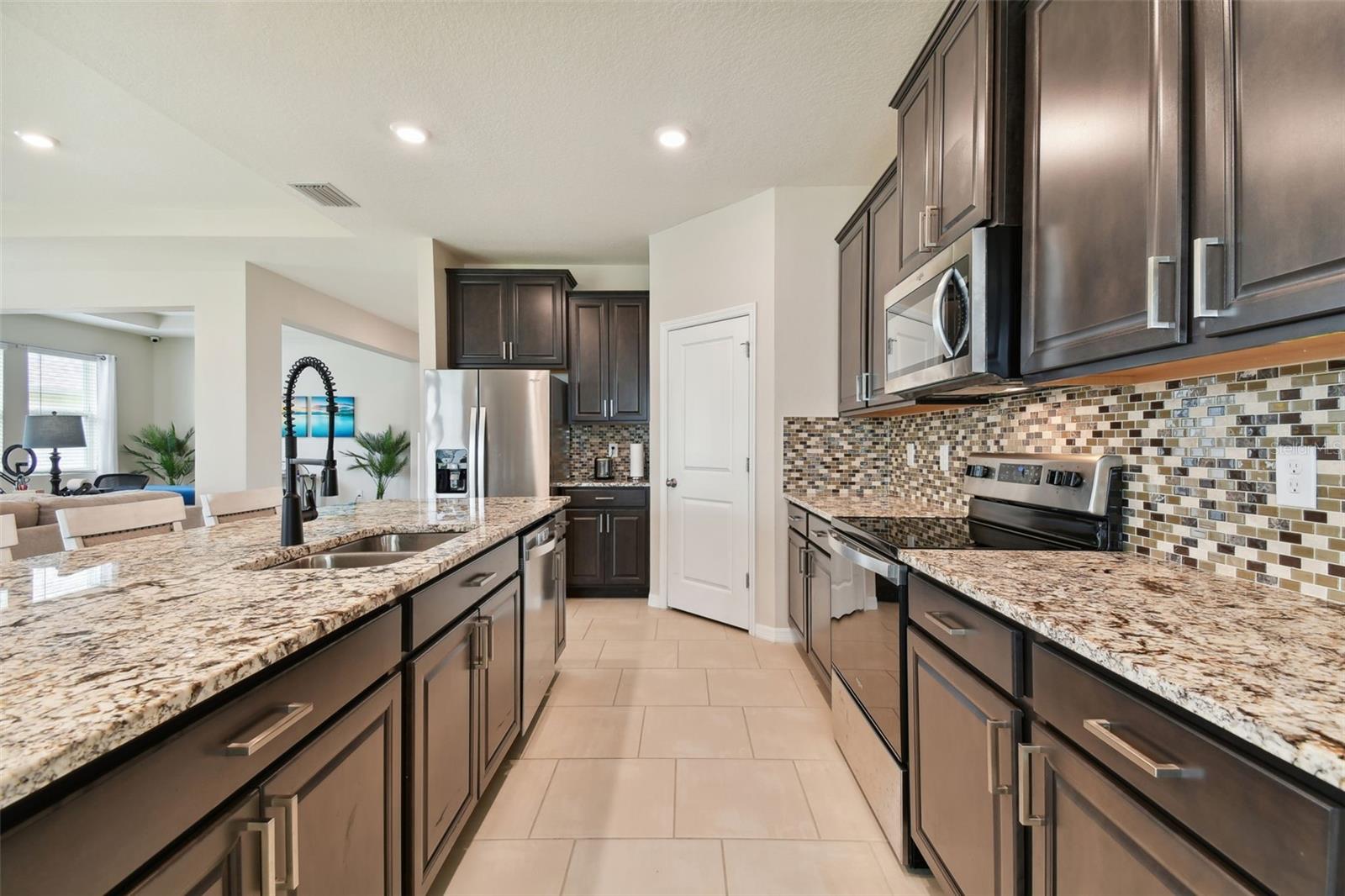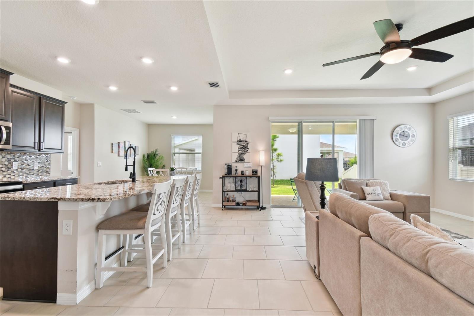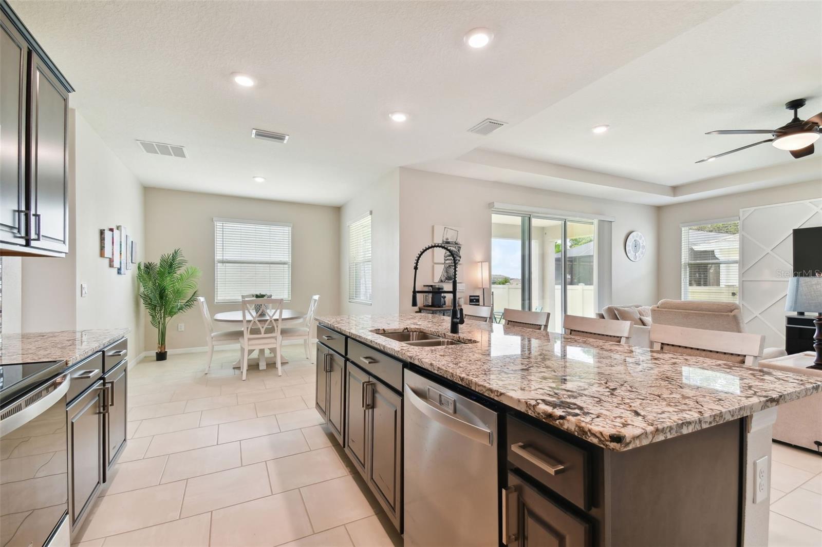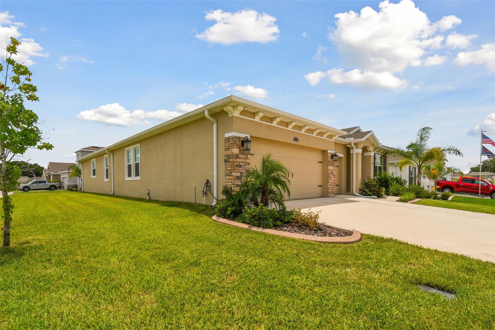 REDUCED PRICE!!! LOOKING FOR THE PERFECTLY CUSTOM UPGRADED HOME WITH INLAW SUITE - then you have found it! This home HAS ALL THE EXTRA DECOR for the most selective buyer. Almost NEW home with ALL the UPGRADES already done by the owner! This is NOT a builder home and has over $26k in added UPGRADES! Welcome to your dream home in the gorgeous Mirada subdivision of fast growing San Antonio, FL! This stunning one-story single family home is located in a brand new lagoon community, featuring sidewalks, a beautiful LAGOON, playgrounds, and pristine landscaping. Built in 2022 by DR HORTON, this CAMDEN IN-LAW SUITE model 2828 square foot home boasts all new features and amenities for modern living. Step inside and be greeted by the HIGH CEILINGS and open floor plan, perfect for entertaining guests or spending time with family. The home features 4 bedrooms, 3 full bathrooms, and a half bath, ensuring that everyone has their own space and privacy. Additionally, there is an IN-LAW SUITE that can be used as a lounge or workspace, providing even more flexibility for your lifestyle. Enjoy the convenience of complete SMART HOME capabilities, allowing you to control various aspects of your home from your phone or tablet. Relax in the LANAI area, soaking up the beautiful Florida weather while staying protected from the elements. The home features walk-in closets and BEAUTIFUL GRANITE COUNTERTOPS THROUGHOUT, providing both style and functionality. Upgraded TILE FLOORING adds to the modern aesthetic of the home. This community offers a balance of privacy and community feel. Take scenic walks and enjoy the beautiful nature ponds. The HOA community also features a CDD and a GOLF CART COMMUNITY, along with a clubhouse, fitness center, and many more amenities. This home has it all, combining luxury, comfort, and conveni ence into one perfect package! UPGRADES INCLUDE: GOURMET STYLE REFRIGERATOR, complete SECURITY SYSTEM, CUSTOM BUILT PRIMARY BEDROOM CLOSET, WALL ACCENTS (just like the models but newer), EPOXY COATED GARAGE FLOORS, COACH LIGHTS, GUTTERS, and so much more! Upgraded feature list available! SOME furnishings available! Camera security system is in exterior use at this home and the entire system conveys with the home! Welcome to your new PARADISE completely MOVE IN READY so you can spend your time at the lagoon!