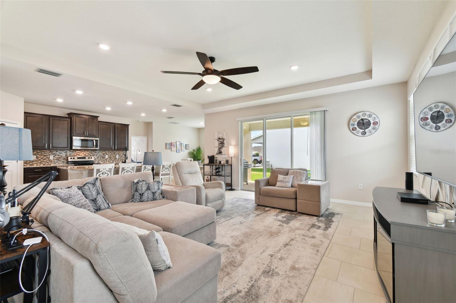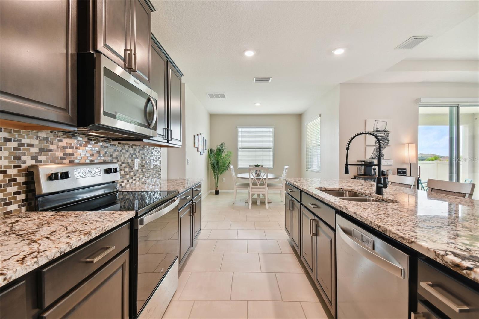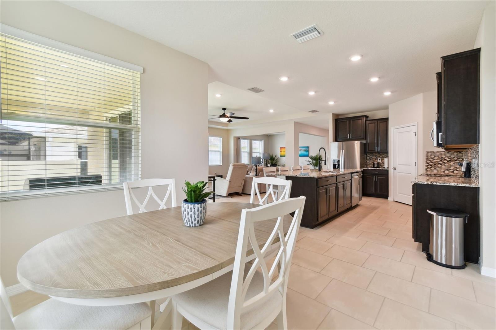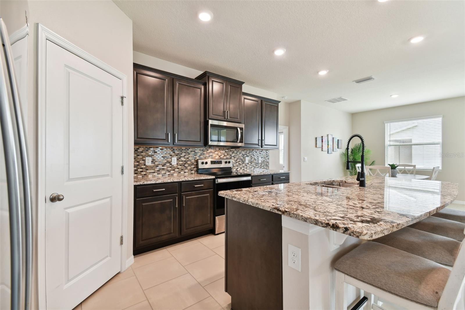 REDUCED PRICE!!! LOOKING FOR THE PERFECTLY CUSTOM UPGRADED HOME WITH INLAW SUITE - then you have found it! This home HAS ALL THE EXTRA DECOR for the most selective buyer. Almost NEW home with ALL the UPGRADES already done by the owner! This is NOT a builder home and has over $26k in added UPGRADES! Welcome to your dream home in the gorgeous Mirada subdivision of fast growing San Antonio, FL! This stunning one-story single family home is located in a brand new lagoon community, featuring sidewalks, a beautiful LAGOON, playgrounds, and pristine landscaping. Built in 2022 by DR HORTON, this CAMDEN IN-LAW SUITE model 2828 square foot home boasts all new features and amenities for modern living. Step inside and be greeted by the HIGH CEILINGS and open floor plan, perfect for entertaining guests or spending time with family. The home features 4 bedrooms, 3 full bathrooms, and a half bath, ensuring that everyone has their own space and privacy. Additionally, there is an IN-LAW SUITE that can be used as a lounge or workspace, providing even more flexibility for your lifestyle. Enjoy the convenience of complete SMART HOME capabilities, allowing you to control various aspects of your home from your phone or tablet. Relax in the LANAI area, soaking up the beautiful Florida weather while staying protected from the elements. The home features walk-in closets and BEAUTIFUL GRANITE COUNTERTOPS THROUGHOUT, providing both style and functionality. Upgraded TILE FLOORING adds to the modern aesthetic of the home. This community offers a balance of privacy and community feel. Take scenic walks and enjoy the beautiful nature ponds. The HOA community also features a CDD and a GOLF CART COMMUNITY, along with a clubhouse, fitness center, and many more amenities. This home has it all, combining luxury, comfort, and conveni ence into one perfect package! UPGRADES INCLUDE: GOURMET STYLE REFRIGERATOR, complete SECURITY SYSTEM, CUSTOM BUILT PRIMARY BEDROOM CLOSET, WALL ACCENTS (just like the models but newer), EPOXY COATED GARAGE FLOORS, COACH LIGHTS, GUTTERS, and so much more! Upgraded feature list available! SOME furnishings available! Camera security system is in exterior use at this home and the entire system conveys with the home! Welcome to your new PARADISE completely MOVE IN READY so you can spend your time at the lagoon!