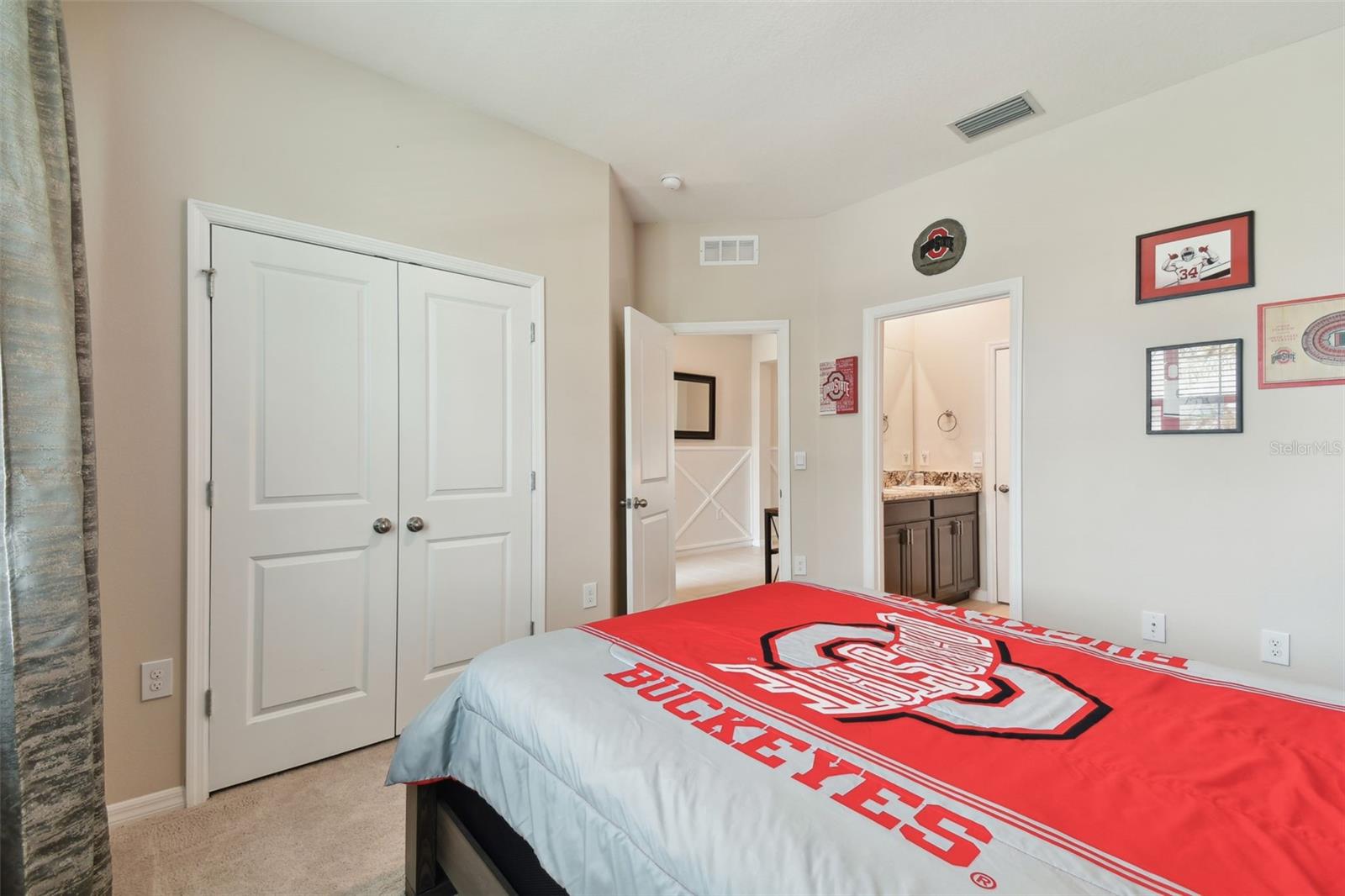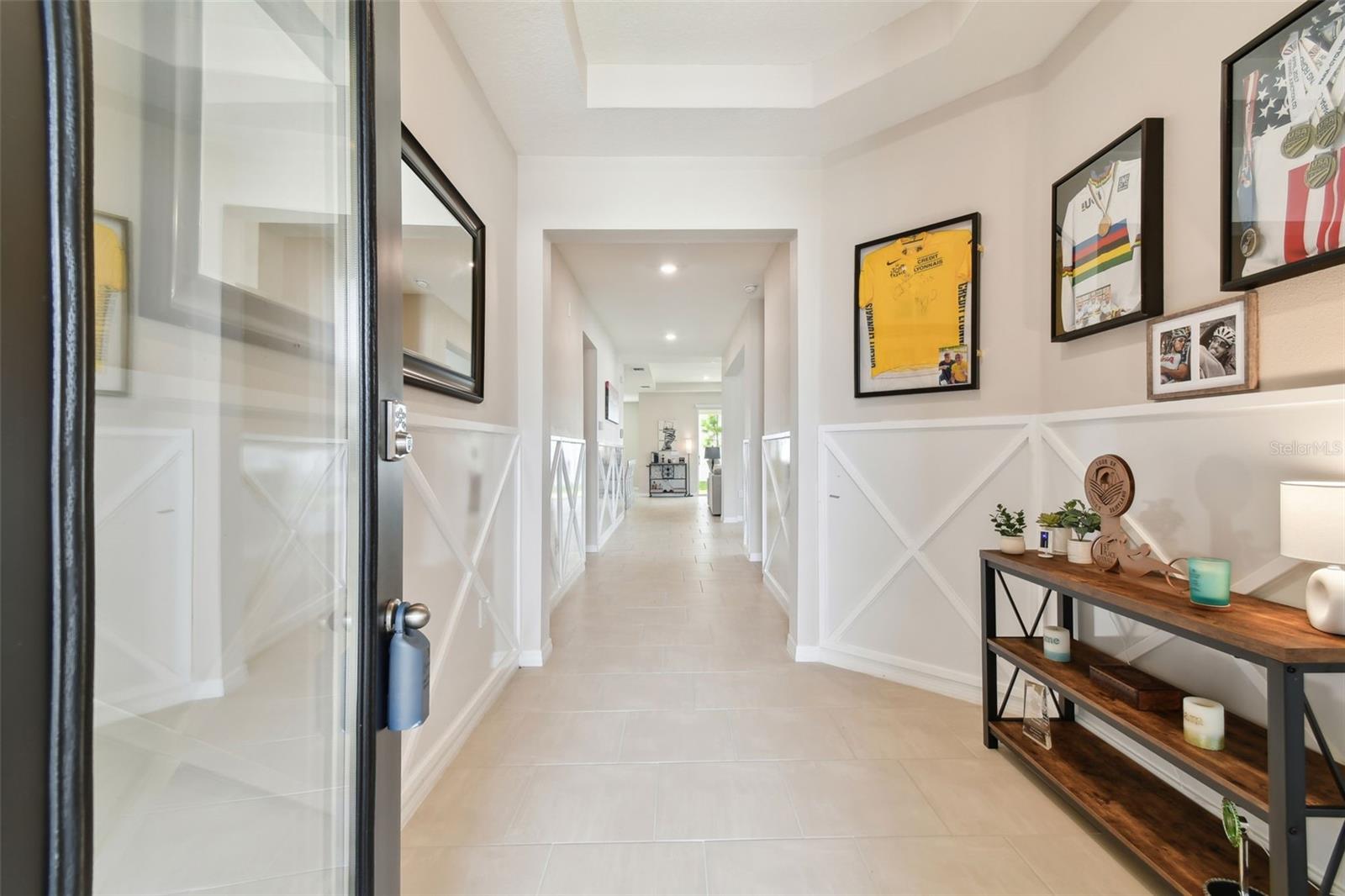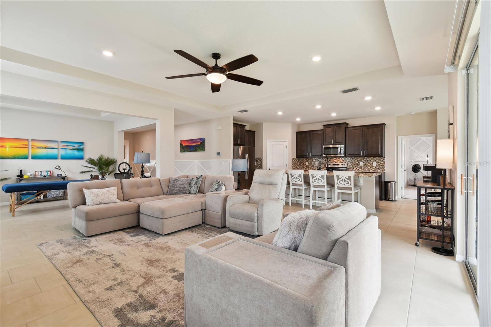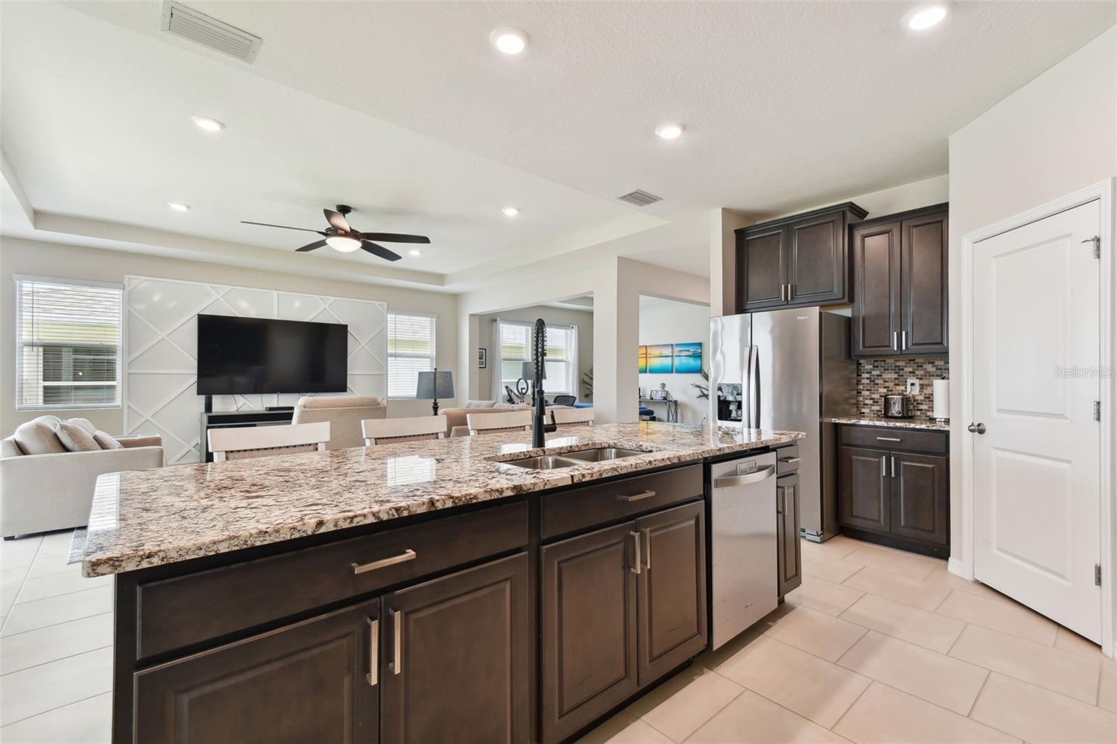 REDUCED PRICE!!! LOOKING FOR THE PERFECTLY CUSTOM UPGRADED HOME WITH INLAW SUITE - then you have found it! This home HAS ALL THE EXTRA DECOR for the most selective buyer. Almost NEW home with ALL the UPGRADES already done by the owner! This is NOT a builder home and has over $26k in added UPGRADES! Welcome to your dream home in the gorgeous Mirada subdivision of fast growing San Antonio, FL! This stunning one-story single family home is located in a brand new lagoon community, featuring sidewalks, a beautiful LAGOON, playgrounds, and pristine landscaping. Built in 2022 by DR HORTON, this CAMDEN IN-LAW SUITE model 2828 square foot home boasts all new features and amenities for modern living. Step inside and be greeted by the HIGH CEILINGS and open floor plan, perfect for entertaining guests or spending time with family. The home features 4 bedrooms, 3 full bathrooms, and a half bath, ensuring that everyone has their own space and privacy. Additionally, there is an IN-LAW SUITE that can be used as a lounge or workspace, providing even more flexibility for your lifestyle. Enjoy the convenience of complete SMART HOME capabilities, allowing you to control various aspects of your home from your phone or tablet. Relax in the LANAI area, soaking up the beautiful Florida weather while staying protected from the elements. The home features walk-in closets and BEAUTIFUL GRANITE COUNTERTOPS THROUGHOUT, providing both style and functionality. Upgraded TILE FLOORING adds to the modern aesthetic of the home. This community offers a balance of privacy and community feel. Take scenic walks and enjoy the beautiful nature ponds. The HOA community also features a CDD and a GOLF CART COMMUNITY, along with a clubhouse, fitness center, and many more amenities. This home has it all, combining luxury, comfort, and conveni ence into one perfect package! UPGRADES INCLUDE: GOURMET STYLE REFRIGERATOR, complete SECURITY SYSTEM, CUSTOM BUILT PRIMARY BEDROOM CLOSET, WALL ACCENTS (just like the models but newer), EPOXY COATED GARAGE FLOORS, COACH LIGHTS, GUTTERS, and so much more! Upgraded feature list available! SOME furnishings available! Camera security system is in exterior use at this home and the entire system conveys with the home! Welcome to your new PARADISE completely MOVE IN READY so you can spend your time at the lagoon!