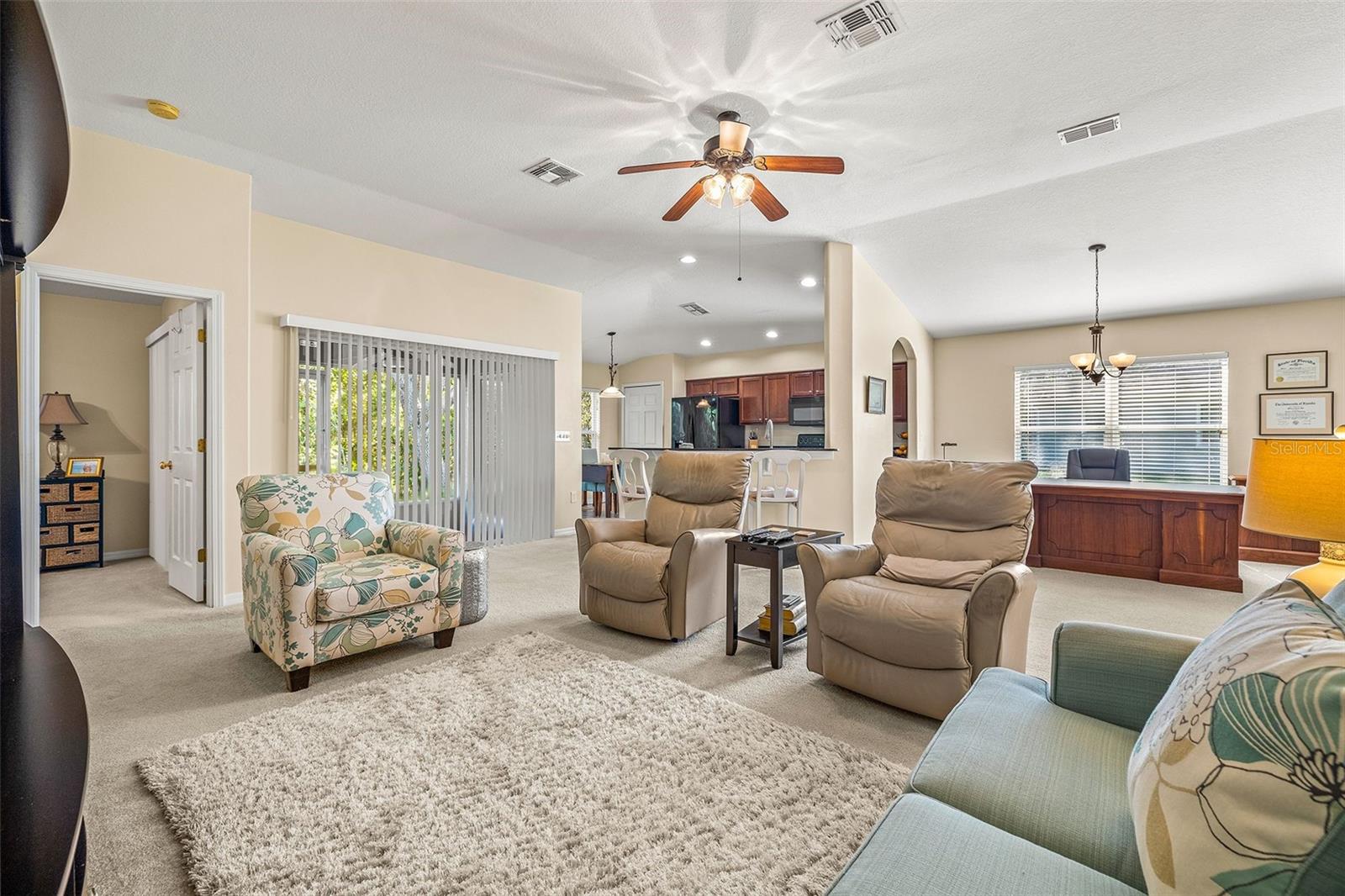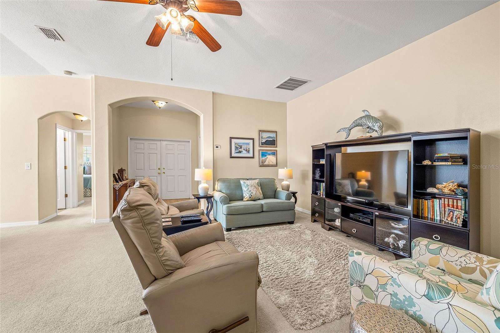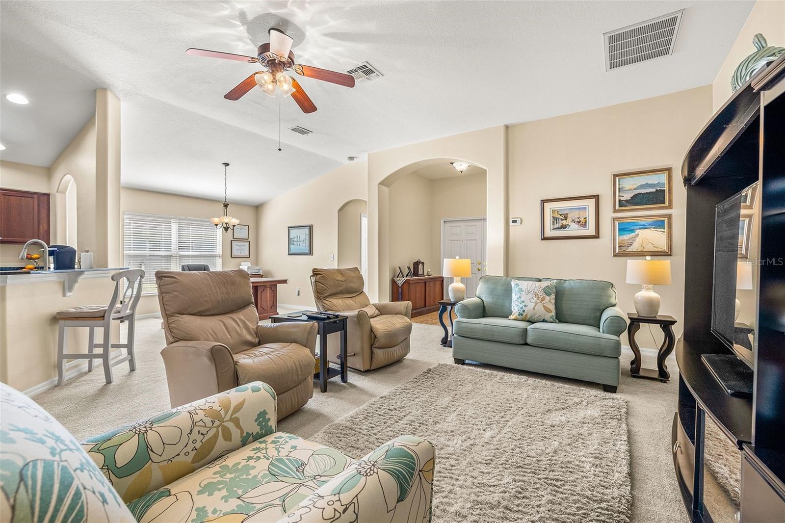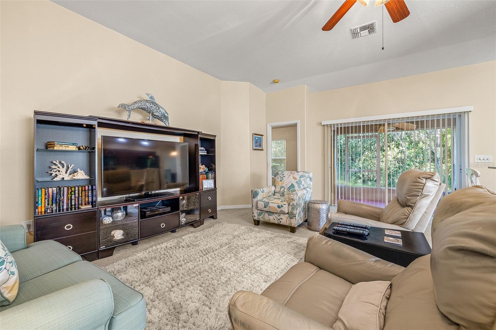 WELL-MAINTAINED, MOVE-IN-READY, MAINTENANCE-FREE VILLA LOCATED IN THE PREMIER 55+ ACTIVE RESORT-STYLE GATED COMMUNITY OF TAMPA BAY GOLF AND COUNTRY CLUB! A PRIVATE CONSERVATION LOT, WITH GREAT CURB APPEAL, MATURE LANDSCAPING, GUTTERS, AND A WELCOMING DOUBLE-DOOR ENTRY WITH A BRICK DESIGN TILED PORCH! A SPACIOUS FOYER WITH AN ARCHED ENTRY INTO A SPLIT, GREAT ROOM FLOOR PLAN, A SEPARATE FORMAL DINING ROOM NOW USED AS A FLEX SPACE! THE OPEN FLOOR PLAN IS GREAT FOR ENTERTAINING, THERE'S VAULTED CEILINGS, CEILING FANS, AND CONVENIENT EXIT SLIDING DOORS LEADING TO YOUR PRIVATE SCREENED LANAI WITH A CONSERVATION VIEW, A NATURE LOVER'S SANCTUARY! THE EAT-IN KITCHEN HAS A COZY BREAKFAST NOOK, AND BREAKFAST BAR, A LARGE PANTRY, SAME-COLOR APPLIANCES, GRANITE COUNTERTOPS, AND BEAUTIFUL CHERRY WOOD CABINETS WITH NICKEL HARDWARE! THE LARGE MAIN BEDROOM & ENSUITE BATHROOM INCLUDE EXIT SLIDING DOORS TO YOUR PRIVATE LANAI, DUAL CLOSETS ONE IS A WALK-IN, DUAL SINKS, A PRIVATE RESTROOM, A NICE TILED SHOWER, PLUS A LARGE LINEN CLOSET FOR STORAGE! THERE'S A QUAINT 2ND BEDROOM WITH BAY WINDOWS, AND A GUEST BATHROOM PERFECT FOR YOUR FRIENDS OR FAMILY! THE INSIDE LAUNDRY ROOM COMES WITH A WASHER, DRYER & UTILITY SINK! TAMPA BAY GOLF AND COUNTRY CLUB OFFERS A WONDERFUL CLUBHOUSE, GOLF A PRO SHOP, A RESTAURANT, BAR & GRILL WITH OUTDOOR DINING, 2 POOLS, 2 BARK PARKS, A FITNESS CENTER, TENNIS/PICKLEBALL, CLUBS, ENTERTAINMENT, & MORE! WE'RE CONVENIENTLY LOCATED NEAR SHOPPING, MEDICAL FACILITIES, POPULAR RESTAURANTS, 45 - 90 MINUTES TO DOWNTOWN TAMPA, ORLANDO & CLEARWATER BEACH!