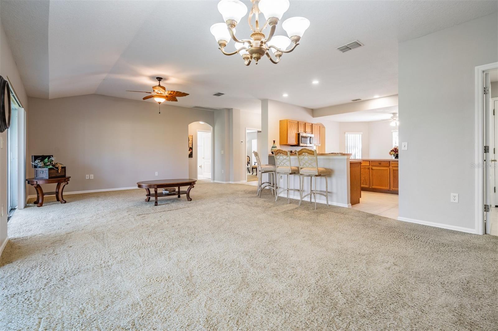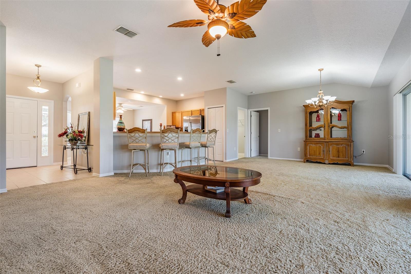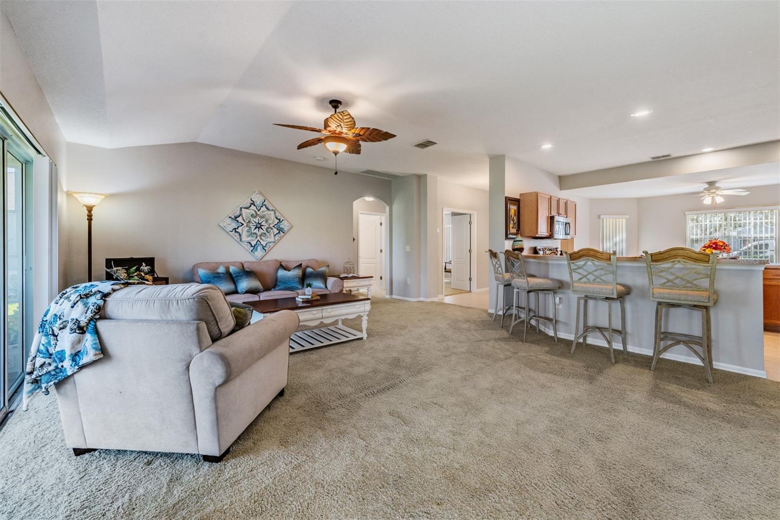 Tampa Bay Golf & Country Club IS the place to BE! Welcome home to this 1729 sq ft Light, Bright, OPEN FLOORPLAN, boasting 3-bedrooms and 2-bathrooms, located on a private conservation lot within this highly sought-after 55+ community. The home was recently upgraded in April 2024, featuring a NEW ROOF, NEW central HVAC system, NEW stainless steel appliances, fresh interior paint, and NEW vinyl windows in the Florida room. This home offers a stunning view of the surrounding peaceful marsh and prairie, visible through two sets of sliding glass doors that lead to the Florida Room from the living space. Screened front entry welcomes you into the Foyer with kitchen to the left, Flex space to the Right and a WIDE OPEN Living/Dining area to Entertain guests! The spacious owner's suite is designed for comfort and convenience, with a double window overlooking the conservation, sliding glass doors to the enclosed back porch which is large enough for a sitting area. Bath ensuite, includes two large closets, has a garden tub, plus a separate walk-in shower and dual sinks with a vanity. On the opposite side of the home, you'll find the guest bedroom and a versatile den with double doors that makes a great office, formal dining room, living room or can serve as an additional bedroom. Tampa Bay’s premier active 55+ community, offering a variety of recreational options. Enjoy two Golf courses...the 18-hole Championship course and a 9-hole executive course, two swimming pools, with the large resort-style pool featuring fountains and heated to 80 degrees. Engage in activities such as pickleball, tennis, bocce ball, shuffleboard, cornhole, and card games. The newly upgraded activity center includes a state-of-the-art fitness facility, a billiards room, craft/hobby room, library with computers and a card room. The community has no CDD fees and offers affordable HOA dues that cover lawn care, cable service with 2 boxes and high speed internet. Plus, with its proximity to the clubhouse and restaurant, you can easily enjoy lunch or dinner without leaving the neighborhood! Banquet facilities are available with a stage and dance floor for inhouse events, onsite entertainment, dinner shows and Sunday Brunch! Located north of Tampa close to major highways for easy access to shopping, malls, medical facilities, airports and the Beaches! CALL TODAY!