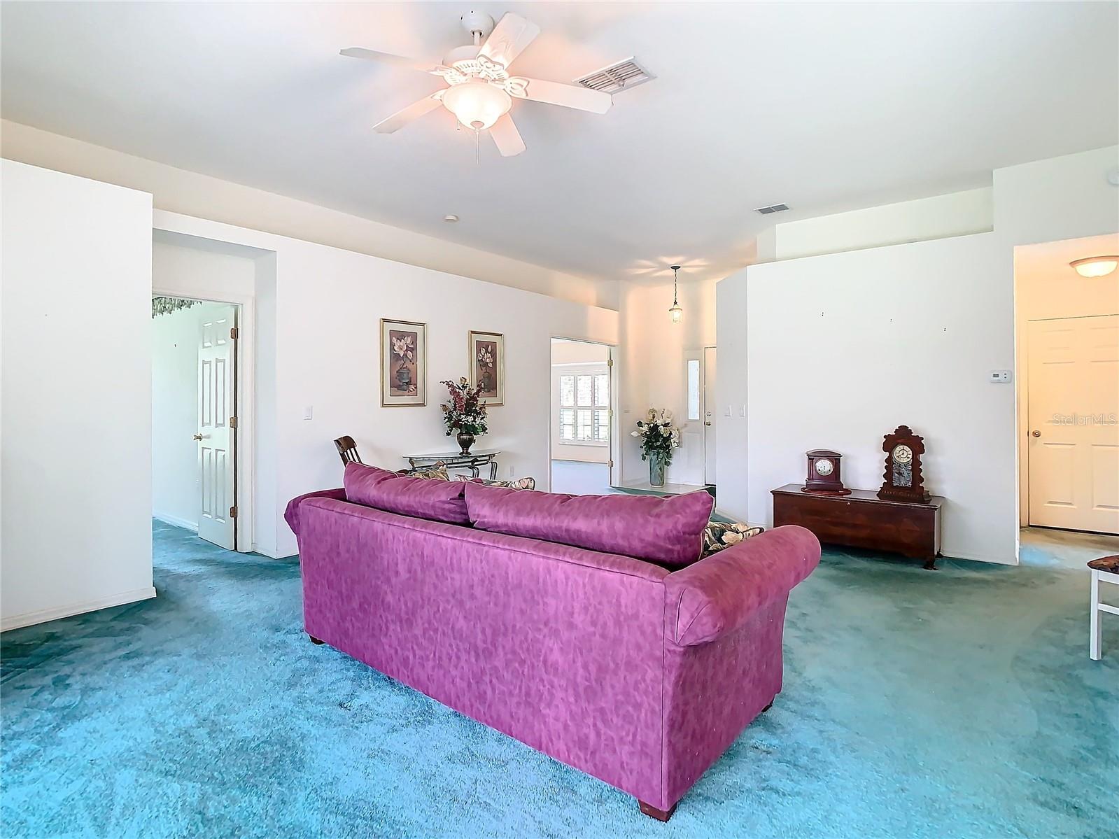 Live in the Tampa Bay Golf and Country Club lifestyle in this Beautiful 3 Bedroom/ 2 Bath home. Seller to give buyer 5,000.00 towards new flooring at closing. The beautiful surroundings of Oak Trees and mature landscaping you will instantly feel relaxed and at home. Upon entering you will notice the open floor plan and volume ceilings in the foyer and family room. The Split floor plan gives privacy for all with the office/ bedroom three being in the front of the home and the Master and 2nd Bedroom on opposite sides. The office/bedroom three includes beautiful plantation shutters that add a decorative appeal from the curbside. The Large kitchen is ideal for the chef in your family with plenty of cabinet and countertop space. There is a large eat-in dining area in the Kitchen, breakfast bar and door that goes to the lanai. The screened in extended patio features tile on the floor and gives you another nice sitting area to enjoy. The master bedroom has plenty of space, vaulted ceilings and also has a door to lanai. The master bath features dual sinks, a large walk-in closet and Garden tub. Home also features new roof November 2021, Hew garage door opener 2024, All Maytag stainless steel appliances and washer and dryer. Not to mention, an unparalleled country-club lifestyle with a 15,000 square-foot clubhouse just renovated to the tune of $1.5 million, two championship golf courses, a full workout facility, library, ballroom, restaurant, bar and much more! You won't want to forget about the two dog parks, tennis and pickle ball courts, shuffleboard, and a variety of activities such as card groups, dance lessons, painting lessons and more. Don't miss out on this peaceful and tranquil home. Schedule your tour today!