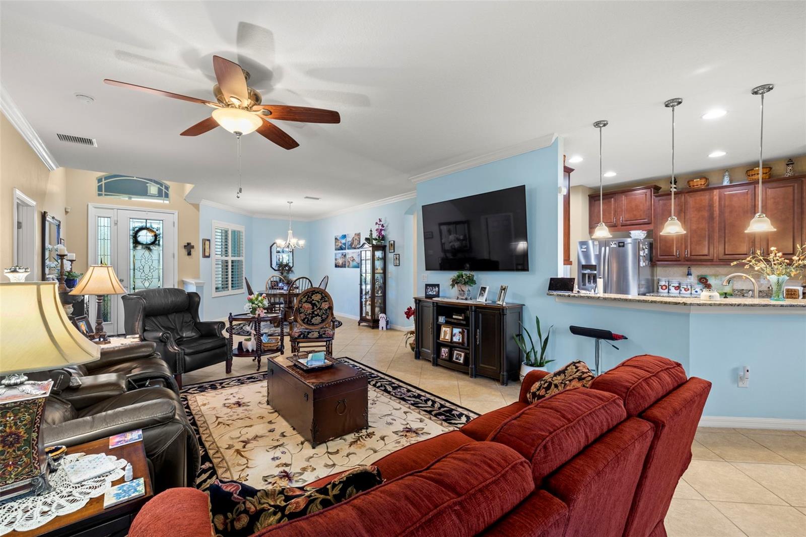 Here's your opportunity to own one of the last homes built in beautiful Tampa Bay Golf & Country Club. This home is better than new! This PERFECT Bay View model by K Hovnanian is 1,962 SF of pure luxury. This home has a ton of upgrades, screened front porch, and gorgeous stone work and crown molding to name a few. The entire home has spectacular Plantation Shutters throughout! Wait until you see the magnificent Master Bathroom shower! TBG&CC has two incredible golf courses, the 18 hole Championship course and a 9 hole executive course. The golf courses here are impeccable and very well maintained. Tampa Bay Golf & Country Club is Tampa Bay's premier active 55+ community featuring two swimming pools (the large resort style pool has fountains and heated to a balmy 80 degrees. Pickleball, tennis, cards, bocce, horseshoes, shuffleboard, cornhole and more activities than anyone could possibly do! Our new activities center has a HUGE fitness center with state of the art fitness equipment, a beautiful billiards room and an amazing card room. TBG&CC has no CDD and very affordable HOA charges which include Cable/Internet/DVR and Mini Box. The Tampa Bay Golf & Country Club is Tampa Bay's most desirable 55+ Active community. There is a ONE TIME charge of $3,500.00 for the Social Membership due at closing. . All room sizes are approximate and should be confirmed by buyer.