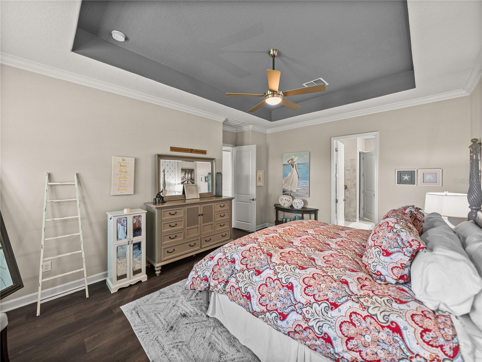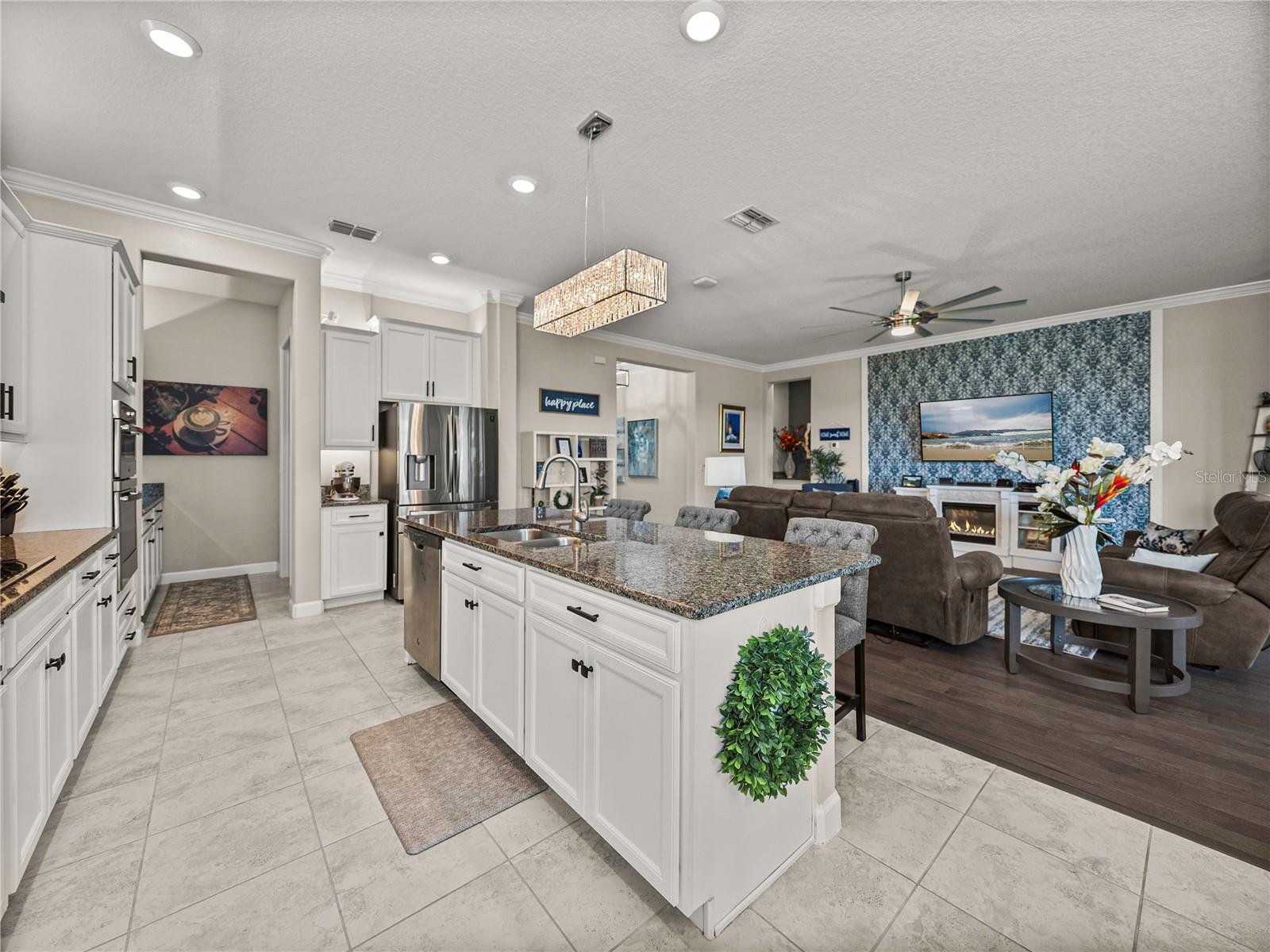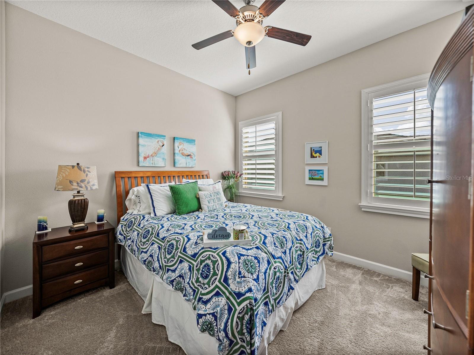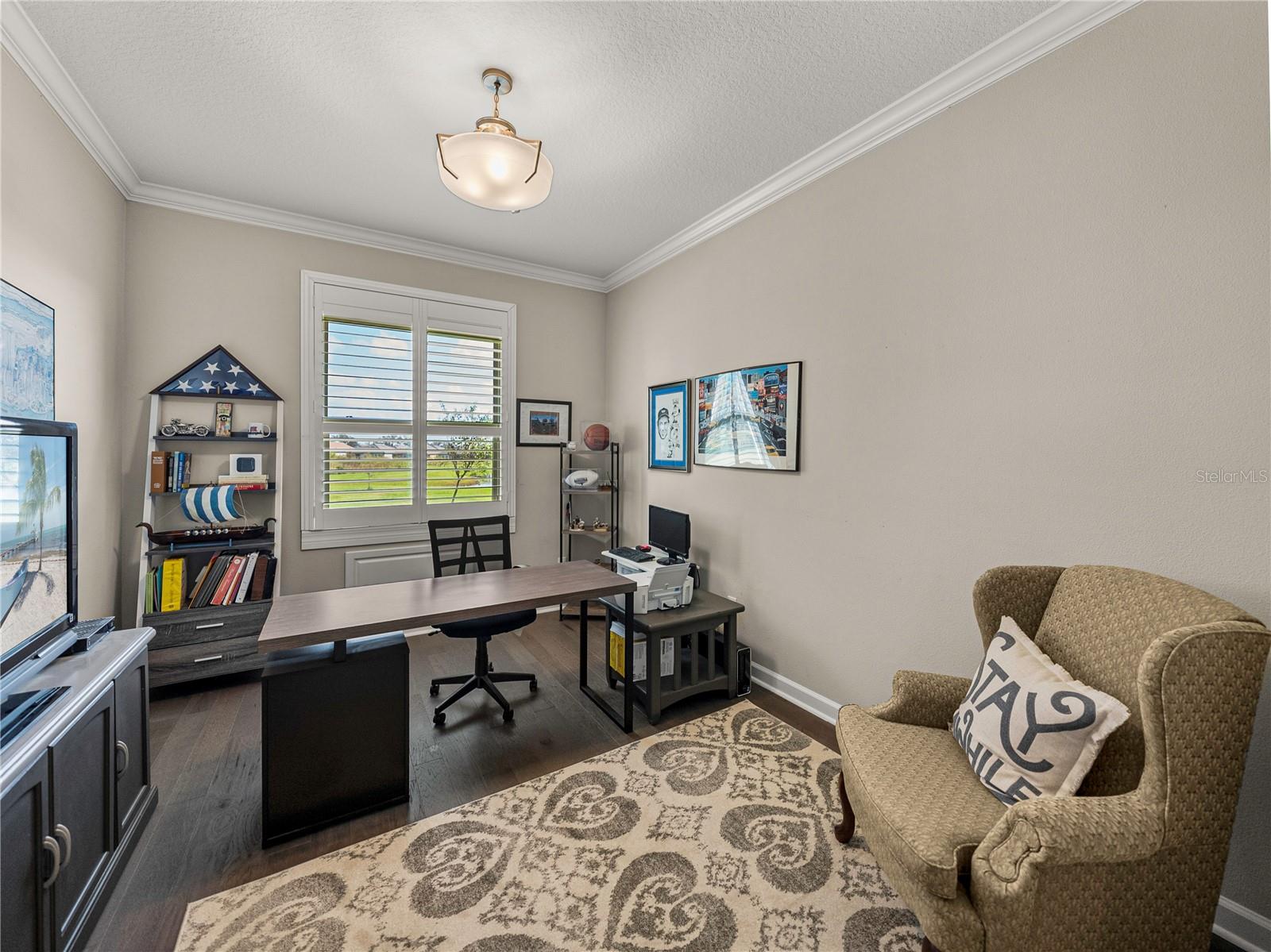 ASSUMABLE MORTGAGE OPTION AT 3.5%!! WHY WAIT TO BUILD? This home has it all including over $75,000 in upgrades. It's on a premium lot with a pond view and no rear neighbors. Your fun-filled future awaits within the gates of the 55+ community of Medley at Mirada! Enjoy the life of luxurious lagoon living where everyday feels like a vacation. Built in 2020, beautifully upgraded and designed residence exceeds all expectations with 3 spacious bedrooms + an office, 2.5 bathrooms, and a 2 car + golf cart garage. Arrive to sidewalk lined streets with convenient guest parking, a lush mature landscape, and a picturesque covered front porch. You will appreciate the stylish character this home exudes from the moment you enter. High ceilings, eye-catching light fixtures, plantation shutters, crown molding, engineered hardwood floors, and stunning wallpaper accent walls are a theme throughout the property. Entertain with pride and ease from the expansive great room that combines the oversized living room with quadruple sliding doors, to the formal dining room, and immaculate kitchen. This space is beautifully equipped to be every chef's dream! Features include granite countertops, a central island with breakfast bar seating, upgraded fixtures and lighting, a butler’s pantry/coffee bar, a large custom walk-in pantry, and stainless steel appliances including a built-in oven and microwave, a cooktop with a range hood, a dishwasher, and refrigerator. A convenient half bathroom for guests resides near the open office and primary suite. This luxurious main bedroom offers expansive sleeping quarters, with luxury vinyl flooring, a walk-in closet with custom organizers, and an ensuite bathroom with a ton of counter, sink, and vanity room along with a built in towel warmer, an oversized walk-in shower with bench seating, and a private water closet. On the opposite side of the home, adjacent to the second full bathroom, bedrooms 2 and 3 are generously sized and each have plush carpet flooring, ceiling fans, and walk-in closets! Near the epoxy floored garage is a mudroom and laundry room-washer and dryer are included. A HUGE bonus is the 120 sq ft finished attic storage space. Can you see a theme here? So much storage! Sip your coffee and enjoy the pond view from the extended screened porch with tile flooring, or utilize the abundant top notch amenities at your disposal. Residents here have access to both the private Medley Amenities (resort style pool, sports courts, clubhouse, ULTRAFi internet, lawn care), and to the spectacular Mirada Lagoon. It is a 15 acre lagoon that offers several water sports, swim up bars, beaches, cabanas, and so much more. Living in Mirada is not a lifestyle you want to pass up, call us today for your private tour!