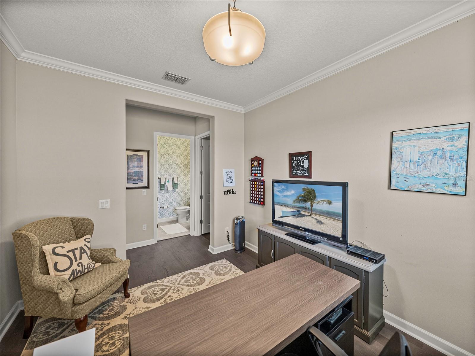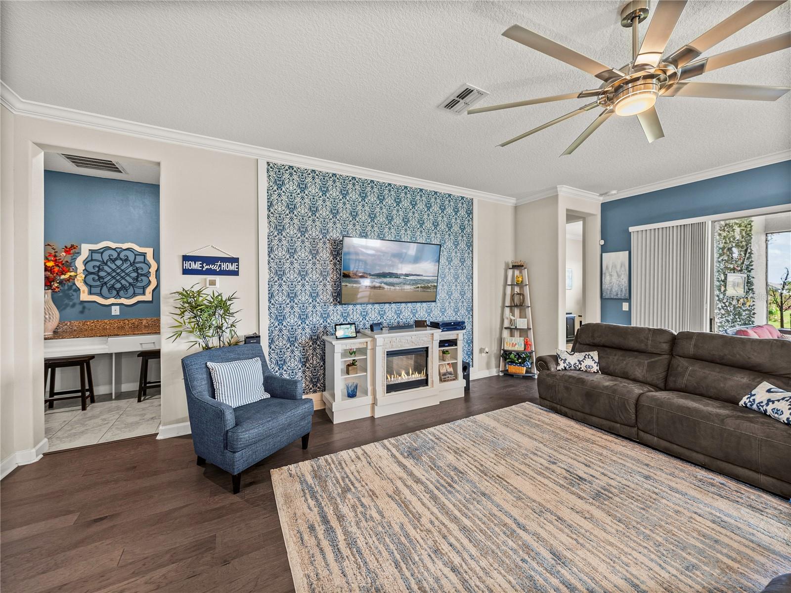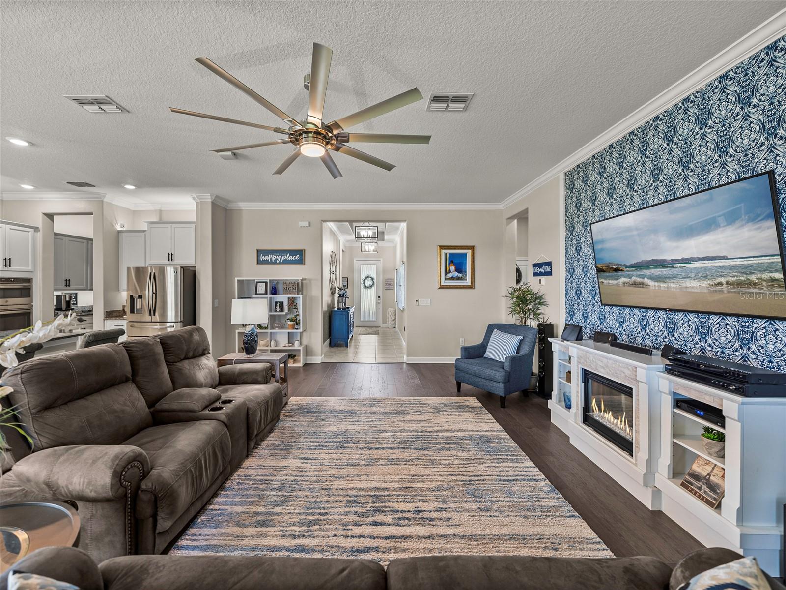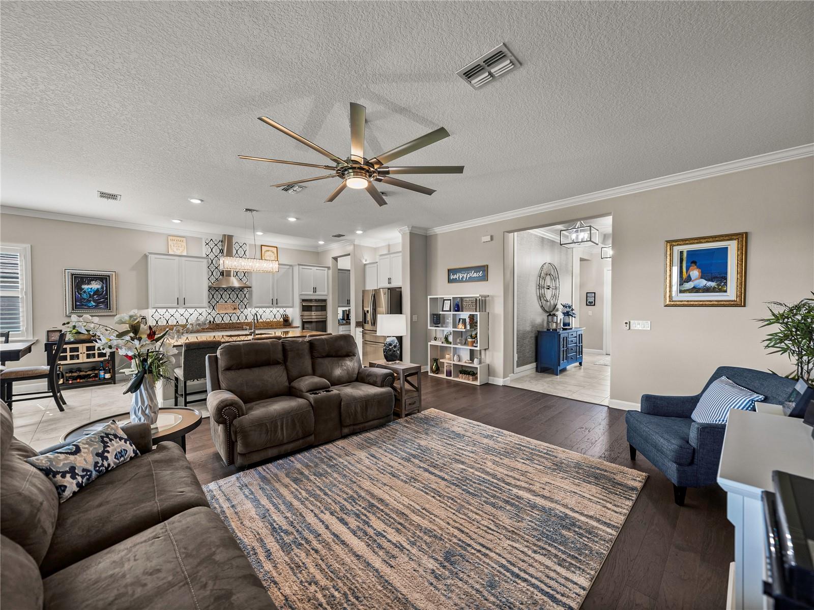 ASSUMABLE MORTGAGE OPTION AT 3.5%!! WHY WAIT TO BUILD? This home has it all including over $75,000 in upgrades. It's on a premium lot with a pond view and no rear neighbors. Your fun-filled future awaits within the gates of the 55+ community of Medley at Mirada! Enjoy the life of luxurious lagoon living where everyday feels like a vacation. Built in 2020, beautifully upgraded and designed residence exceeds all expectations with 3 spacious bedrooms + an office, 2.5 bathrooms, and a 2 car + golf cart garage. Arrive to sidewalk lined streets with convenient guest parking, a lush mature landscape, and a picturesque covered front porch. You will appreciate the stylish character this home exudes from the moment you enter. High ceilings, eye-catching light fixtures, plantation shutters, crown molding, engineered hardwood floors, and stunning wallpaper accent walls are a theme throughout the property. Entertain with pride and ease from the expansive great room that combines the oversized living room with quadruple sliding doors, to the formal dining room, and immaculate kitchen. This space is beautifully equipped to be every chef's dream! Features include granite countertops, a central island with breakfast bar seating, upgraded fixtures and lighting, a butler’s pantry/coffee bar, a large custom walk-in pantry, and stainless steel appliances including a built-in oven and microwave, a cooktop with a range hood, a dishwasher, and refrigerator. A convenient half bathroom for guests resides near the open office and primary suite. This luxurious main bedroom offers expansive sleeping quarters, with luxury vinyl flooring, a walk-in closet with custom organizers, and an ensuite bathroom with a ton of counter, sink, and vanity room along with a built in towel warmer, an oversized walk-in shower with bench seating, and a private water closet. On the opposite side of the home, adjacent to the second full bathroom, bedrooms 2 and 3 are generously sized and each have plush carpet flooring, ceiling fans, and walk-in closets! Near the epoxy floored garage is a mudroom and laundry room-washer and dryer are included. A HUGE bonus is the 120 sq ft finished attic storage space. Can you see a theme here? So much storage! Sip your coffee and enjoy the pond view from the extended screened porch with tile flooring, or utilize the abundant top notch amenities at your disposal. Residents here have access to both the private Medley Amenities (resort style pool, sports courts, clubhouse, ULTRAFi internet, lawn care), and to the spectacular Mirada Lagoon. It is a 15 acre lagoon that offers several water sports, swim up bars, beaches, cabanas, and so much more. Living in Mirada is not a lifestyle you want to pass up, call us today for your private tour!