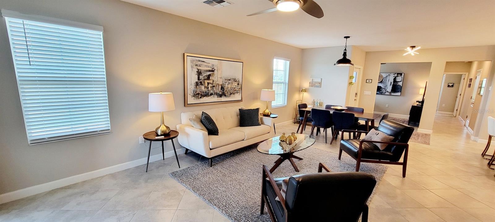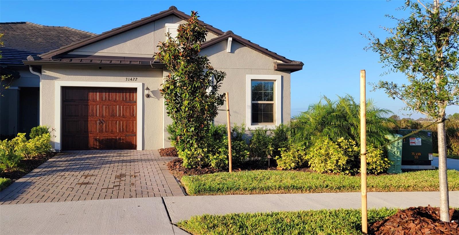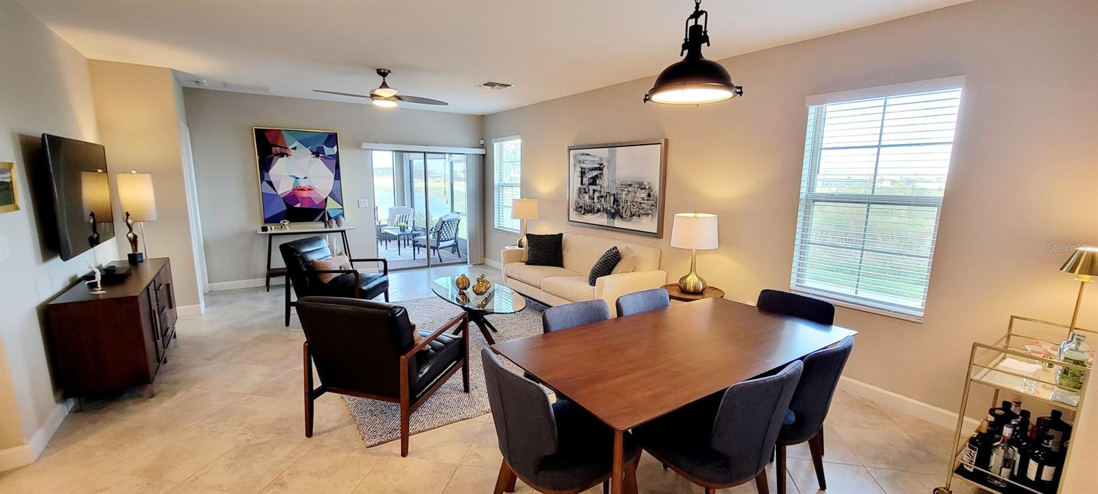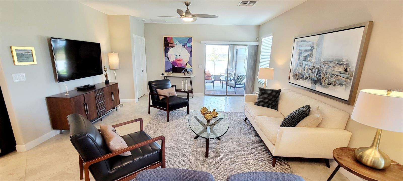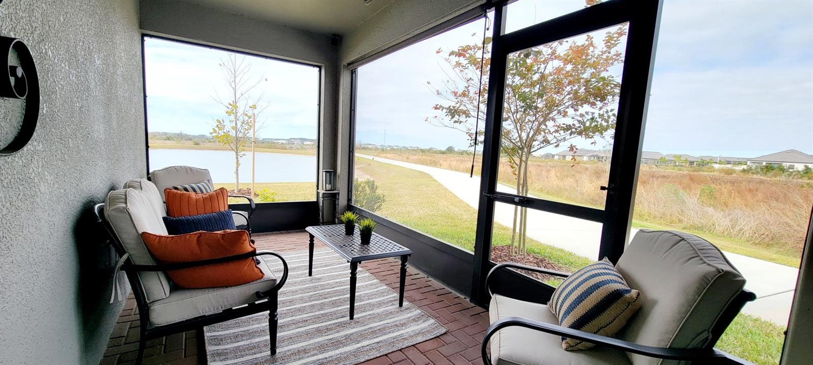 All Furnishings are available for purchase. This open concept floor plan with 2 bedrooms and 2 baths is located in Medley at Mirada, a 55+ Gated Active Lifestyle Community. This one story 1614 sq ft block built structure is located in a very desirable section of the community on a cul-de-sac with no thru car traffic. This property offers pond and beautiful conservation views with amazing wildlife and stunning western sunsets. Some key features include: porcelain tile laid on the diagonal, large gourmet kitchen with stainless steel appliances, quartz countertops with custom backsplash, large kitchen island, flex space office/den, large walk-in master closet with built-ins, walk-in showers, dual master sinks, ceiling fans, smart home, smart thermostat, security system, whole house surge protection arrester, in wall pest control system, walk-in pantry, large laundry room with washer and dryer, one car garage with recently added ceiling storage shelves, electric hot water heater, front door keyless entry, screened lanai with brick pavers and sun shades, professionally installed landscape lighting with timer box, golf cart friendly community, neutral color scheme and a recently added wider brick paver driveway. HOA fee includes exterior painting, building maintenance (including roof), lawn and shrub care with irrigation, Ultra-Fi High speed fiber optical internet with premium cable package, Clubhouse and Amenity Center with pool, 24/7 fitness center, grilling area, dog park and dog wash room, restaurant and bar, complimentary coffee area, heated pool with cabanas, a ballroom, card and billiards room, pickle ball, tennis and shuffleboard courts. The largest 15 acre lagoon in the US with sandy beaches, kayaking and a swim up bar. Also, the community is connected by paths and nature trails, great for biking and bird watching.Downtown Tampa, Tampa’s International Airport, Wesley Chapel, Dade City, Outlet mall, Wiregrass shopping, hospitals, restaurants, Publix grocery store and beaches are all within close proximity. . This beautiful, well maintained home is awaiting it’s new owners.