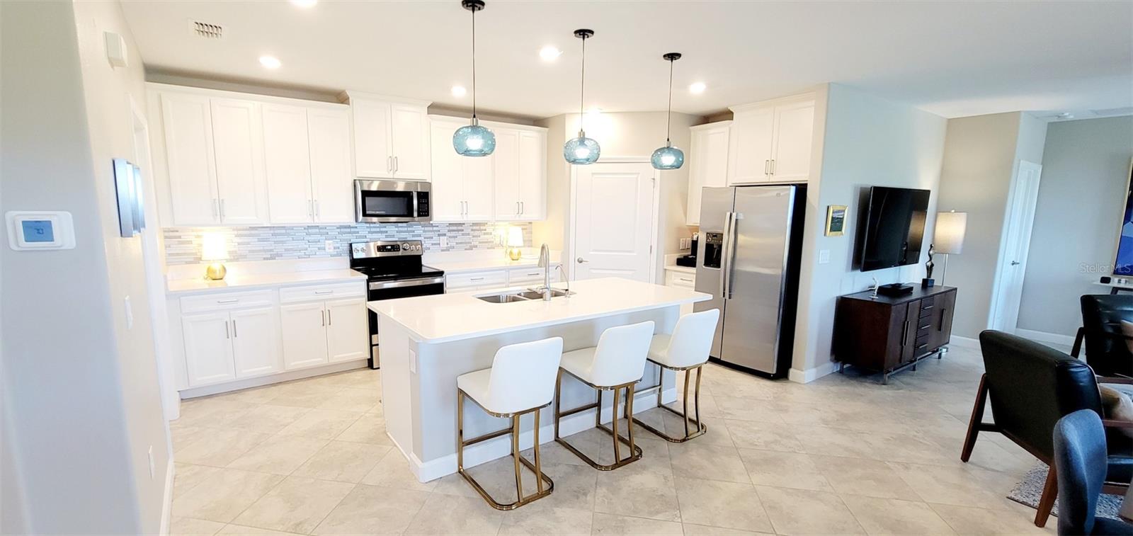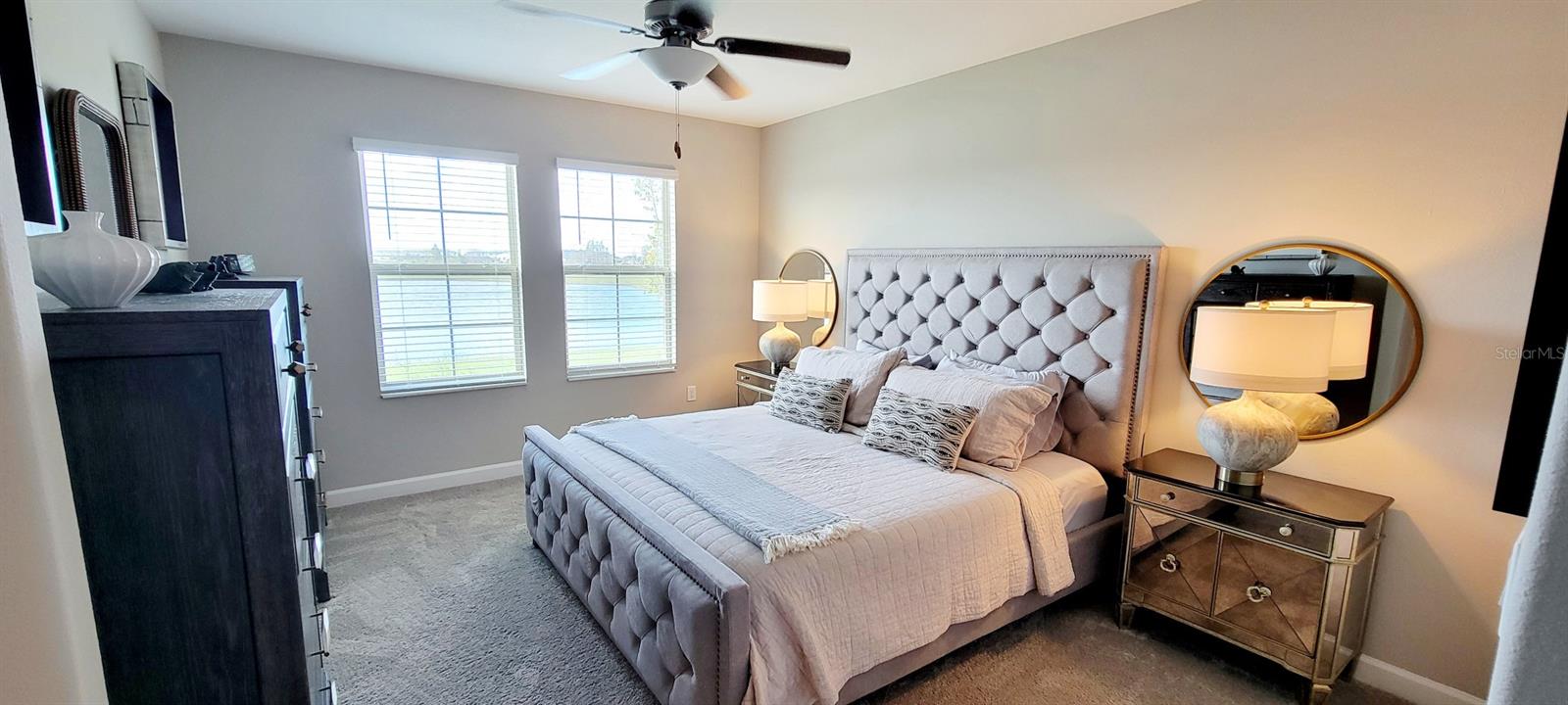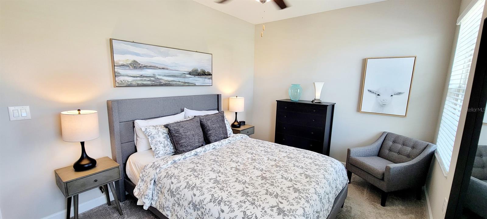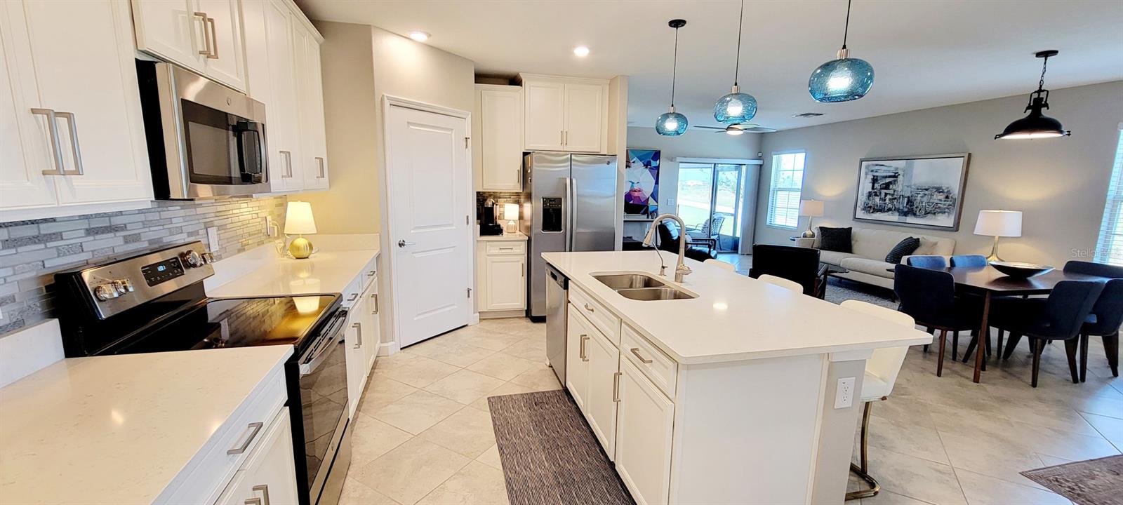 All Furnishings are available for purchase. This open concept floor plan with 2 bedrooms and 2 baths is located in Medley at Mirada, a 55+ Gated Active Lifestyle Community. This one story 1614 sq ft block built structure is located in a very desirable section of the community on a cul-de-sac with no thru car traffic. This property offers pond and beautiful conservation views with amazing wildlife and stunning western sunsets. Some key features include: porcelain tile laid on the diagonal, large gourmet kitchen with stainless steel appliances, quartz countertops with custom backsplash, large kitchen island, flex space office/den, large walk-in master closet with built-ins, walk-in showers, dual master sinks, ceiling fans, smart home, smart thermostat, security system, whole house surge protection arrester, in wall pest control system, walk-in pantry, large laundry room with washer and dryer, one car garage with recently added ceiling storage shelves, electric hot water heater, front door keyless entry, screened lanai with brick pavers and sun shades, professionally installed landscape lighting with timer box, golf cart friendly community, neutral color scheme and a recently added wider brick paver driveway. HOA fee includes exterior painting, building maintenance (including roof), lawn and shrub care with irrigation, Ultra-Fi High speed fiber optical internet with premium cable package, Clubhouse and Amenity Center with pool, 24/7 fitness center, grilling area, dog park and dog wash room, restaurant and bar, complimentary coffee area, heated pool with cabanas, a ballroom, card and billiards room, pickle ball, tennis and shuffleboard courts. The largest 15 acre lagoon in the US with sandy beaches, kayaking and a swim up bar. Also, the community is connected by paths and nature trails, great for biking and bird watching.Downtown Tampa, Tampa’s International Airport, Wesley Chapel, Dade City, Outlet mall, Wiregrass shopping, hospitals, restaurants, Publix grocery store and beaches are all within close proximity. . This beautiful, well maintained home is awaiting it’s new owners.