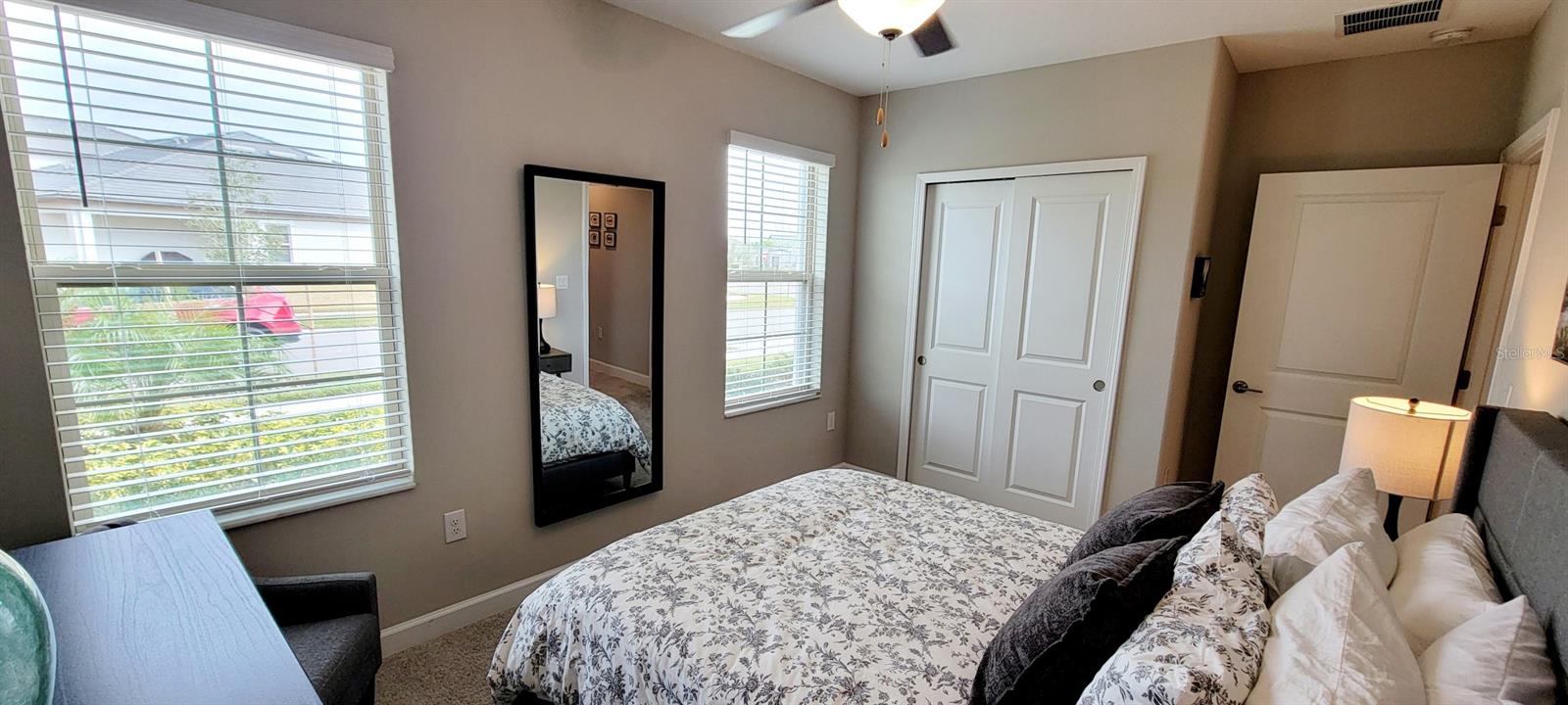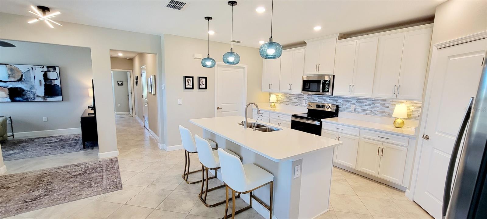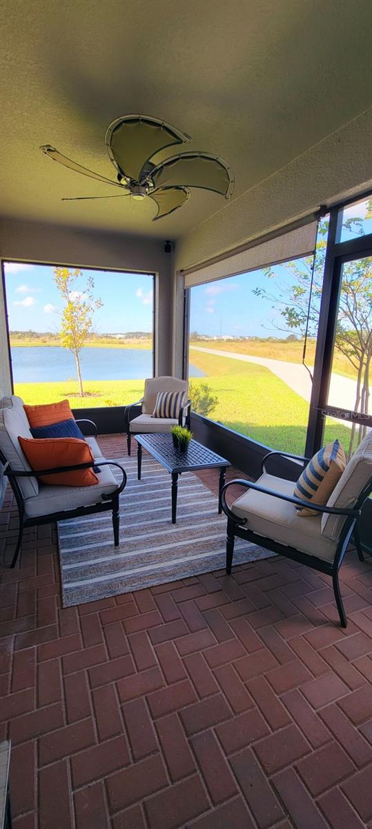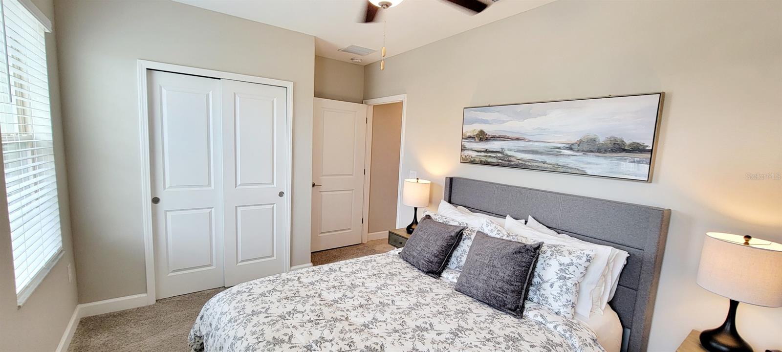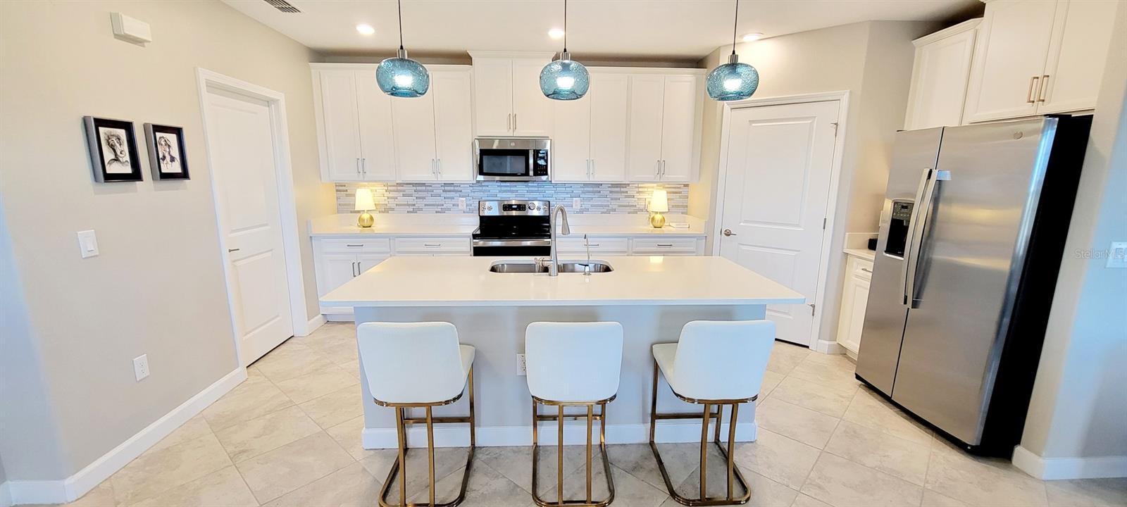 All Furnishings are available for purchase. This open concept floor plan with 2 bedrooms and 2 baths is located in Medley at Mirada, a 55+ Gated Active Lifestyle Community. This one story 1614 sq ft block built structure is located in a very desirable section of the community on a cul-de-sac with no thru car traffic. This property offers pond and beautiful conservation views with amazing wildlife and stunning western sunsets. Some key features include: porcelain tile laid on the diagonal, large gourmet kitchen with stainless steel appliances, quartz countertops with custom backsplash, large kitchen island, flex space office/den, large walk-in master closet with built-ins, walk-in showers, dual master sinks, ceiling fans, smart home, smart thermostat, security system, whole house surge protection arrester, in wall pest control system, walk-in pantry, large laundry room with washer and dryer, one car garage with recently added ceiling storage shelves, electric hot water heater, front door keyless entry, screened lanai with brick pavers and sun shades, professionally installed landscape lighting with timer box, golf cart friendly community, neutral color scheme and a recently added wider brick paver driveway. HOA fee includes exterior painting, building maintenance (including roof), lawn and shrub care with irrigation, Ultra-Fi High speed fiber optical internet with premium cable package, Clubhouse and Amenity Center with pool, 24/7 fitness center, grilling area, dog park and dog wash room, restaurant and bar, complimentary coffee area, heated pool with cabanas, a ballroom, card and billiards room, pickle ball, tennis and shuffleboard courts. The largest 15 acre lagoon in the US with sandy beaches, kayaking and a swim up bar. Also, the community is connected by paths and nature trails, great for biking and bird watching.Downtown Tampa, Tampa’s International Airport, Wesley Chapel, Dade City, Outlet mall, Wiregrass shopping, hospitals, restaurants, Publix grocery store and beaches are all within close proximity. . This beautiful, well maintained home is awaiting it’s new owners.