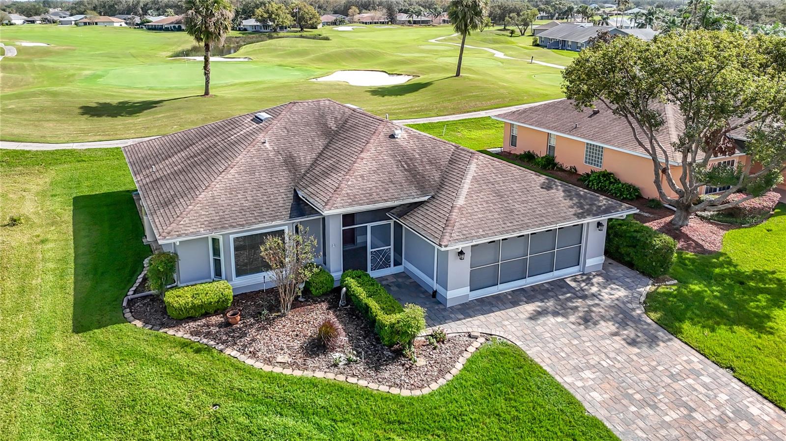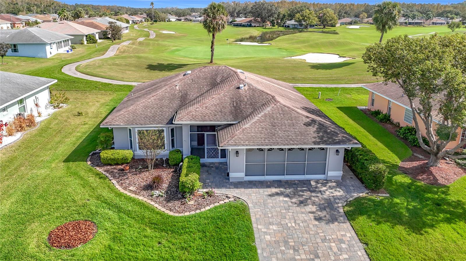 Experience an active lifestyle in the vibrant 55+ gated community of Tampa Bay Golf & Country Club! This beautifully updated single-story home features a split floor plan with high ceilings and a spacious living room. The open-concept design seamlessly connects the living area to the kitchen, making it ideal for entertaining. The upgraded kitchen features ample cabinetry, solid surface countertops, a breakfast bar overlooking the family room, and an eat-in kitchen space. Enjoy access from three rooms to the large, enclosed Florida room with golf course views - Florida living at its finest! The primary bedroom offers a large walk-in closet and an ensuite bathroom with a double sink vanity, garden tub, and a separate walk-in-tiled shower with glass surround. Additional features include energy-efficient double-pane windows installed in 2013, a new A/C unit in 2021, a hot water heater in 2022, and a 30-year architectural Timberline roof installed in 2011, ensuring worry-free living. TAMPA BAY GOLF AND COUNTRY CLUB OFFERS COMMUNITY AMENITIES GALORE: 27-hole Golf Course, Club House with Restaurant and Pub, Resort-Style Pools, Community Center, Card Rooms, Billiards, Fitness Center, Tennis Courts, Pickleball, Cornhole, Shuffleboard, Dog Parks, a Travel Club, and so much more. THE BEST PART IS YOU’RE LIVING as Active of a lifestyle as you want. Conveniently located near the Grove at Wesley Chapel, Tampa Premium Outlets, and Easy access to I75 makes commuting to downtown Tampa a breeze, where you can enjoy more dining, shopping and all that Tampa has to offer. Living in this active lifestyle community, you’ll have a wealth of amenities and social opportunities right at your doorstep. Enjoy the best of Tampa Bay!