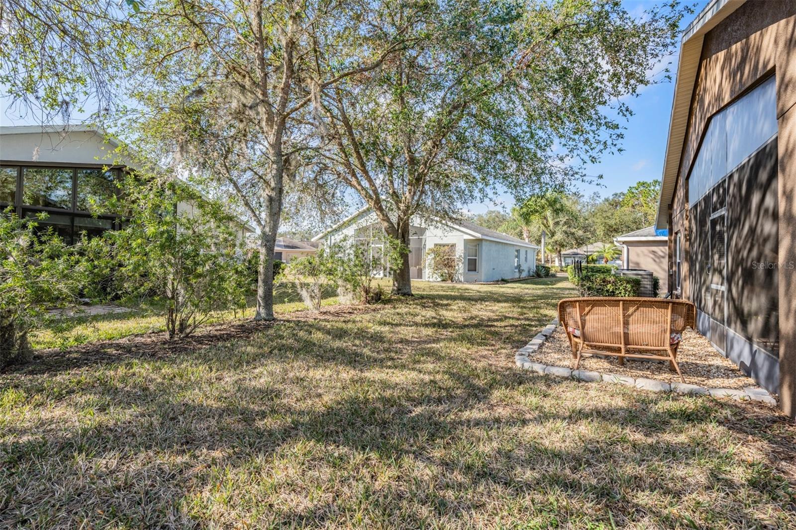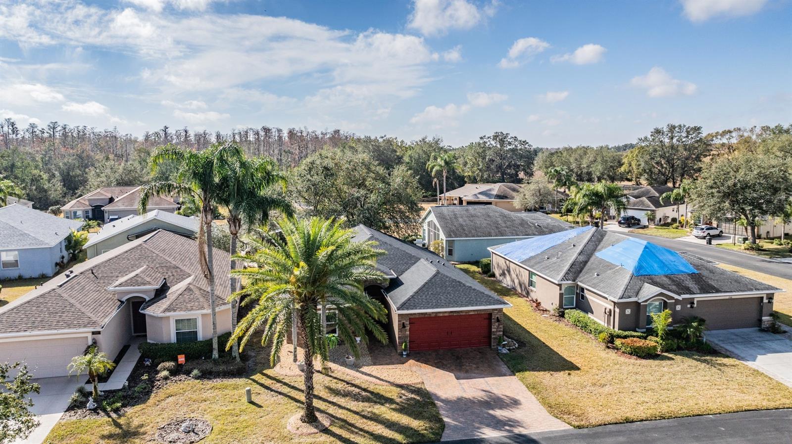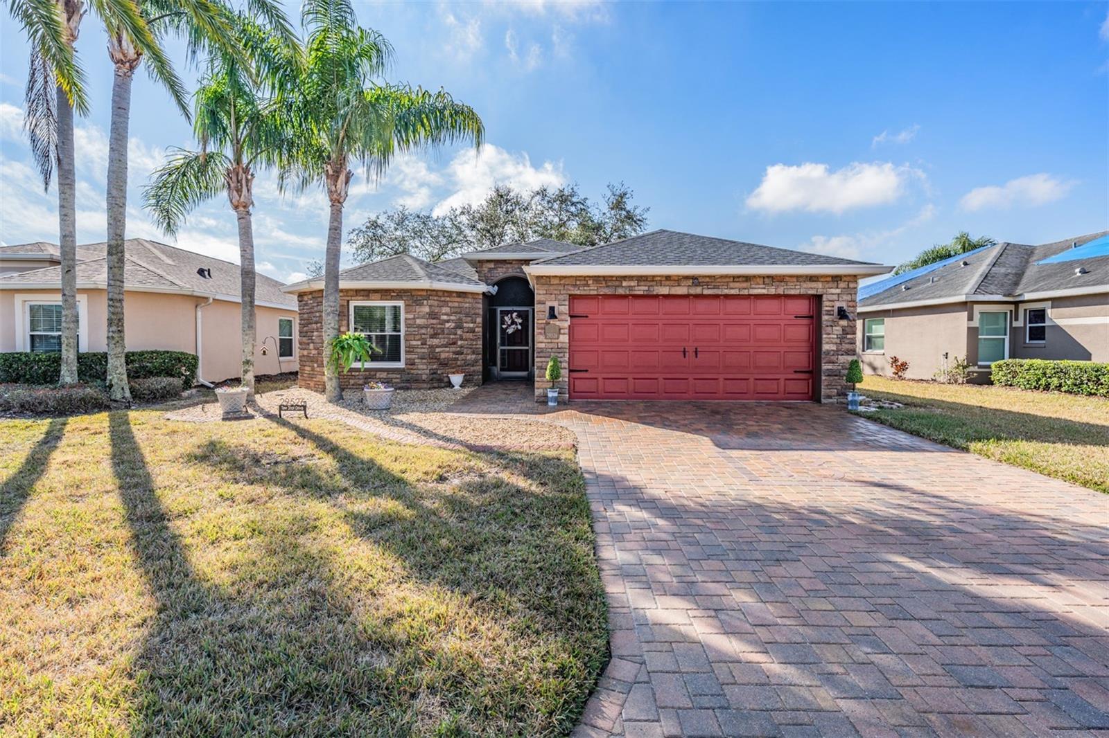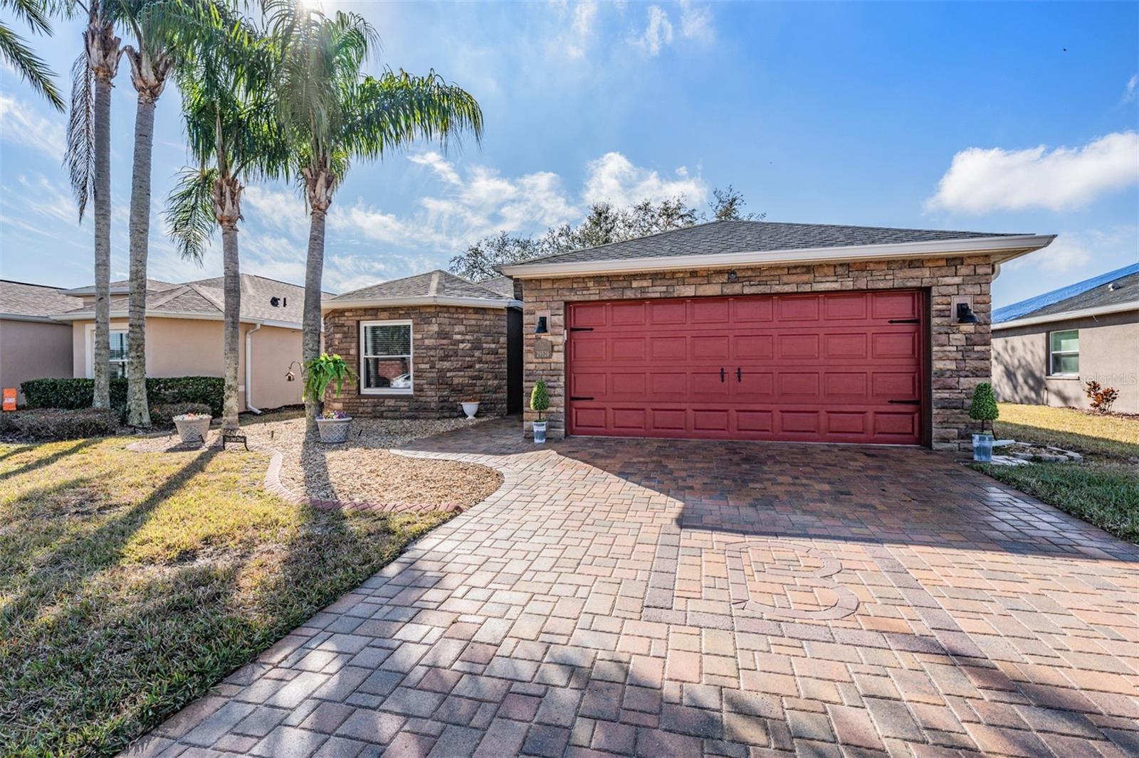 Welcome to this MOVE IN READY home with newer 2022 ROOF and UPDATED interior, located in the man guard GATED Tampa Bay Golf & Tennis Club, a 55+ community offering resort-style living at its finest! This well-maintained 2-bedroom, 2-bathroom home boasts a light, bright, OPEN feel with cathedral ceilings in the spacious great room. Sliding glass doors open to extend your entertaining space onto the lanai. Double doors from great room open to a Flex room, which makes an excellent home office, den or third bedroom! Stunning curb appeal with BRICK PAVER driveway & walkway, stack stone front, landscape lighting, coach lights, and a flagpole in the landscape bed greets you. Inside, the open floor plan features warm laminate flooring, newly painted neutral interior walls, and lighted plant shelves. The kitchen is open to the great room and has granite countertops with an eat-in space overlooking the backyard and screened lanai. Tile floor and vaulted ceiling make this space a nice place to unwind! Oversized backyard with other homes staggered in distance, gives great line of sight and visual appearance of more space between homes! Spacious owners retreat includes two closets and a large walk-in shower, dual sinks and tile floors in the bath ensuite. A second bedroom and bathroom are located at the front of the home in this split bedroom plan. This home also includes double-pane windows for energy efficiency, an interior laundry room with washer and dryer, plus a 2-car garage. Upgrades include 2023 Electrolux refrigerator and stainless whirlpool 2021 microwave, 2021 range, 2021 dishwasher, 2021 comfort height toilets, 2018 AC with UV light, 2022 painted interior, 2022 new Roof to name a few. This ACTIVE community offers an abundance of Resident owned amenities, including an 18-hole championship golf course, 9-hole executive course, pro shop, two swimming pools, hot tub, fitness center, shuffleboard, tennis courts, pickleball courts, library with computers, billiards room, card rooms with poker tables, lighted dog parks with coolers and natural ponds to fish. Enjoy activities like onsite entertainment shows, banquet facilities with dance floor, planned travel excursions, and events at the 15,000 sq ft clubhouse, which features a full-service restaurant and pub/grille. The HOA fee includes cable TV with 2 boxes, high-speed internet, lawn care, gated entrances, private streets and use of amenities and maintenance of the common areas. Located north of Tampa near shopping and dining with easy access to I-75, this home is high & dry and not in a flood zone. Take advantage of this Resort lifestyle and CALL TODAY to see why this IS the place to BE!