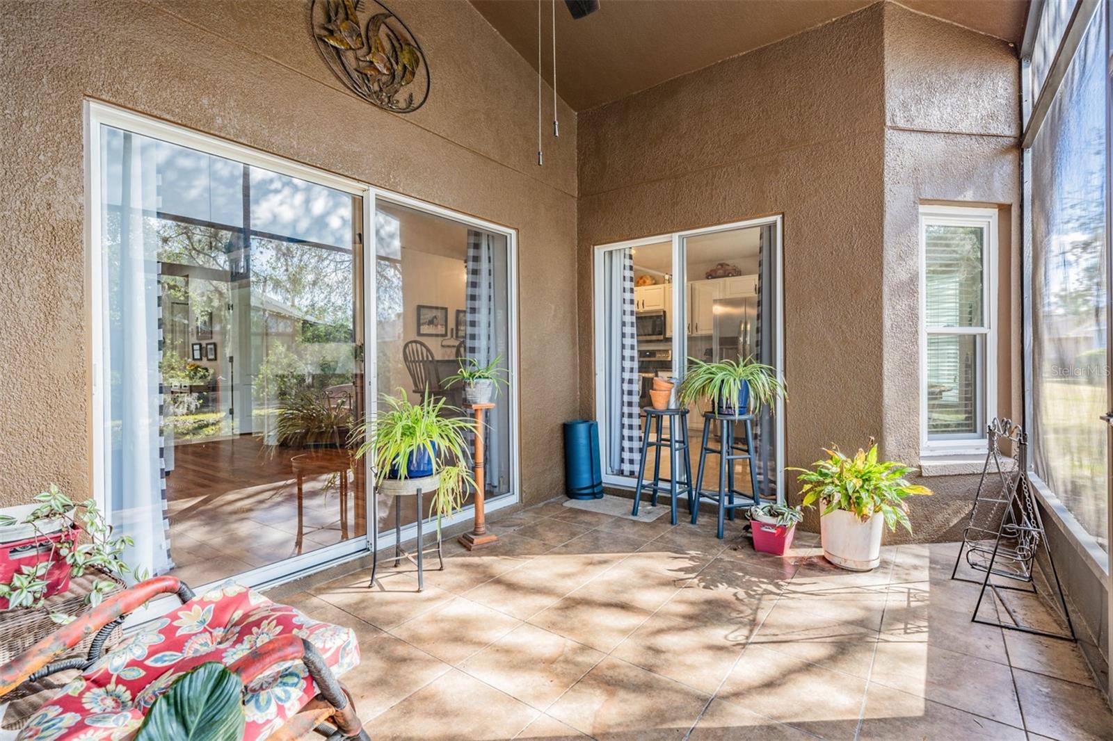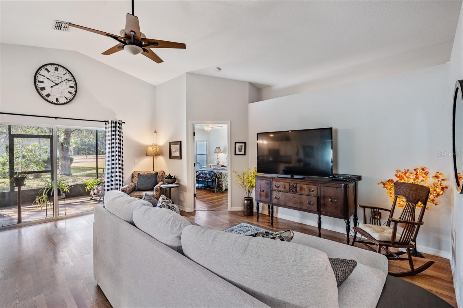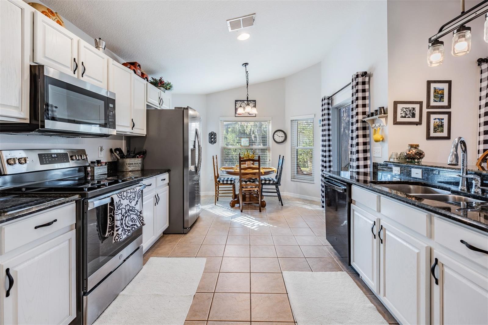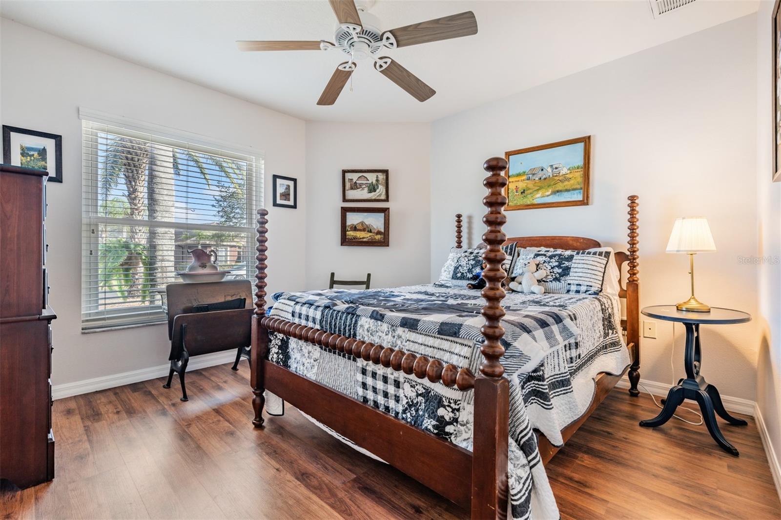 Welcome to this MOVE IN READY home with newer 2022 ROOF and UPDATED interior, located in the man guard GATED Tampa Bay Golf & Tennis Club, a 55+ community offering resort-style living at its finest! This well-maintained 2-bedroom, 2-bathroom home boasts a light, bright, OPEN feel with cathedral ceilings in the spacious great room. Sliding glass doors open to extend your entertaining space onto the lanai. Double doors from great room open to a Flex room, which makes an excellent home office, den or third bedroom! Stunning curb appeal with BRICK PAVER driveway & walkway, stack stone front, landscape lighting, coach lights, and a flagpole in the landscape bed greets you. Inside, the open floor plan features warm laminate flooring, newly painted neutral interior walls, and lighted plant shelves. The kitchen is open to the great room and has granite countertops with an eat-in space overlooking the backyard and screened lanai. Tile floor and vaulted ceiling make this space a nice place to unwind! Oversized backyard with other homes staggered in distance, gives great line of sight and visual appearance of more space between homes! Spacious owners retreat includes two closets and a large walk-in shower, dual sinks and tile floors in the bath ensuite. A second bedroom and bathroom are located at the front of the home in this split bedroom plan. This home also includes double-pane windows for energy efficiency, an interior laundry room with washer and dryer, plus a 2-car garage. Upgrades include 2023 Electrolux refrigerator and stainless whirlpool 2021 microwave, 2021 range, 2021 dishwasher, 2021 comfort height toilets, 2018 AC with UV light, 2022 painted interior, 2022 new Roof to name a few. This ACTIVE community offers an abundance of Resident owned amenities, including an 18-hole championship golf course, 9-hole executive course, pro shop, two swimming pools, hot tub, fitness center, shuffleboard, tennis courts, pickleball courts, library with computers, billiards room, card rooms with poker tables, lighted dog parks with coolers and natural ponds to fish. Enjoy activities like onsite entertainment shows, banquet facilities with dance floor, planned travel excursions, and events at the 15,000 sq ft clubhouse, which features a full-service restaurant and pub/grille. The HOA fee includes cable TV with 2 boxes, high-speed internet, lawn care, gated entrances, private streets and use of amenities and maintenance of the common areas. Located north of Tampa near shopping and dining with easy access to I-75, this home is high & dry and not in a flood zone. Take advantage of this Resort lifestyle and CALL TODAY to see why this IS the place to BE!