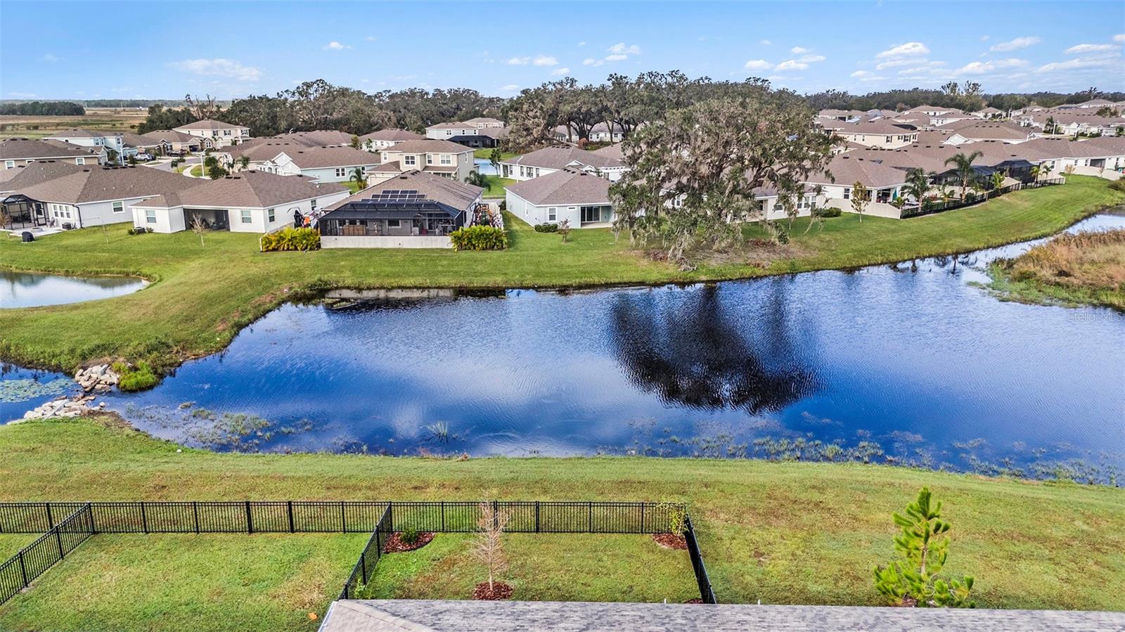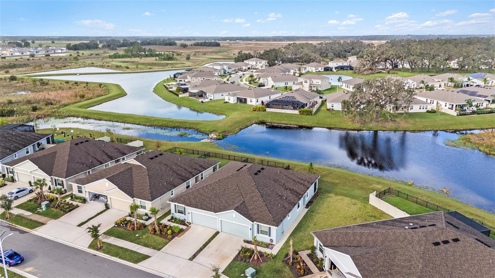 One or more photo(s) has been virtually staged. Exquisite 3 bedroom, 2 full bathroom, 2 car garage, Maintenance Free villa is nestled in the serene surroundings of Florida's west coast near the picturesque Mirada Lagoon. Designed for comfort and ease of living, this property offers a peaceful pond view framed by majestic oak trees. Enjoy tranquil water views from your private lanai, perfect for morning coffee or evening relaxation. The home has been freshly painted and the garage flooring has new epoxy coating for safety. The back yard is fully fenced and the flower beds have custom landscaping. 3 Spacious Bedrooms: including the private primary suite with an ensuite bath and walk in closet. 2 Modern bathrooms with plenty of storage. Open - Concept living space boasts a bright and airy floorplan, ideal for entertaining or everyday living. Gourmet Kitchen: Features granite countertops, huge island, stainless steel appliances, and ample cabinetry. Tile floors through the main living areas with plush carpeting in the bedrooms for comfort. Maintenance free living: the HOA takes care of Landscaping allowing you more time to enjoy life. The Attached 2 car garage offers ample storage and the driveway has room for 2 additional vehicles. This Smart Home features app controlled security, entry key pad, door bell camera, garage door and thermostat features. The Monthly HOA fees cover Landscaping and Spectrum Cable with High Speed Internet. Also included is year round access to the Mirada Lagoon, where you can enjoy paddleboarding, kayaking and endless water entertainment and outdoor community events. Proximity to shopping, dining, entertainment, easy access to major highways, and all things TAMPA make this home perfect in every way!