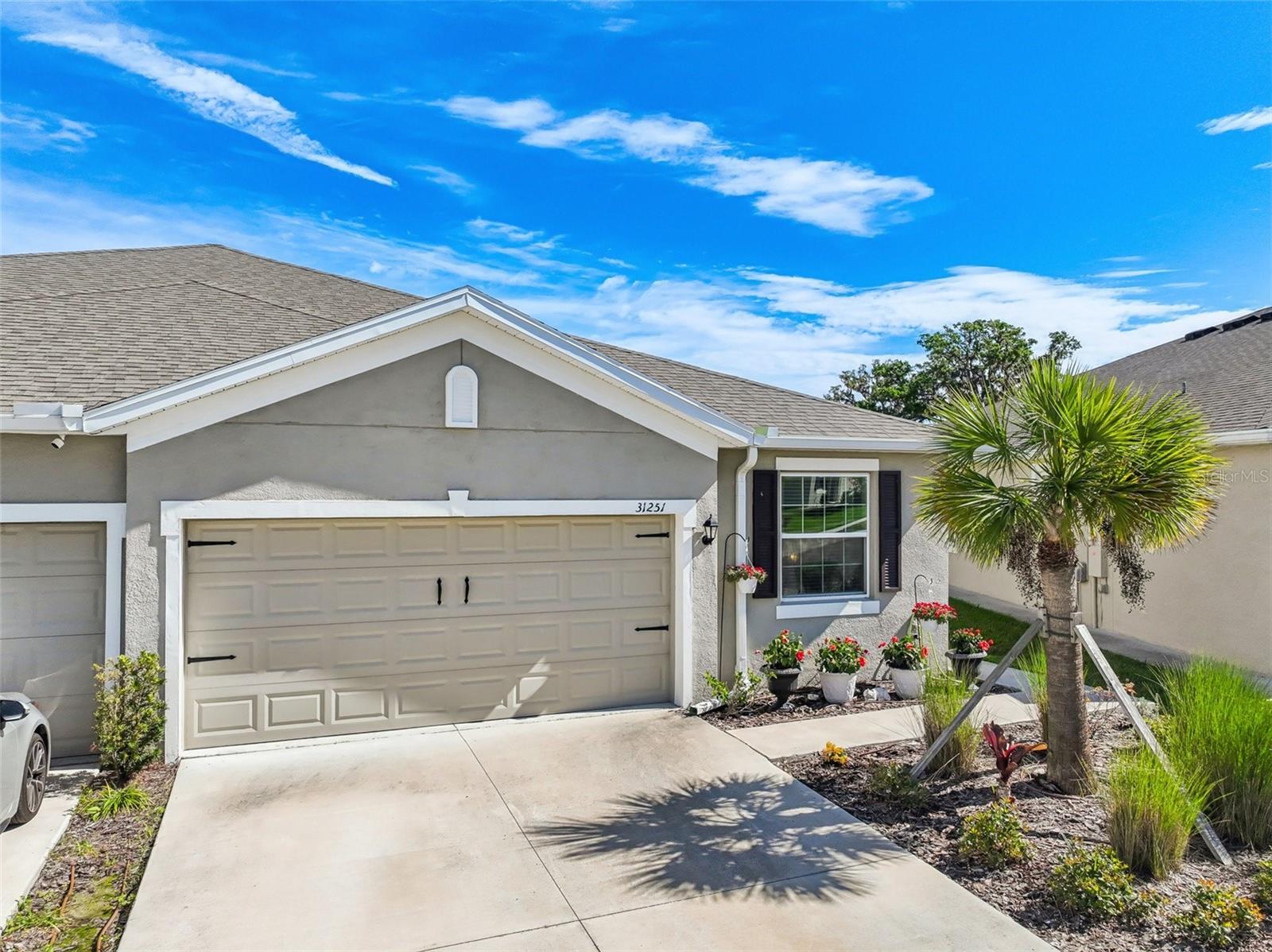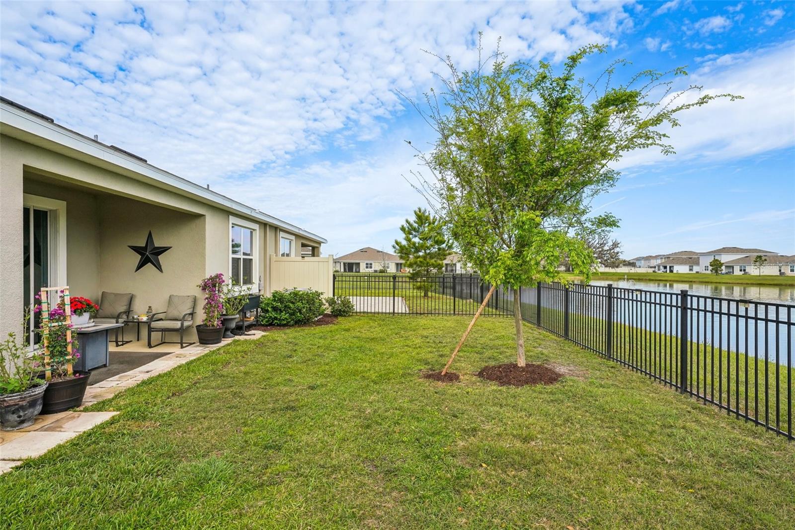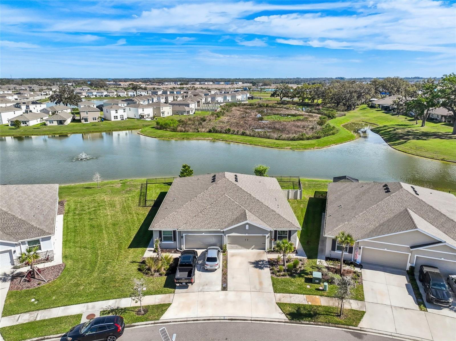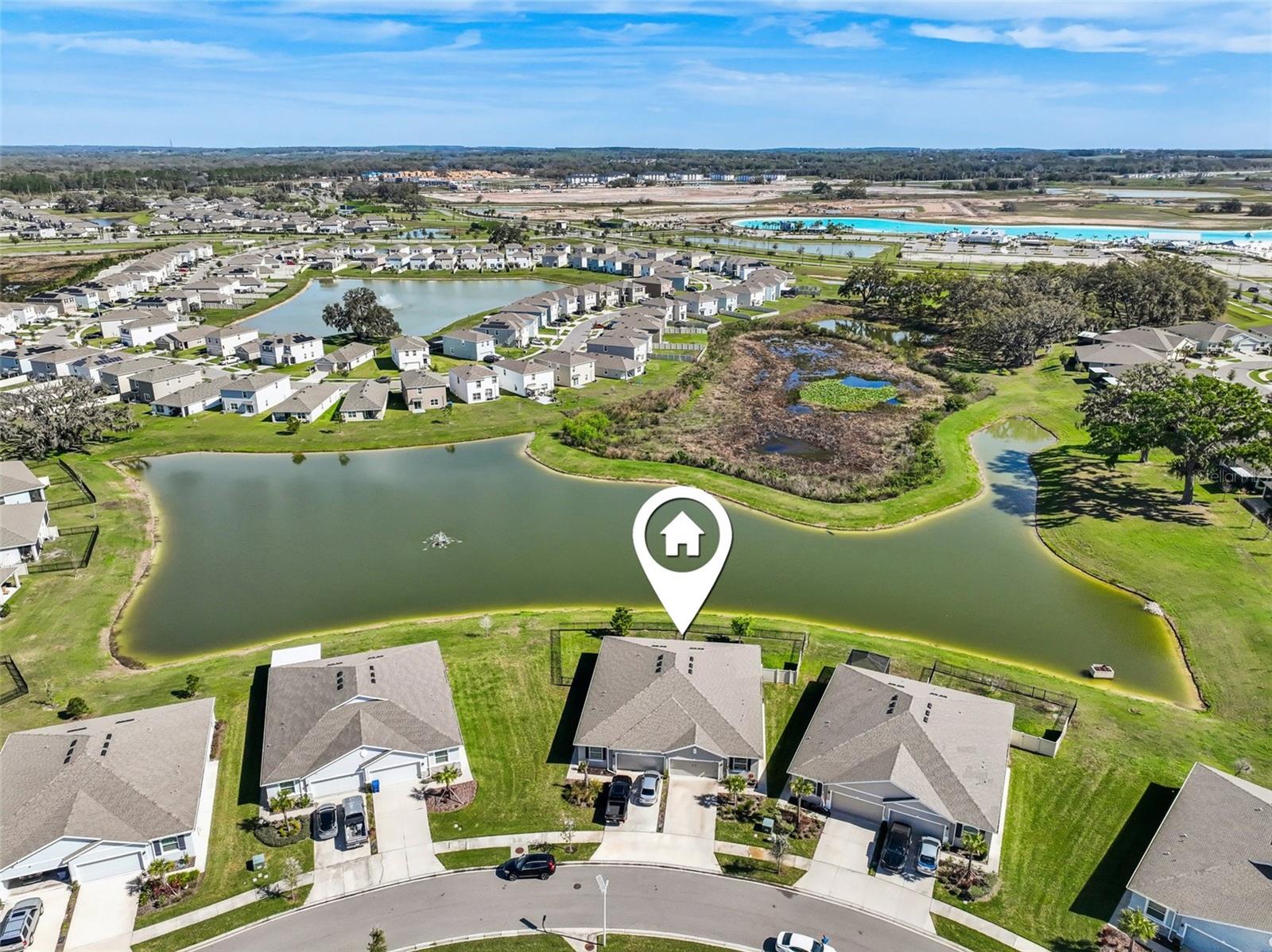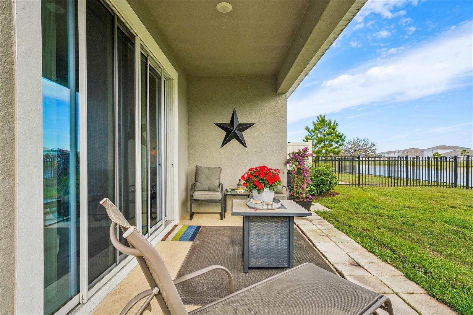 Luxurious Lagoon living awaits in this Waterfront 3 bedroom, 2 bath, 2 car garage one level Villa- all perfectly set against a serene Pond and Conservation Area views. Located in the heart of the nation’s Largest Lagoon community. Sidewalk-lined streets lead to the exterior with lush mature landscape and covered front entryway. Neutral toned, easy-to-maintain tile flooring begins in the entry and continues throughout the main living areas. Upon entering the house you will see the great room overlooks the pond and triple sliding doors leads to the covered lanai fenced-in outdoor oasis . The chef’s kitchen offers an island with breakfast bar seating, espresso colored cabinetry, stainless steel appliances and washer and dryer are included, zebra granite countertops, and ample pantry storage connected to the eat-in dining room. The owner’s suite also overlooks the pond and is separate from the other bedrooms. This private retreat is highlighted by a trey ceiling, a large walk-in closet (with built in wall safe), and a spa-like suite bathroom with dual sinks, linen closet and a walk-in shower. Bedrooms 3 and 4 are both spacious with good sized closets with the 2nd bathroom in-between them which has a tub/ shower combo. Mirada, it’s the epitome of resort-style living. The 15-acre Mirada Lagoon is the Hub of activity with amenities including sandy beaches, kayaking, swimming, paddle boarding, a floating obstacle course, swim-up bar, happy hour, Live Music, Movies, Trivia, Bingo, Karaoke, Yoga, Latin and Country Dancing nights, Cigar nights, Kids foam parties, July 4th and New Years Eve parties with fireworks and much more. Embrace all that Mirada living has to offer entertaining: your backyard oasis with peaceful pond views or take the dogs on a stroll to the dog park or down the many lush lake view walking trails throughout the community. Great Shopping at the Grove, Wiregrass and the Tampa Premium Outlets just minutes away. 40 min to downtown and the Tampa and St Pete Air ports. Smart home with alarm and video doorbell. ULTRAFI internet, cable TV (including 250 channels and Showtime), weekly grass cutting and front of home landscaping, and lagoon pool access are included in the HOA fees. Be sure to see the 3D tour at- Virtual Tour 1 and the walkthrough video at Virtual tour 2. Come see if it feels like home to you.