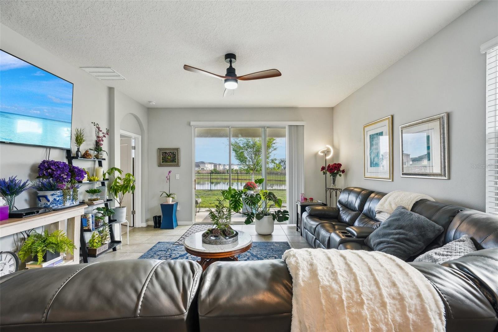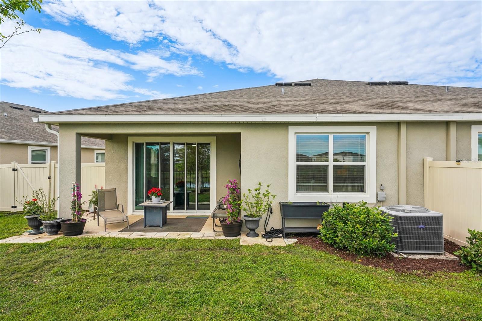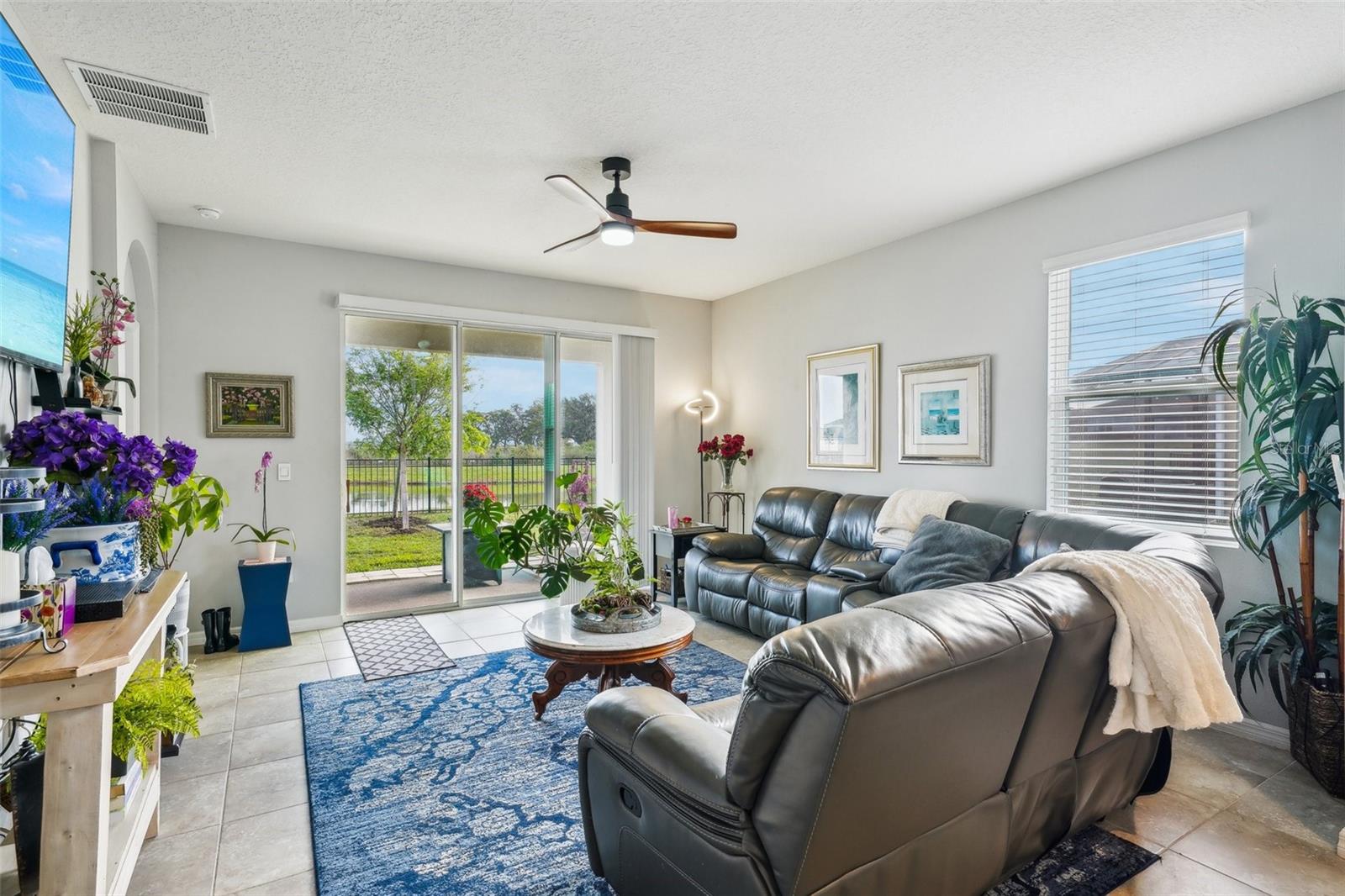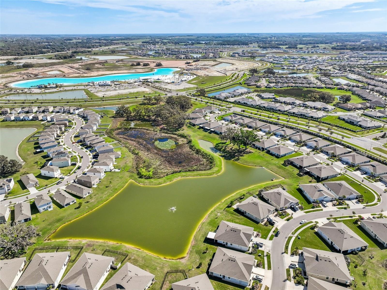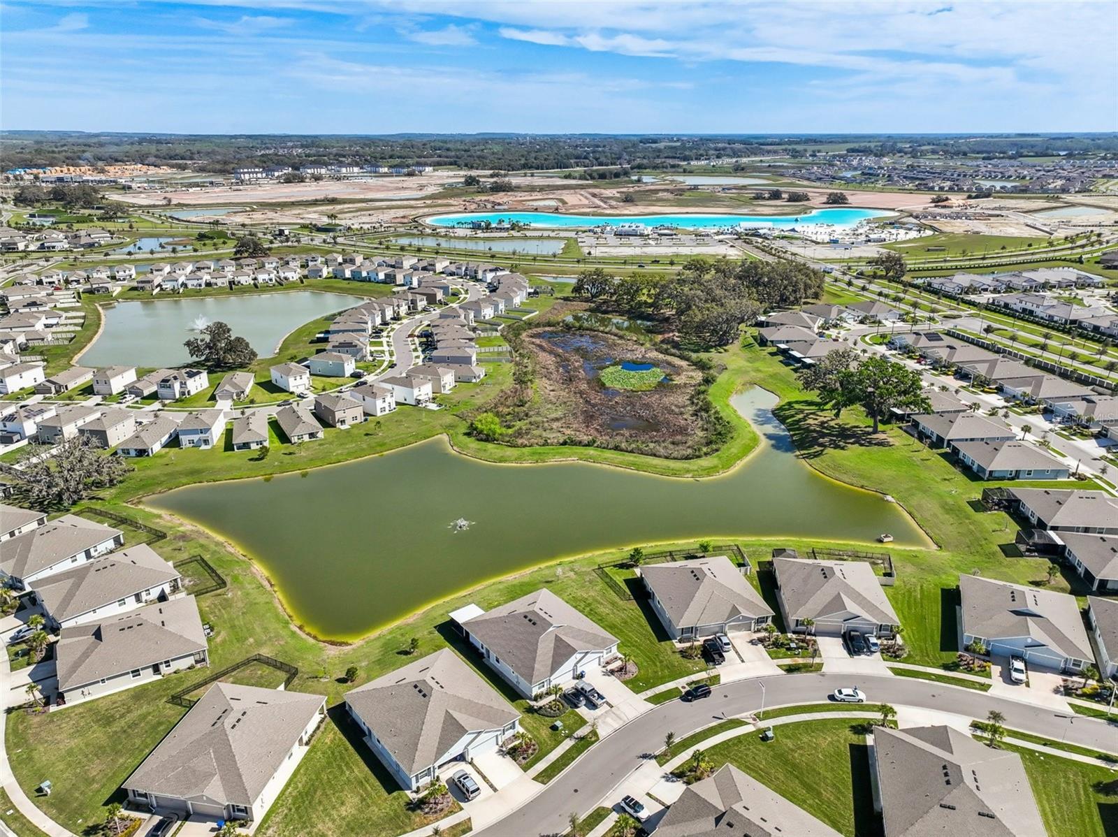 Luxurious Lagoon living awaits in this Waterfront 3 bedroom, 2 bath, 2 car garage one level Villa- all perfectly set against a serene Pond and Conservation Area views. Located in the heart of the nation’s Largest Lagoon community. Sidewalk-lined streets lead to the exterior with lush mature landscape and covered front entryway. Neutral toned, easy-to-maintain tile flooring begins in the entry and continues throughout the main living areas. Upon entering the house you will see the great room overlooks the pond and triple sliding doors leads to the covered lanai fenced-in outdoor oasis . The chef’s kitchen offers an island with breakfast bar seating, espresso colored cabinetry, stainless steel appliances and washer and dryer are included, zebra granite countertops, and ample pantry storage connected to the eat-in dining room. The owner’s suite also overlooks the pond and is separate from the other bedrooms. This private retreat is highlighted by a trey ceiling, a large walk-in closet (with built in wall safe), and a spa-like suite bathroom with dual sinks, linen closet and a walk-in shower. Bedrooms 3 and 4 are both spacious with good sized closets with the 2nd bathroom in-between them which has a tub/ shower combo. Mirada, it’s the epitome of resort-style living. The 15-acre Mirada Lagoon is the Hub of activity with amenities including sandy beaches, kayaking, swimming, paddle boarding, a floating obstacle course, swim-up bar, happy hour, Live Music, Movies, Trivia, Bingo, Karaoke, Yoga, Latin and Country Dancing nights, Cigar nights, Kids foam parties, July 4th and New Years Eve parties with fireworks and much more. Embrace all that Mirada living has to offer entertaining: your backyard oasis with peaceful pond views or take the dogs on a stroll to the dog park or down the many lush lake view walking trails throughout the community. Great Shopping at the Grove, Wiregrass and the Tampa Premium Outlets just minutes away. 40 min to downtown and the Tampa and St Pete Air ports. Smart home with alarm and video doorbell. ULTRAFI internet, cable TV (including 250 channels and Showtime), weekly grass cutting and front of home landscaping, and lagoon pool access are included in the HOA fees. Be sure to see the 3D tour at- Virtual Tour 1 and the walkthrough video at Virtual tour 2. Come see if it feels like home to you.