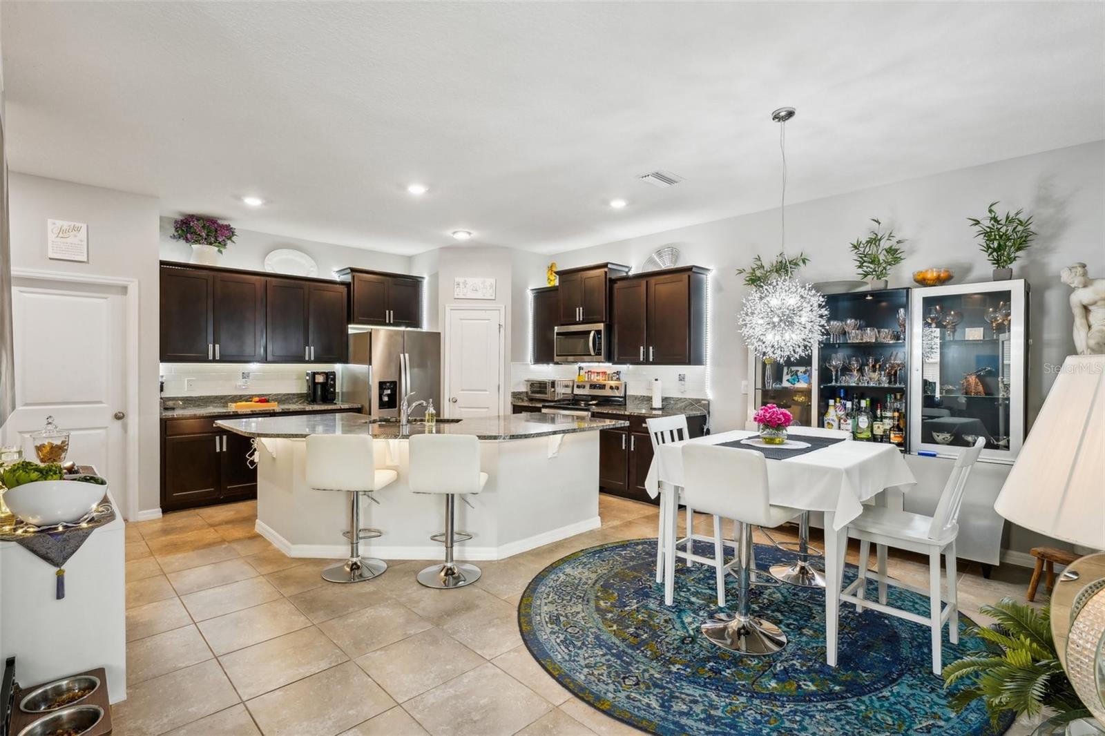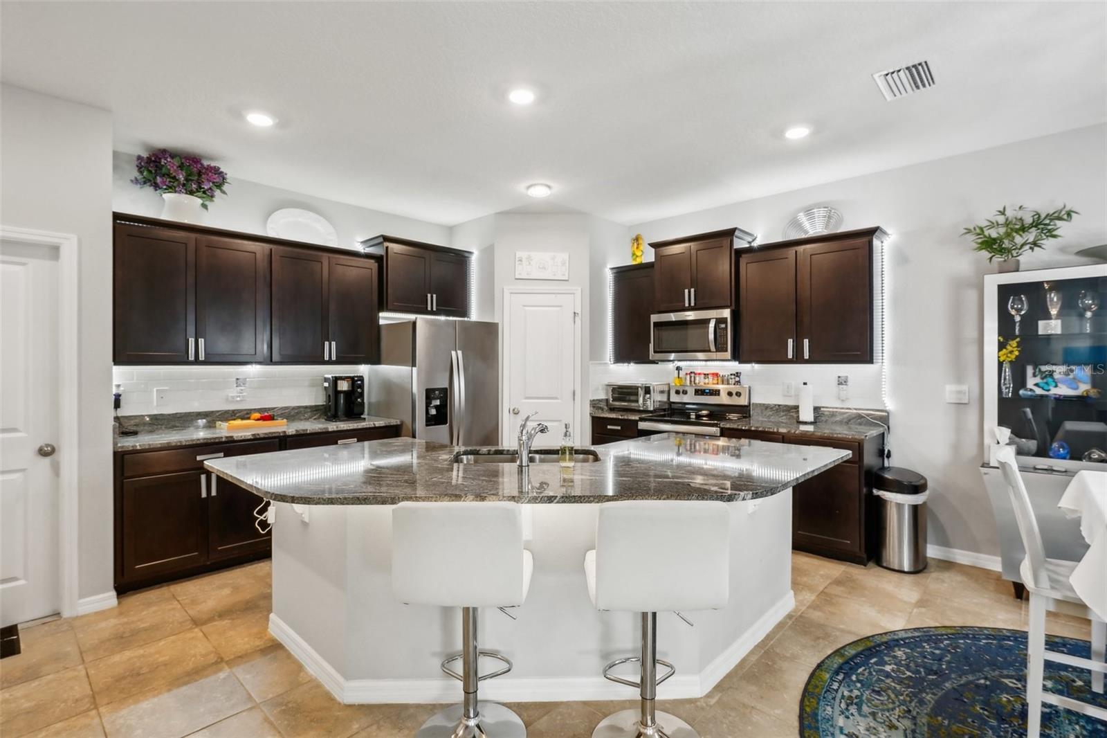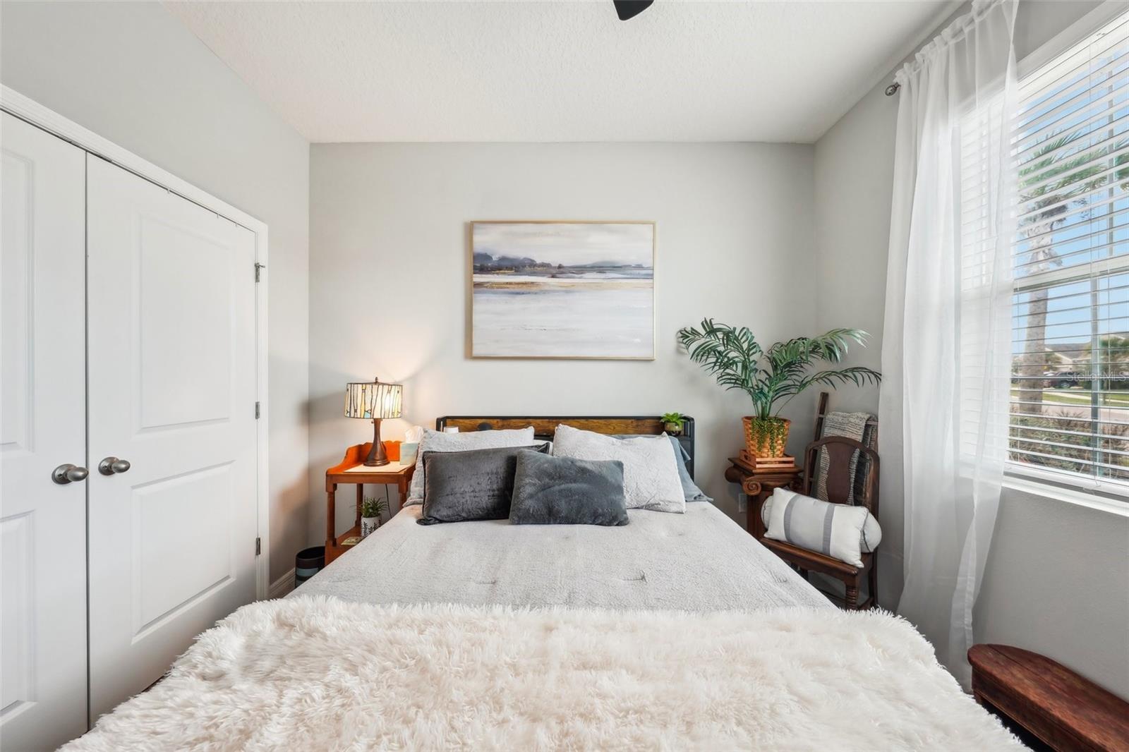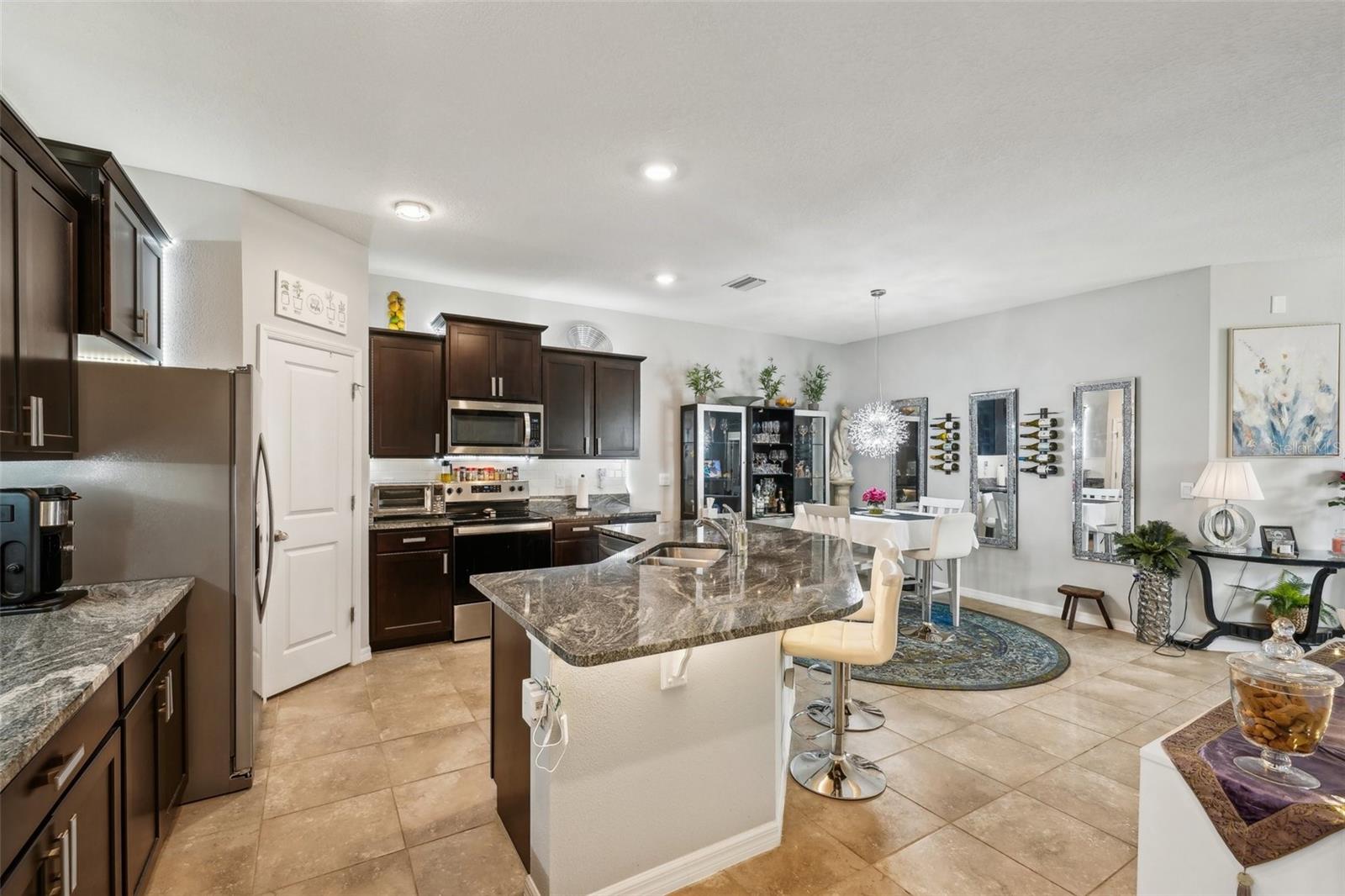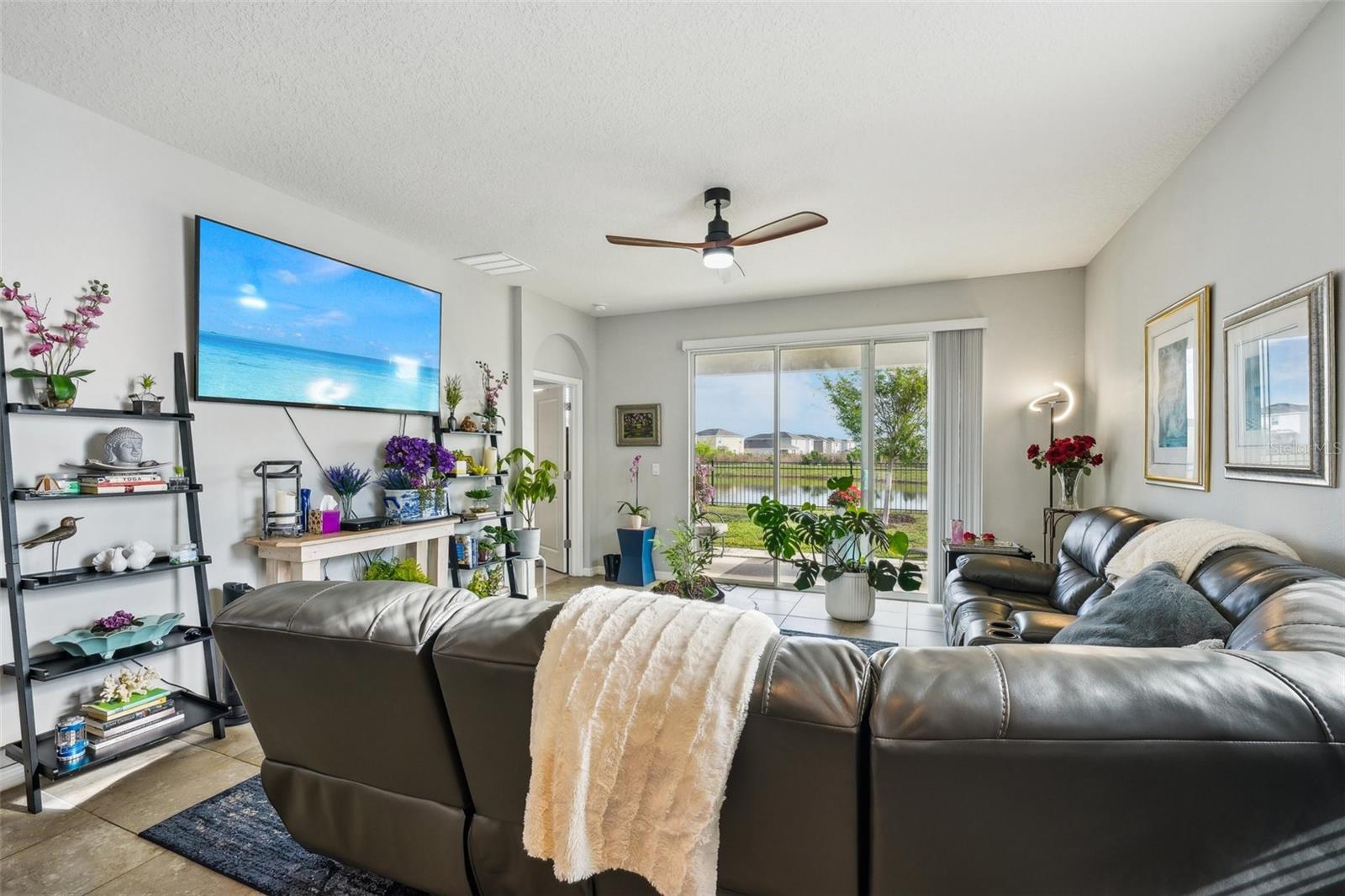 Luxurious Lagoon living awaits in this Waterfront 3 bedroom, 2 bath, 2 car garage one level Villa- all perfectly set against a serene Pond and Conservation Area views. Located in the heart of the nation’s Largest Lagoon community. Sidewalk-lined streets lead to the exterior with lush mature landscape and covered front entryway. Neutral toned, easy-to-maintain tile flooring begins in the entry and continues throughout the main living areas. Upon entering the house you will see the great room overlooks the pond and triple sliding doors leads to the covered lanai fenced-in outdoor oasis . The chef’s kitchen offers an island with breakfast bar seating, espresso colored cabinetry, stainless steel appliances and washer and dryer are included, zebra granite countertops, and ample pantry storage connected to the eat-in dining room. The owner’s suite also overlooks the pond and is separate from the other bedrooms. This private retreat is highlighted by a trey ceiling, a large walk-in closet (with built in wall safe), and a spa-like suite bathroom with dual sinks, linen closet and a walk-in shower. Bedrooms 3 and 4 are both spacious with good sized closets with the 2nd bathroom in-between them which has a tub/ shower combo. Mirada, it’s the epitome of resort-style living. The 15-acre Mirada Lagoon is the Hub of activity with amenities including sandy beaches, kayaking, swimming, paddle boarding, a floating obstacle course, swim-up bar, happy hour, Live Music, Movies, Trivia, Bingo, Karaoke, Yoga, Latin and Country Dancing nights, Cigar nights, Kids foam parties, July 4th and New Years Eve parties with fireworks and much more. Embrace all that Mirada living has to offer entertaining: your backyard oasis with peaceful pond views or take the dogs on a stroll to the dog park or down the many lush lake view walking trails throughout the community. Great Shopping at the Grove, Wiregrass and the Tampa Premium Outlets just minutes away. 40 min to downtown and the Tampa and St Pete Air ports. Smart home with alarm and video doorbell. ULTRAFI internet, cable TV (including 250 channels and Showtime), weekly grass cutting and front of home landscaping, and lagoon pool access are included in the HOA fees. Be sure to see the 3D tour at- Virtual Tour 1 and the walkthrough video at Virtual tour 2. Come see if it feels like home to you.