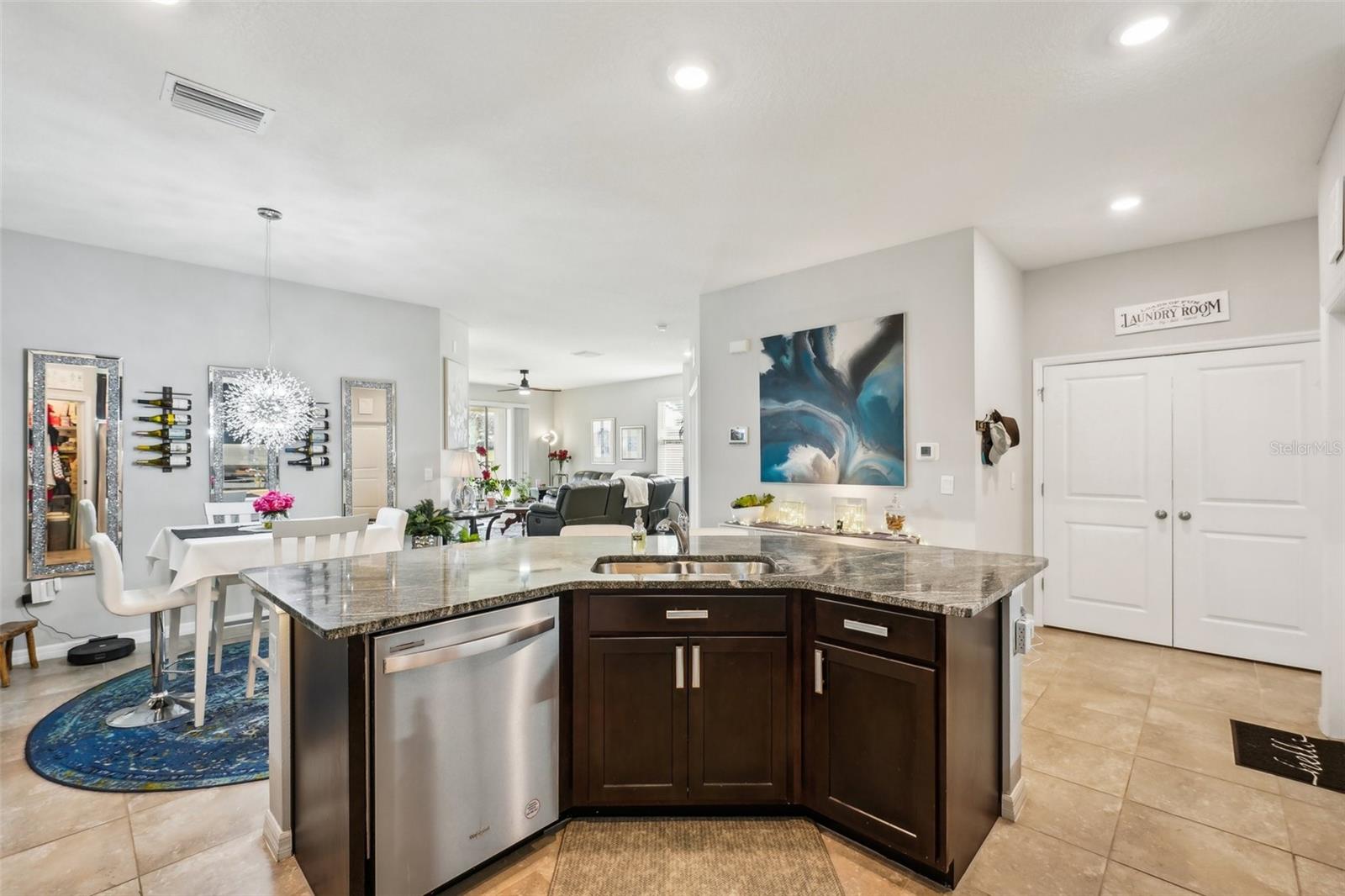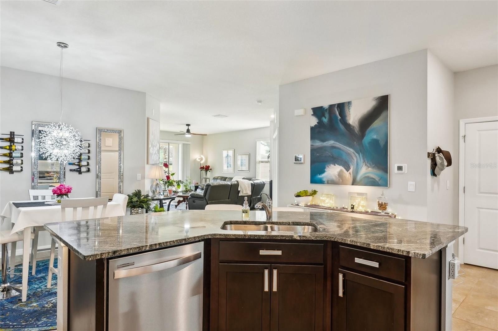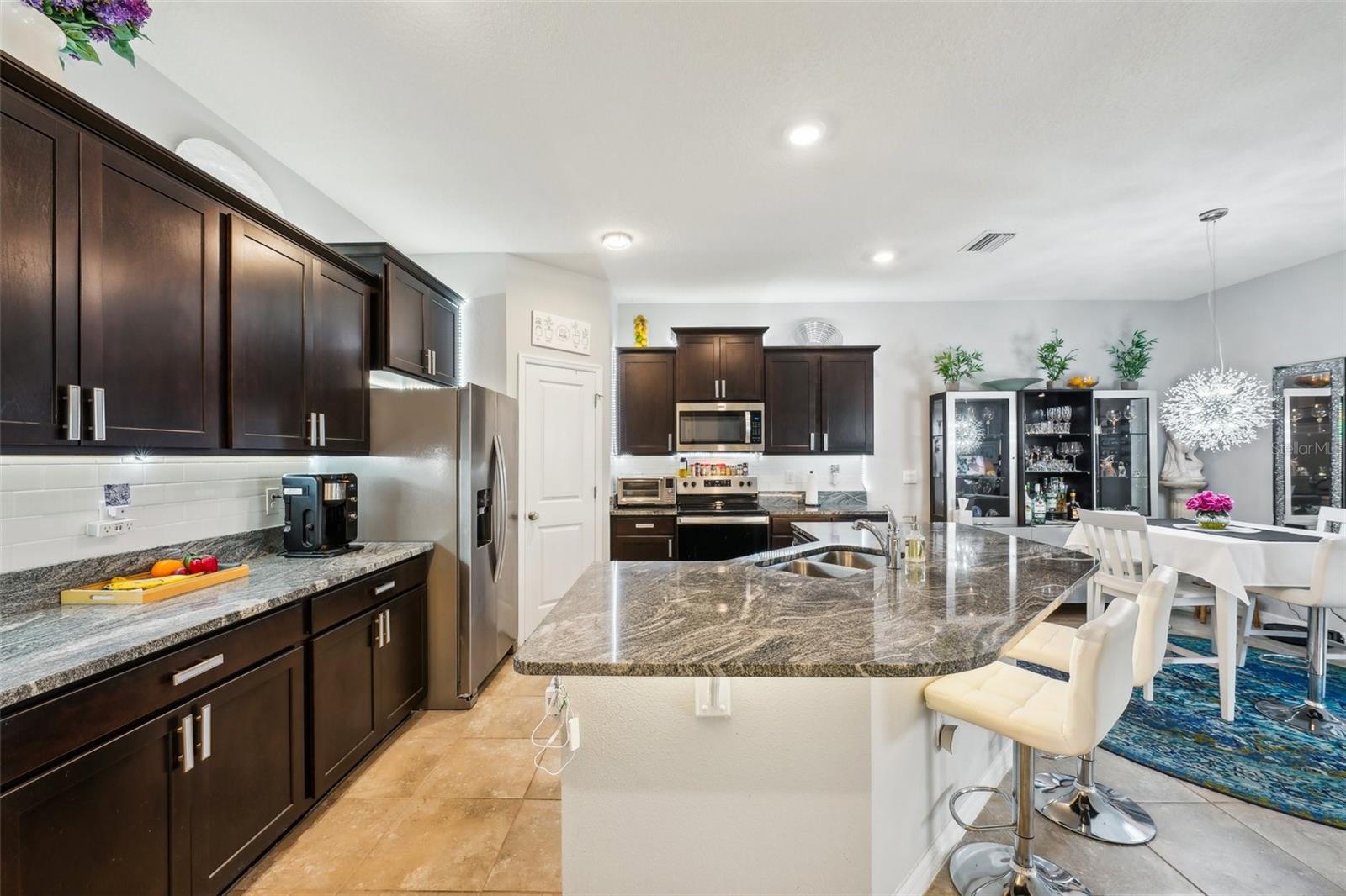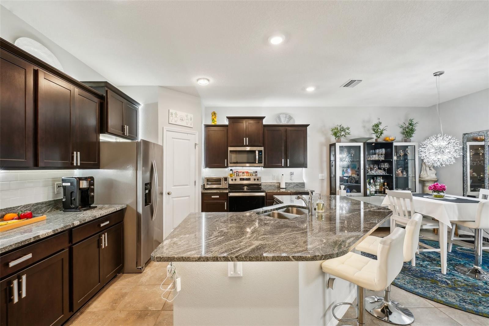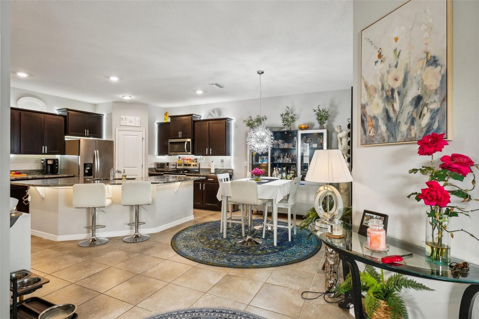Luxurious Lagoon living awaits in this Waterfront 3 bedroom, 2 bath, 2 car garage one level Villa- all perfectly set against a serene Pond and Conservation Area views. Located in the heart of the nation’s Largest Lagoon community. Sidewalk-lined streets lead to the exterior with lush mature landscape and covered front entryway. Neutral toned, easy-to-maintain tile flooring begins in the entry and continues throughout the main living areas. Upon entering the house you will see the great room overlooks the pond and triple sliding doors leads to the covered lanai fenced-in outdoor oasis . The chef’s kitchen offers an island with breakfast bar seating, espresso colored cabinetry, stainless steel appliances and washer and dryer are included, zebra granite countertops, and ample pantry storage connected to the eat-in dining room. The owner’s suite also overlooks the pond and is separate from the other bedrooms. This private retreat is highlighted by a trey ceiling, a large walk-in closet (with built in wall safe), and a spa-like suite bathroom with dual sinks, linen closet and a walk-in shower. Bedrooms 3 and 4 are both spacious with good sized closets with the 2nd bathroom in-between them which has a tub/ shower combo. Mirada, it’s the epitome of resort-style living. The 15-acre Mirada Lagoon is the Hub of activity with amenities including sandy beaches, kayaking, swimming, paddle boarding, a floating obstacle course, swim-up bar, happy hour, Live Music, Movies, Trivia, Bingo, Karaoke, Yoga, Latin and Country Dancing nights, Cigar nights, Kids foam parties, July 4th and New Years Eve parties with fireworks and much more. Embrace all that Mirada living has to offer entertaining: your backyard oasis with peaceful pond views or take the dogs on a stroll to the dog park or down the many lush lake view walking trails throughout the community. Great Shopping at the Grove, Wiregrass and the Tampa Premium Outlets just minutes away. 40 min to downtown and the Tampa and St Pete Air ports. Smart home with alarm and video doorbell. ULTRAFI internet, cable TV (including 250 channels and Showtime), weekly grass cutting and front of home landscaping, and lagoon pool access are included in the HOA fees. Be sure to see the 3D tour at- Virtual Tour 1 and the walkthrough video at Virtual tour 2. Come see if it feels like home to you.