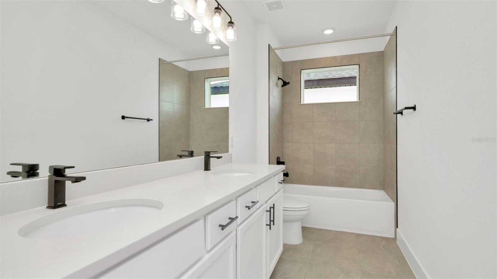 Spacious 2 Level Home with 5 Bedrooms & 3.5 Baths! As you enter the home, you are welcomed to a grand foyer with an expansive kitchen. The well-appointed gourmet kitchen offers a huge walk-in pantry and a generous island with sink that looks out to the light and bright Family Room. The expansive great room opens to the lovely outdoor lanai that is pre plumbed for an outdoor kitchen. The primary suite features a luxurious en suite bathroom with dual sink vanity, private water closet and large walk-in closet. On the 2nd level there are 2 additional bedrooms each with walk-in closets, a full bathroom with dual sink vanity, and a spacious loft.