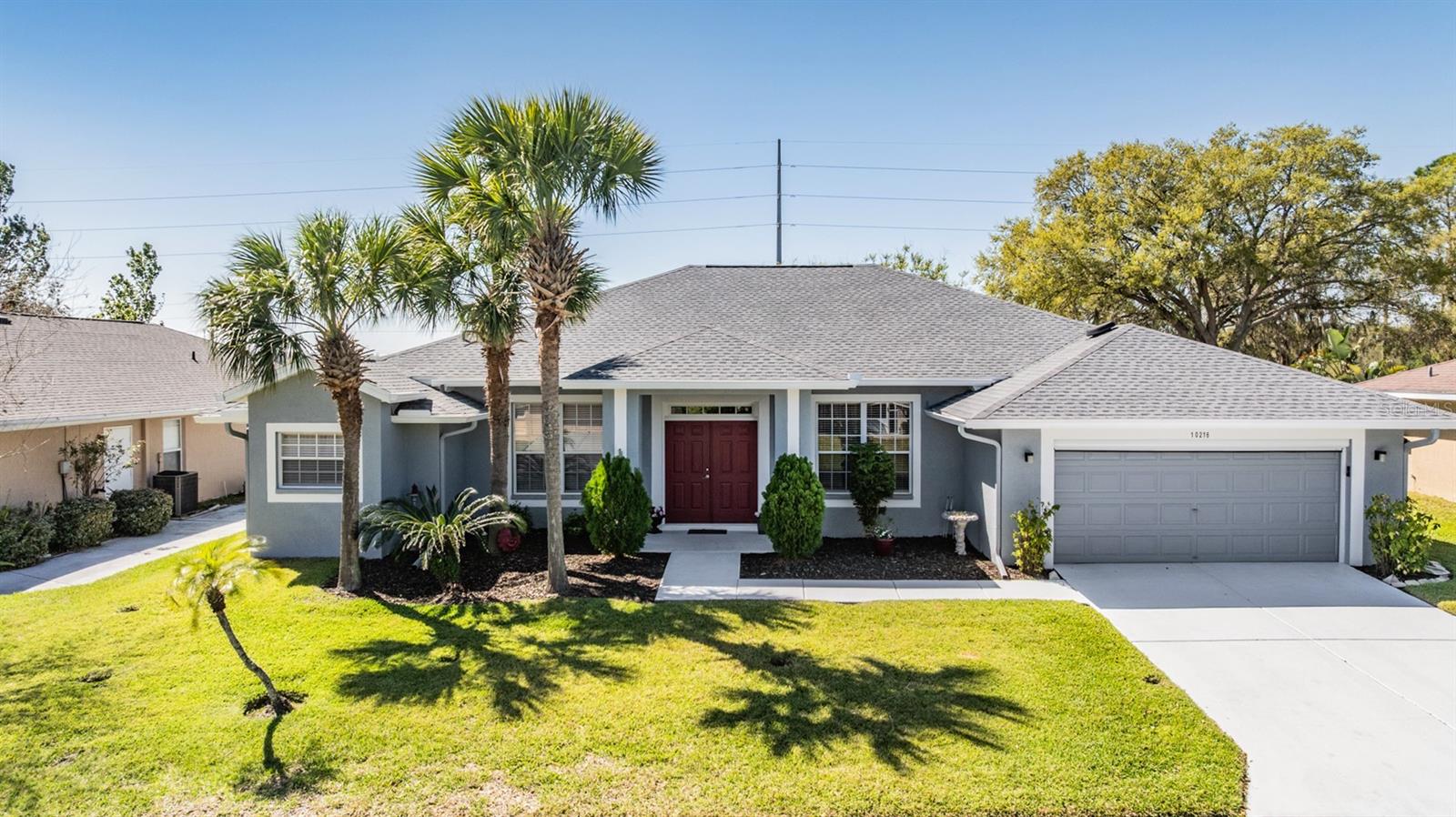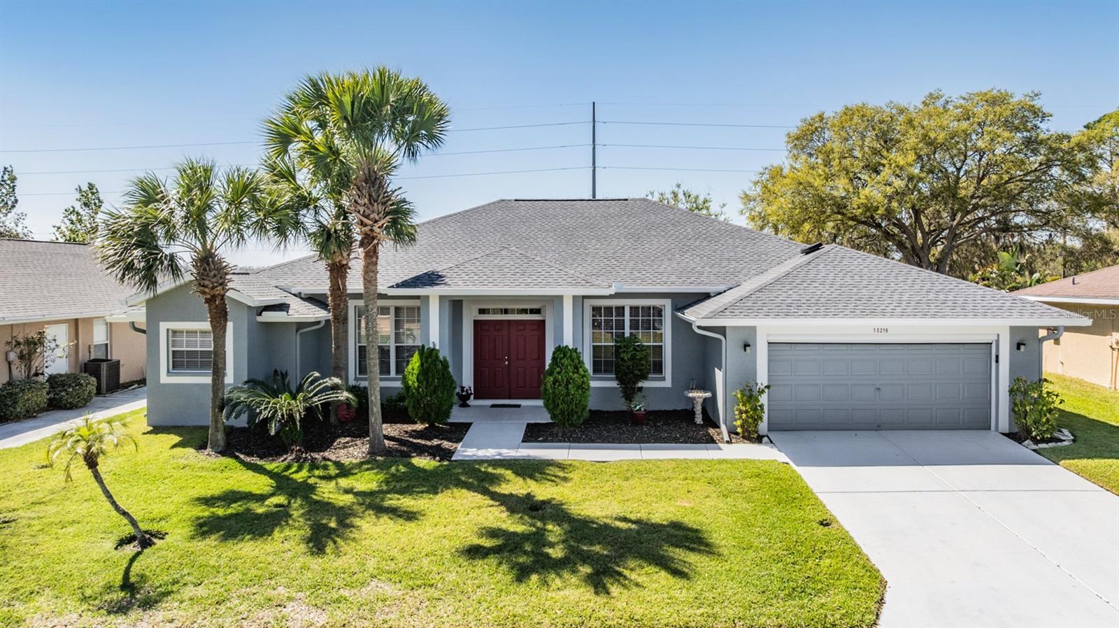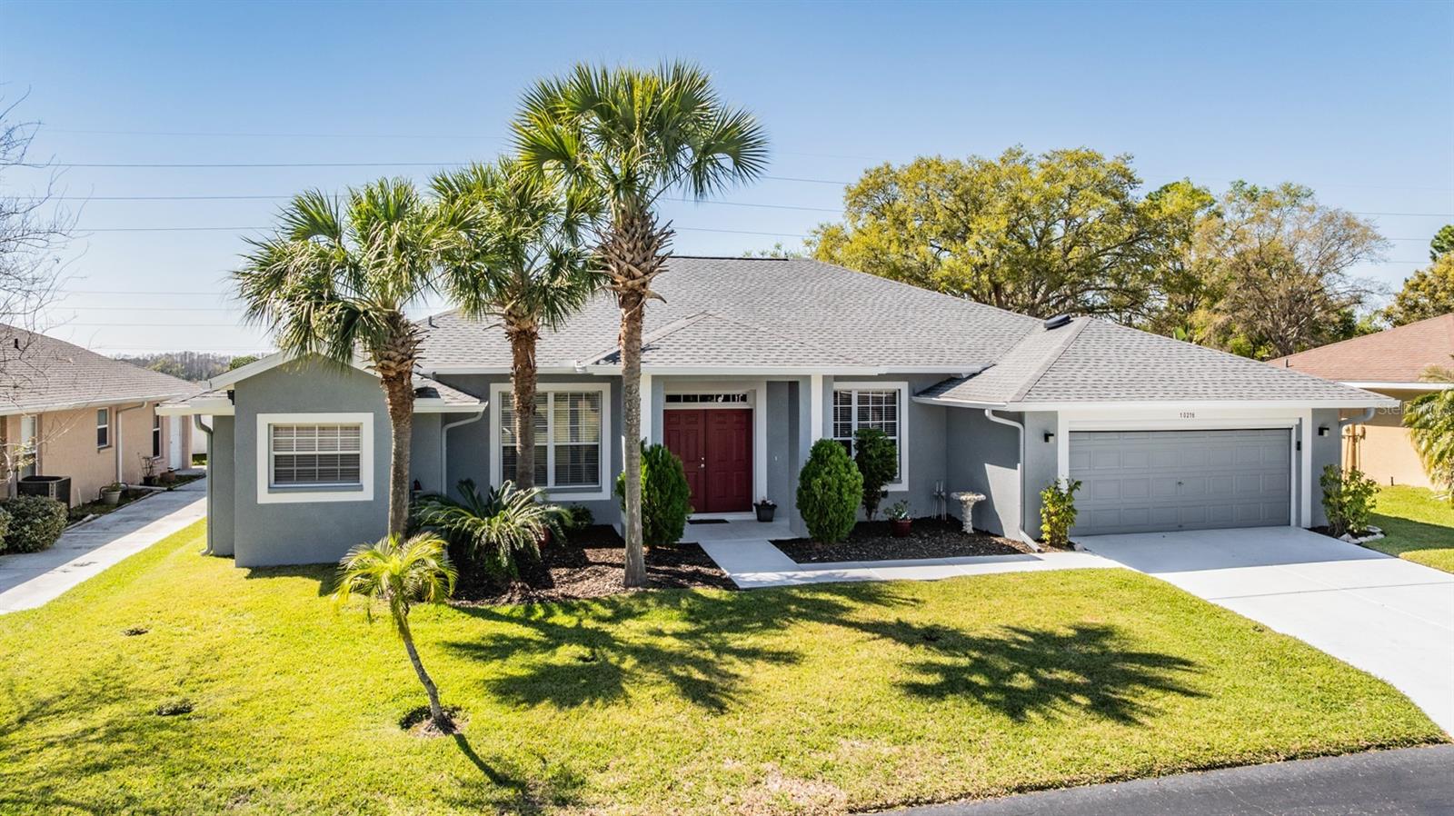 Live the Country Club Lifestyle in This Spacious Home! Welcome to this beautiful, 3-bedroom, 2-bathroom home located in the highly sought-after Tampa Bay Golf & Country Club, a premier 55+ retirement community north of Sunny Tampa Florida. This home offers an open and bright floor plan, featuring separate formal living and dining rooms and a kitchen that overlooks the expansive great room, making it perfect for entertaining. The kitchen is a standout with oak cabinets, Corian countertops, a breakfast bar, a breakfast nook, a closet pantry, and all existing appliances that will stay, making it move-in ready! The Primary bedroom is a true owners retreat, featuring a tray ceiling, a cozy sitting area, and a huge walk-in closet. The owners bath ensuite includes a dual-sink vanity, a garden tub plus a separate shower. The two additional bedrooms are generously sized and offer plenty of closet space, ensuring everyone has ample room. Sliding doors extend your entertaining space onto the spacious enclosed lanai where you can Enjoy the outdoors, perfect for relaxing in the Florida sunshine. Additional highlights of this home include volume ceilings throughout, a security alarm and sprinkler system, and an inside laundry room with added cabinet storage above the high efficiency washer and dryer. This home is the popular DORAL Model, offering nearly 2,500 square feet of A/C living space, plus a 2-car garage with an automatic screen enclosure. The AC unit was replaced and the interior and exterior and driveway were custom painted. As a resident of Tampa Bay Golf & Country Club, you'll enjoy a lifestyle filled with activities, including golf, tennis, a spectacular Resort style pool and spa, separate freeform adult only pool, a state of the art fitness center, and social events, activities, onsite entertainment and travel excursions. This mature community boasts private winding streets around ponds and 18-hole championship golf course, a 9-hole executive course, a driving range, and putting green. The manned 24-hour guard gate ensures security and peace of mind. This home is an exceptional value for its size and amenities, and with the community’s abundance of clubs and activities, there’s always something to do! The 27-hole golf course, newly remodeled exercise room, full-service restaurant and bar, pool tables, library with computers, and numerous clubs and activities make this the perfect place to call home. Don’t miss your chance to own this Stunning home in a 55+ community with a country club lifestyle. CALL TODAY to schedule a tour and see why this IS the place to BE!