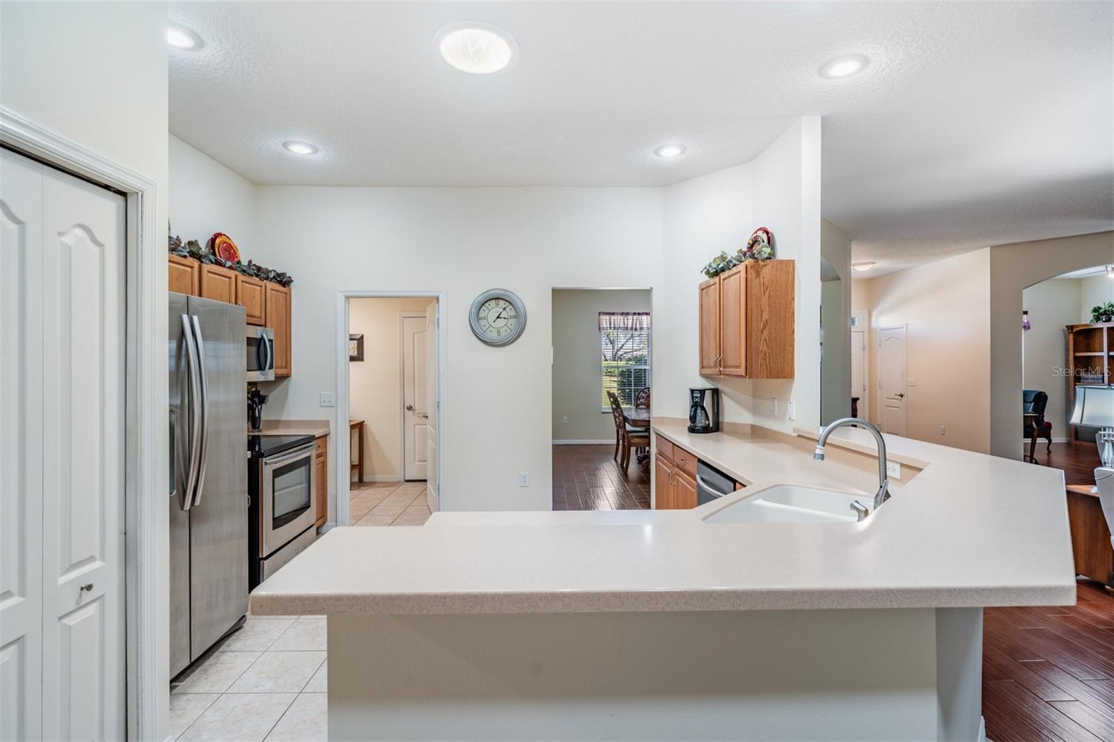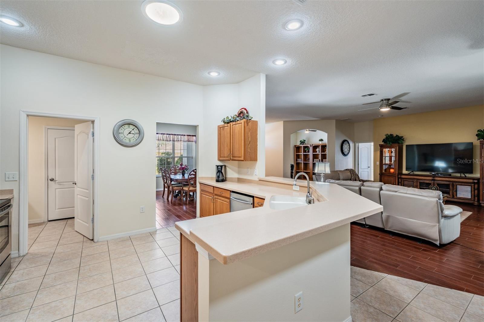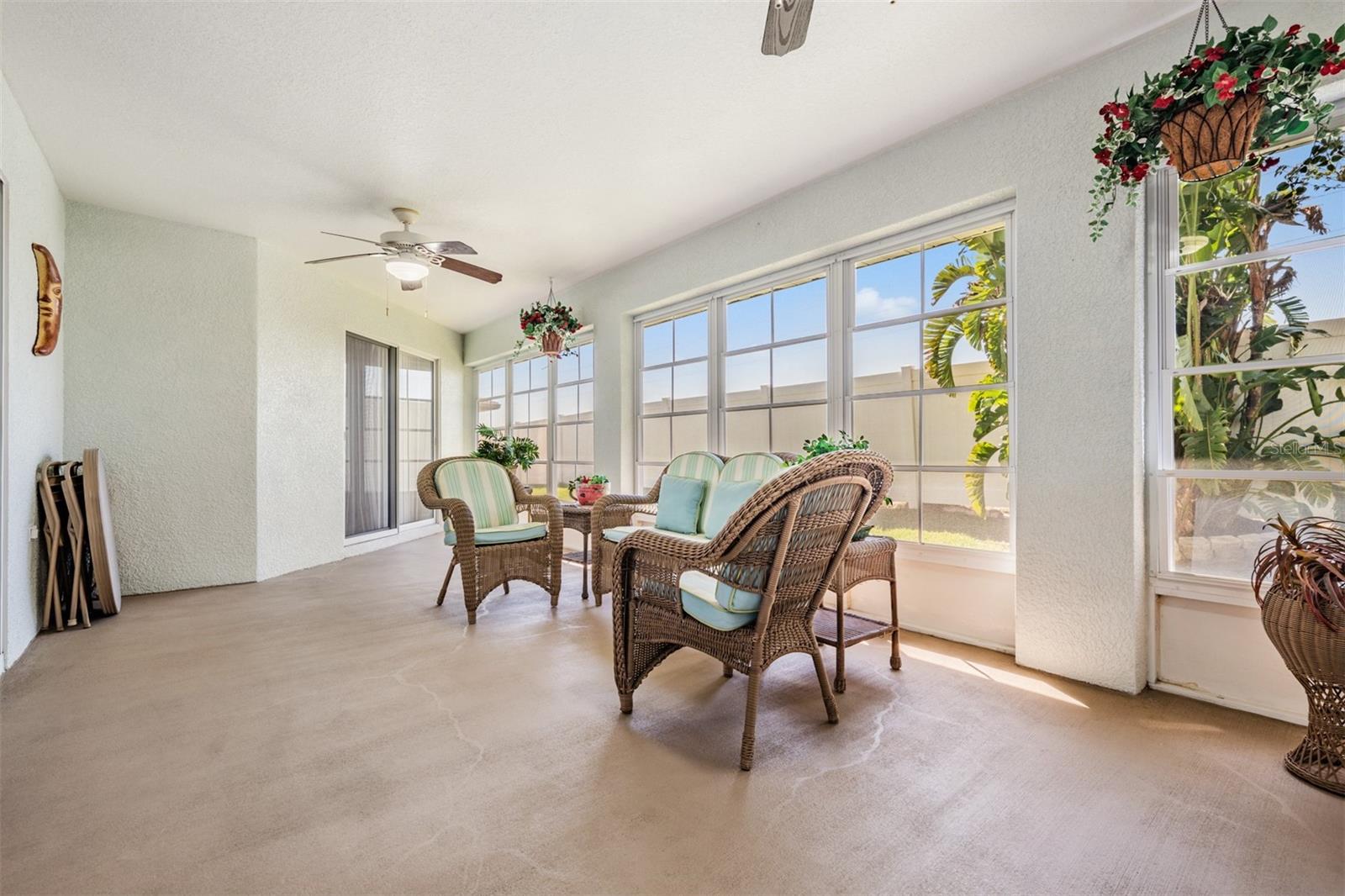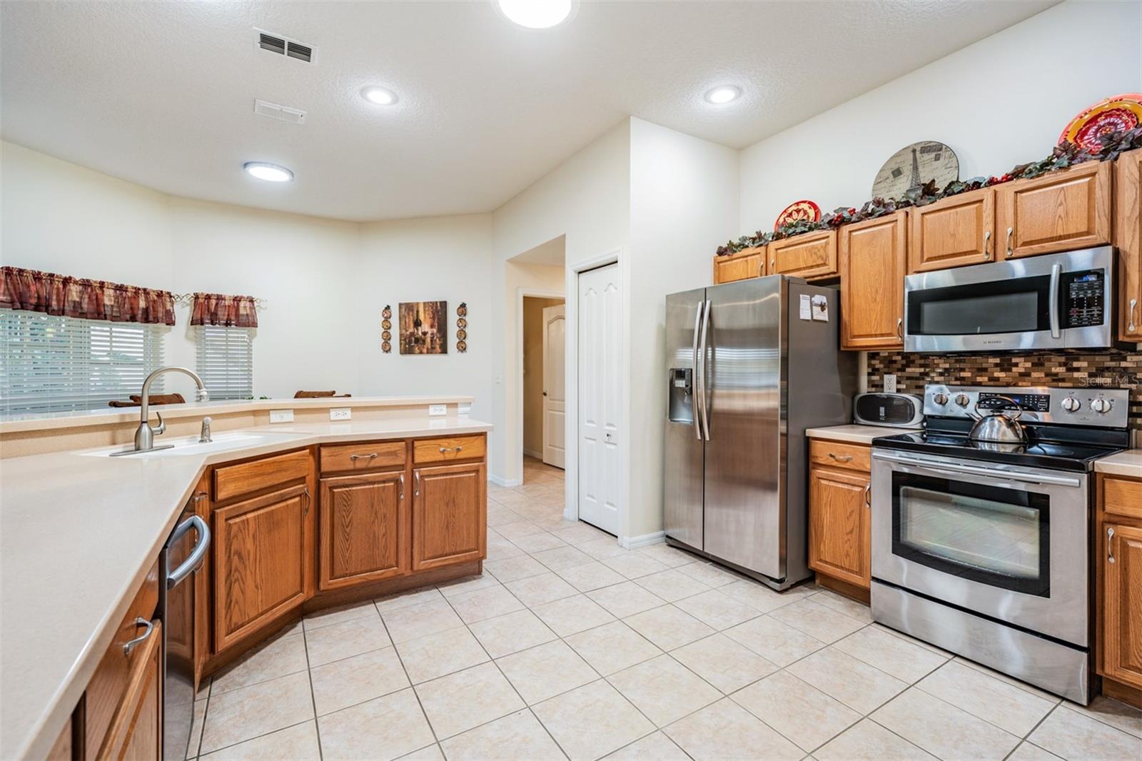Live the Country Club Lifestyle in This Spacious Home! Welcome to this beautiful, 3-bedroom, 2-bathroom home located in the highly sought-after Tampa Bay Golf & Country Club, a premier 55+ retirement community north of Sunny Tampa Florida. This home offers an open and bright floor plan, featuring separate formal living and dining rooms and a kitchen that overlooks the expansive great room, making it perfect for entertaining. The kitchen is a standout with oak cabinets, Corian countertops, a breakfast bar, a breakfast nook, a closet pantry, and all existing appliances that will stay, making it move-in ready! The Primary bedroom is a true owners retreat, featuring a tray ceiling, a cozy sitting area, and a huge walk-in closet. The owners bath ensuite includes a dual-sink vanity, a garden tub plus a separate shower. The two additional bedrooms are generously sized and offer plenty of closet space, ensuring everyone has ample room. Sliding doors extend your entertaining space onto the spacious enclosed lanai where you can Enjoy the outdoors, perfect for relaxing in the Florida sunshine. Additional highlights of this home include volume ceilings throughout, a security alarm and sprinkler system, and an inside laundry room with added cabinet storage above the high efficiency washer and dryer. This home is the popular DORAL Model, offering nearly 2,500 square feet of A/C living space, plus a 2-car garage with an automatic screen enclosure. The AC unit was replaced and the interior and exterior and driveway were custom painted. As a resident of Tampa Bay Golf & Country Club, you'll enjoy a lifestyle filled with activities, including golf, tennis, a spectacular Resort style pool and spa, separate freeform adult only pool, a state of the art fitness center, and social events, activities, onsite entertainment and travel excursions. This mature community boasts private winding streets around ponds and 18-hole championship golf course, a 9-hole executive course, a driving range, and putting green. The manned 24-hour guard gate ensures security and peace of mind. This home is an exceptional value for its size and amenities, and with the community’s abundance of clubs and activities, there’s always something to do! The 27-hole golf course, newly remodeled exercise room, full-service restaurant and bar, pool tables, library with computers, and numerous clubs and activities make this the perfect place to call home. Don’t miss your chance to own this Stunning home in a 55+ community with a country club lifestyle. CALL TODAY to schedule a tour and see why this IS the place to BE!