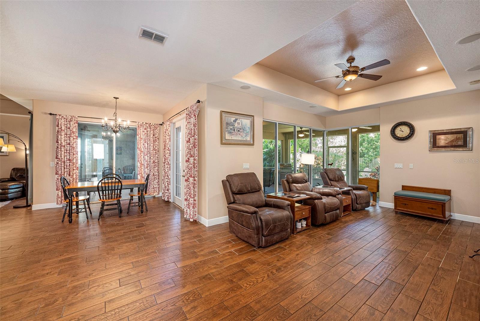 Spacious Custom Home with 5 Bedrooms, 4-Car Garage & Private Backyard Retreat! Seller will replace the roof with an acceptable offer—giving you peace of mind from the start. This custom-designed home offers flexibility, space, and style with 5 bedrooms + bonus rooms, 4 full bathrooms, and a rare 4-car garage setup (2 attached, 2 detached). The main floor features a split-bedroom layout with 4 bedrooms and 3 baths, while upstairs offers a versatile bonus room or secondary master suite with its own private bath. The heart of the home is the spacious kitchen boasting an abundance of cabinetry, modern appliances, and a butler's pantry—perfect for entertaining or everyday living. The primary suite includes a luxurious tiled, no-step walk-in shower, dual vanities, and 2 generous walk-in closets. Panoramic backyard views shine through cascading sliding glass doors that pocket to seamlessly blend indoor and outdoor living. The detached 2-car garage includes a finished second-story bonus room complete with its own bath and mini-split A/C—ideal for guests, a home office, or game room. Pool table and sectional are optional. Step into your private backyard oasis featuring a screened lanai, gazebo, and firepit for year-round enjoyment. Low HOA fees, No CDD—just space, style, and flexibility in a beautifully crafted home.