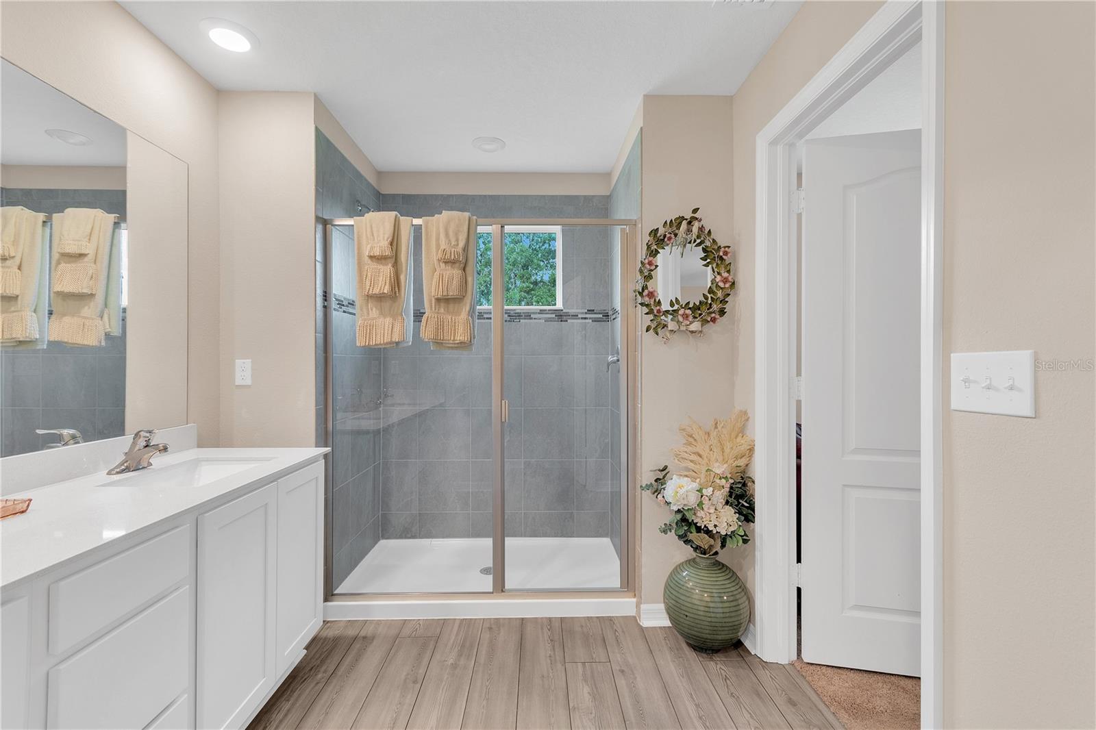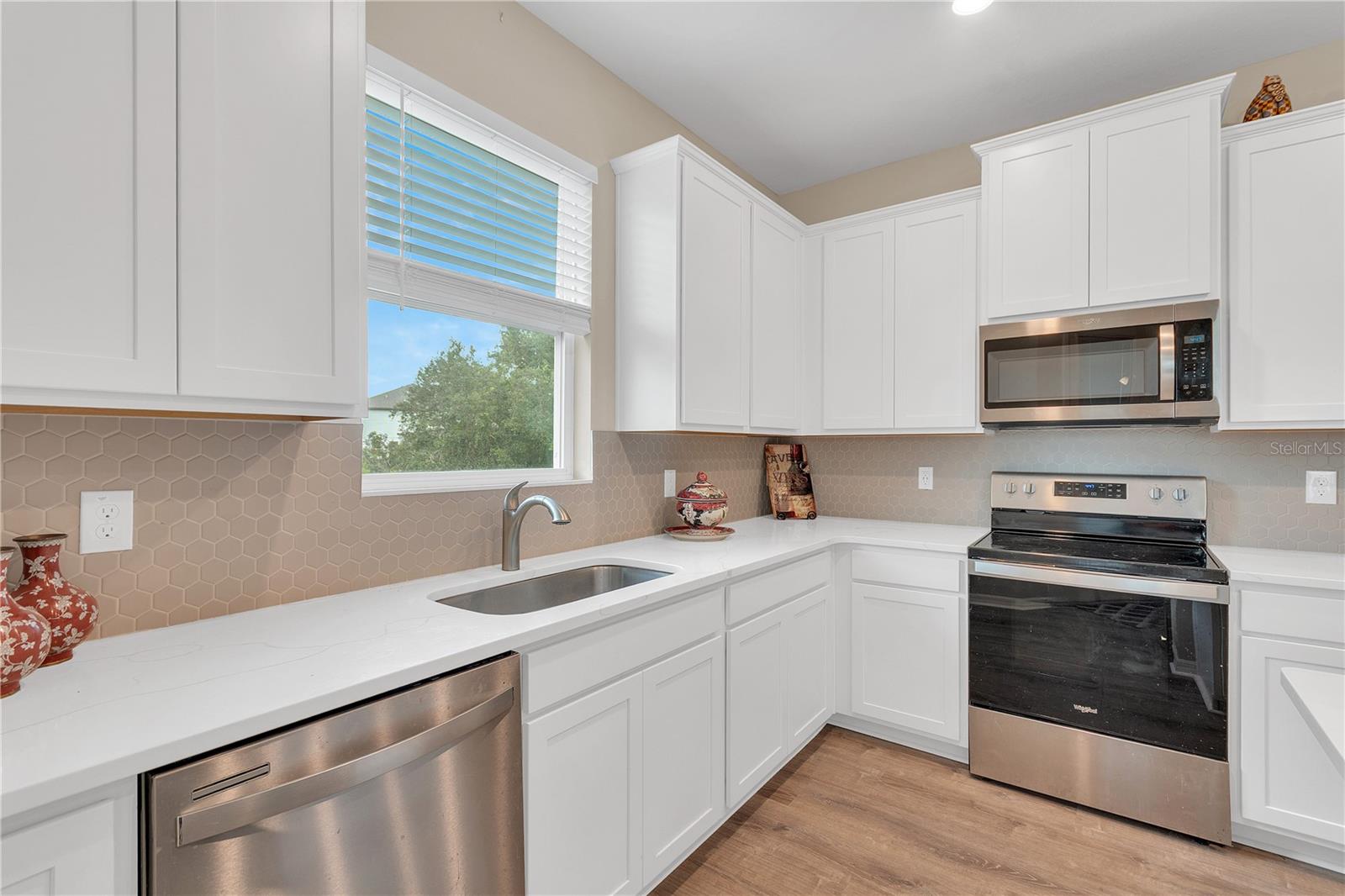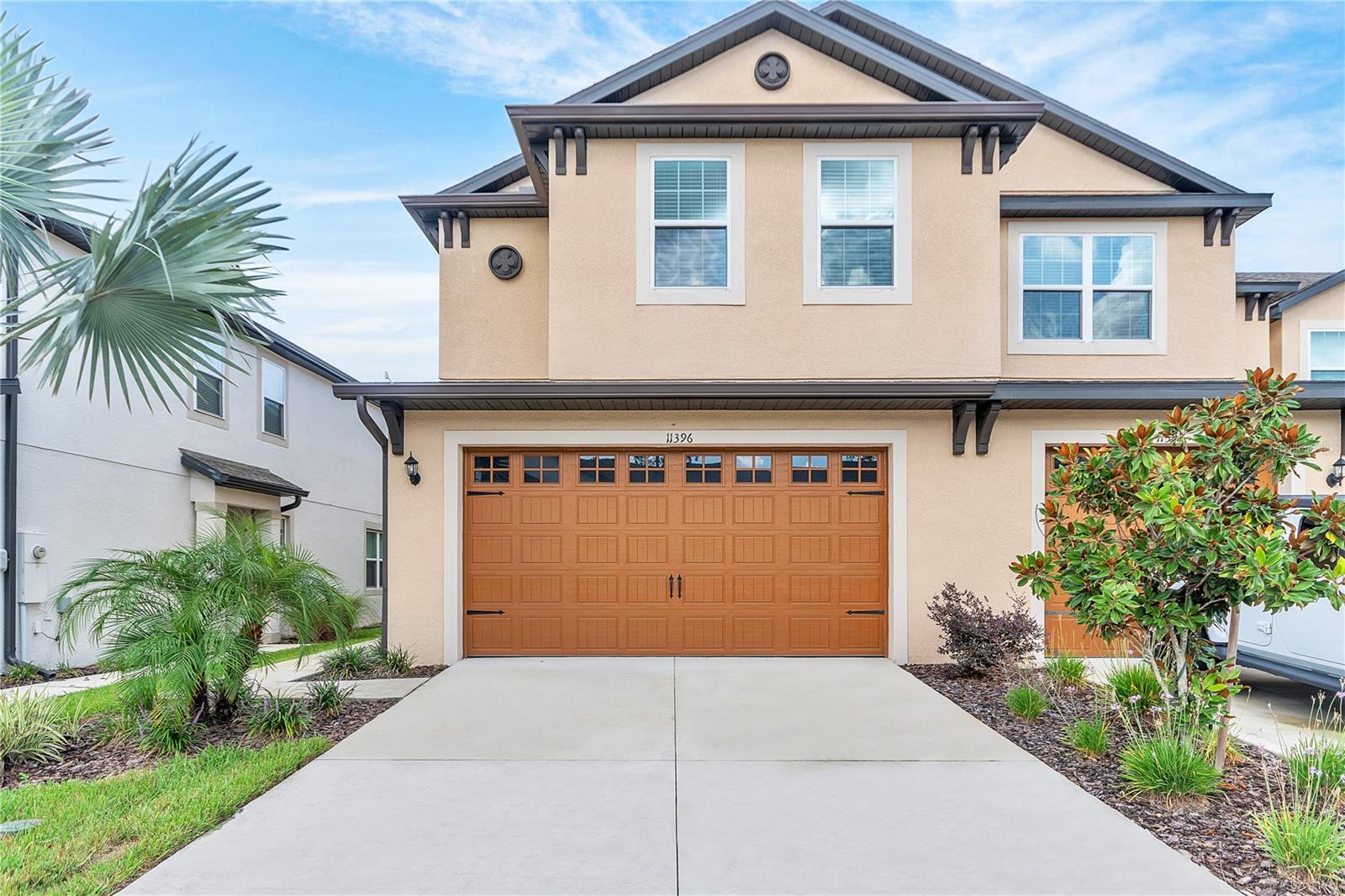 Live every day like a vacation in this beautifully maintained 3-bedroom, 2.5-bath end-unit townhome with lagoon access in Mirada, a one-of-a-kind community built around a 15-acre Crystal Lagoon—a stunning blue-water destination for kayaking, paddleboarding, or simply relaxing on sandy shores. Built in 2022, this thoughtfully designed home features a bright, open-concept layout with stainless steel appliances, a tile backsplash, and a flexible bonus room perfect for a home office. The spacious primary suite includes a large walk-in closet and en-suite bath, while a second bedroom also offers its own walk-in closet. The laundry room is conveniently located upstairs near all bedrooms. Enjoy peaceful privacy from the covered back patio with no rear neighbors—the ideal space to unwind or entertain. A 2-car garage with upgraded epoxy flooring, plus a whole-home water softener system, add everyday comfort and value. Residents enjoy Ultra-Fi Wi-Fi, cable, and lawn care included in the HOA, along with access to the lagoon’s swim-up bar, on-water obstacle course, walking trails, playgrounds, dog park, and more. Located near I-75 with easy access to shopping, dining, and Tampa attractions, this low-maintenance townhome offers the perfect blend of resort-style living and daily convenience.